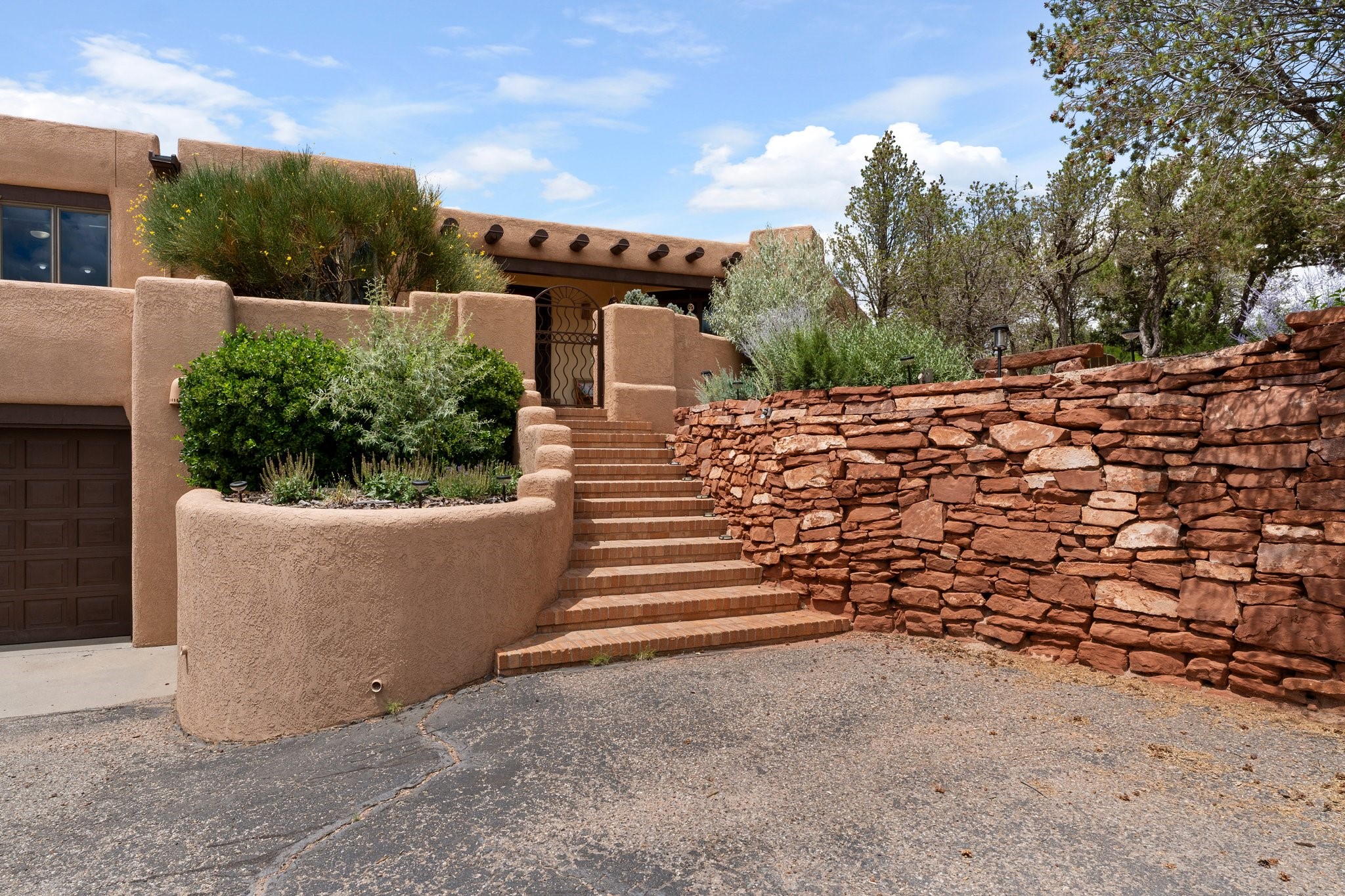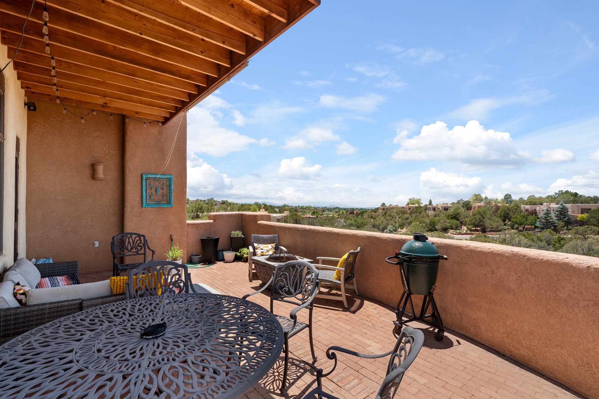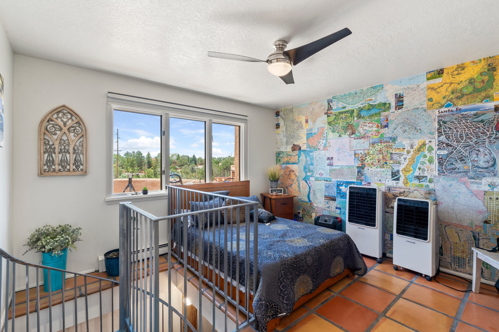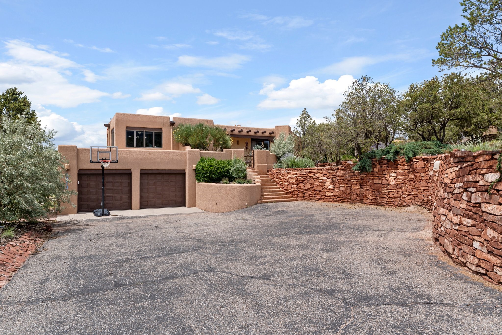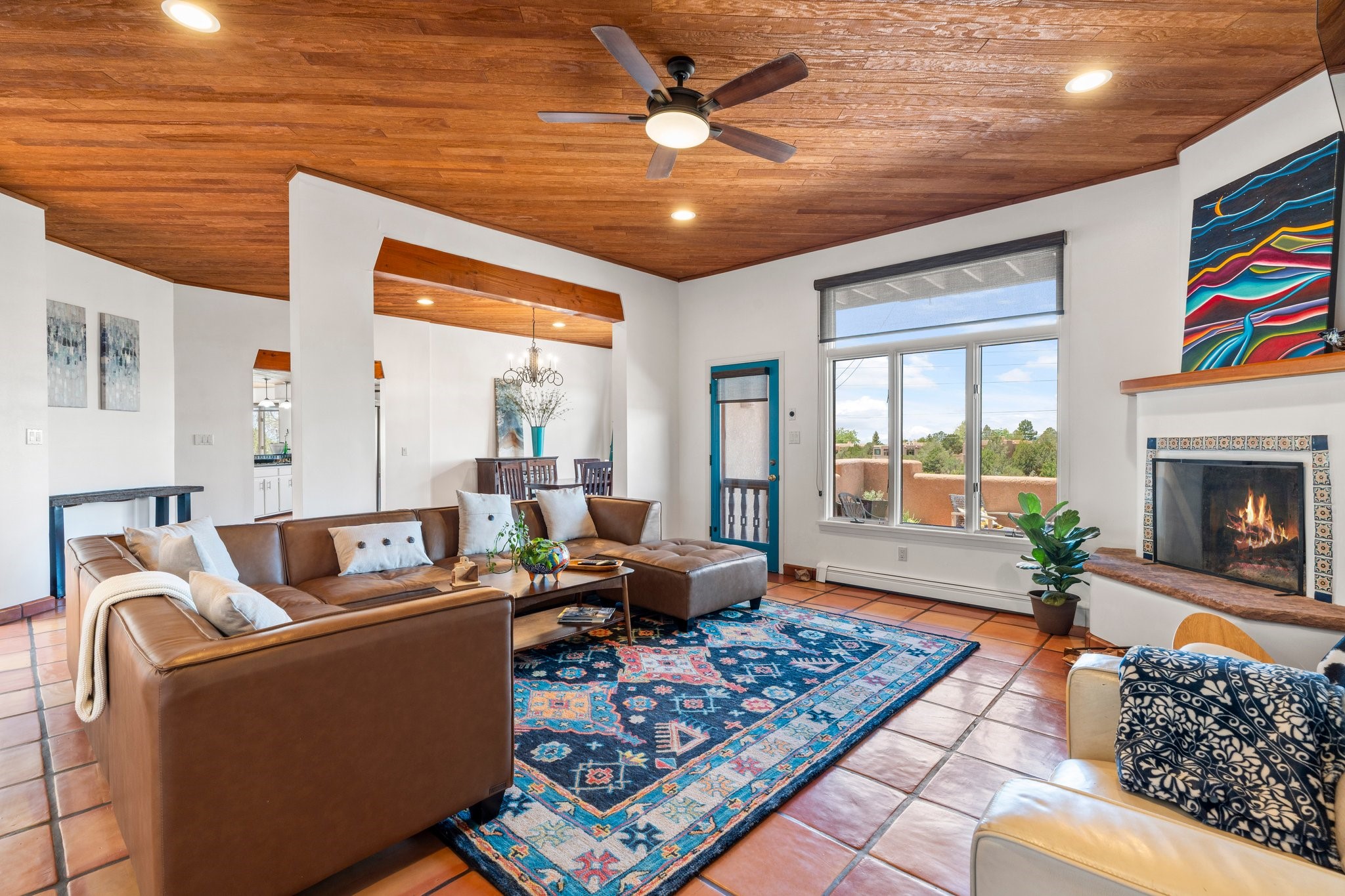 1373 Camino Sin SalidaElegant Southwest style home in Las Barrancas just moments fromDowntown Santa Fe, Plaza & Canyon Rd, built by Sonny Otero. Consistingof 4 bedrooms, 4 baths with large kitchen, dinning room and livingroom on main floor along with Master bedroom & ensuite questbedroom. Second floor on Garage level consists of 2 bedrooms alongwith office alternate bedroom, bath and large Rec Room. Recentlyupdated in prime Northside location including newly installed A/Cthroughout home with traditional finishes. This home is minutes fromworld class galleries & restaurants with easy access to Santa Fe SkiBasin