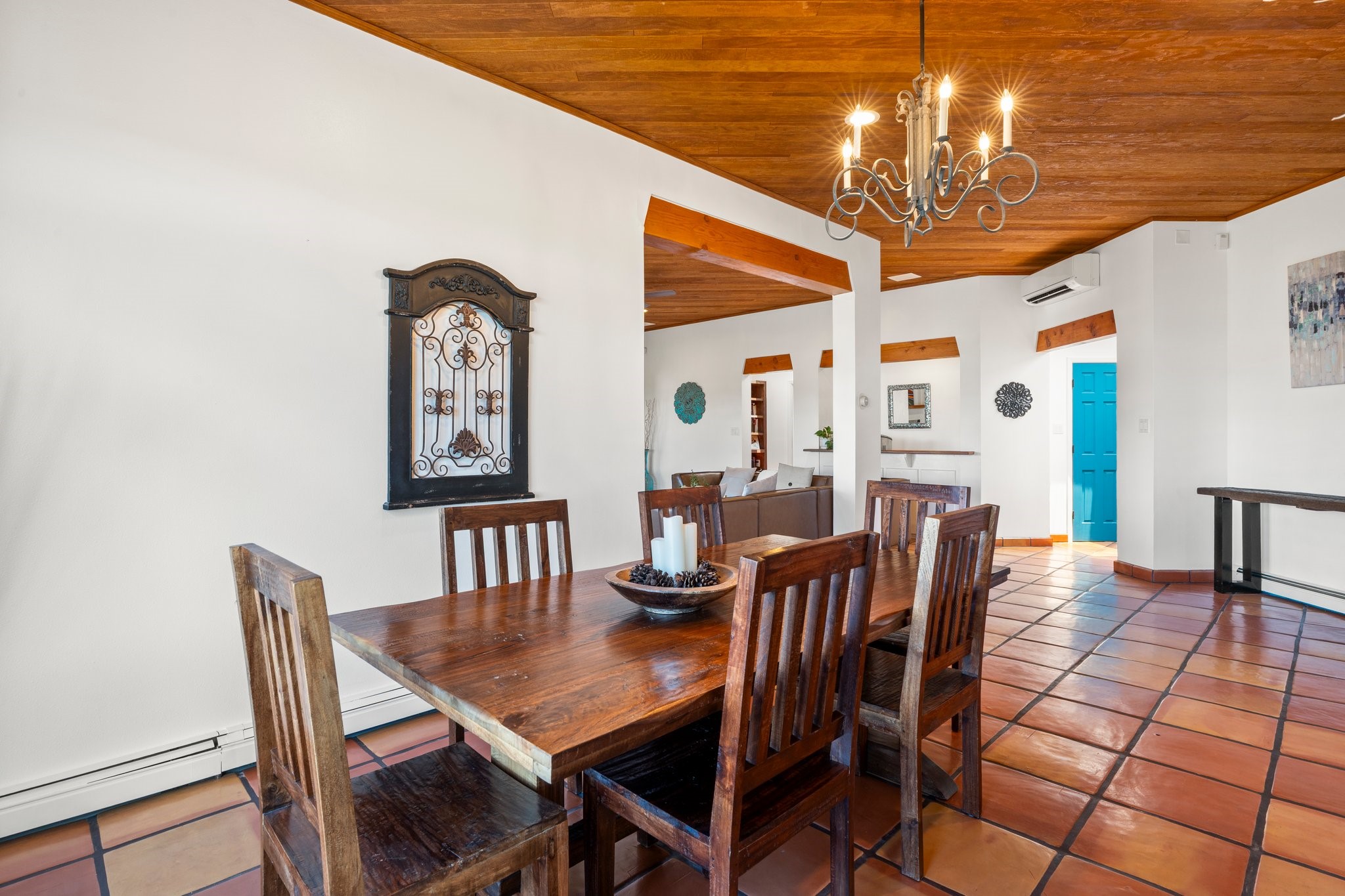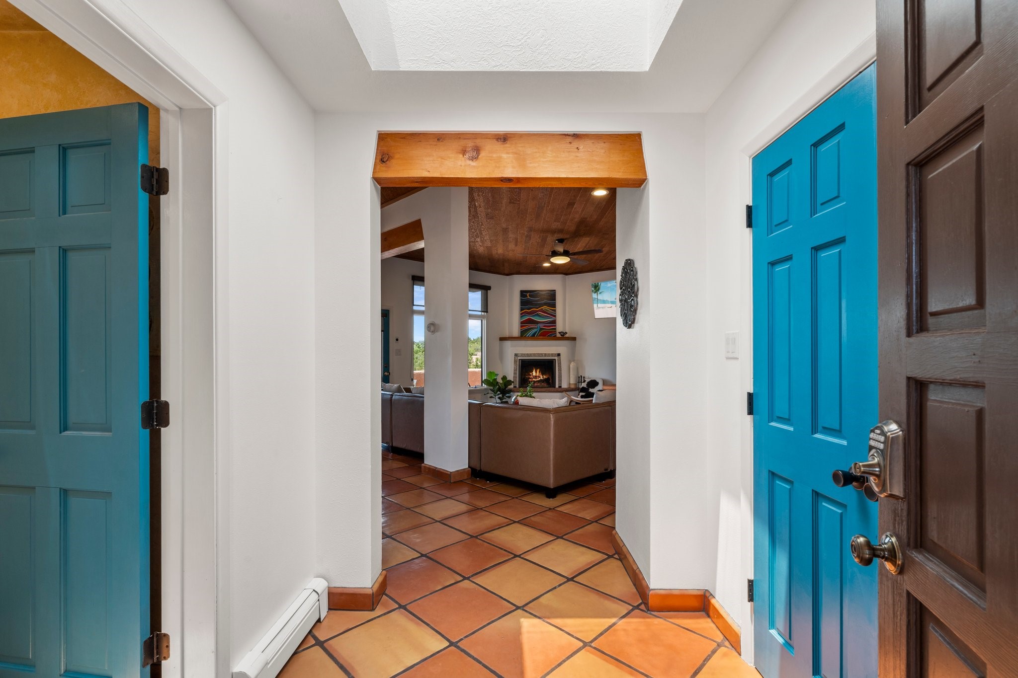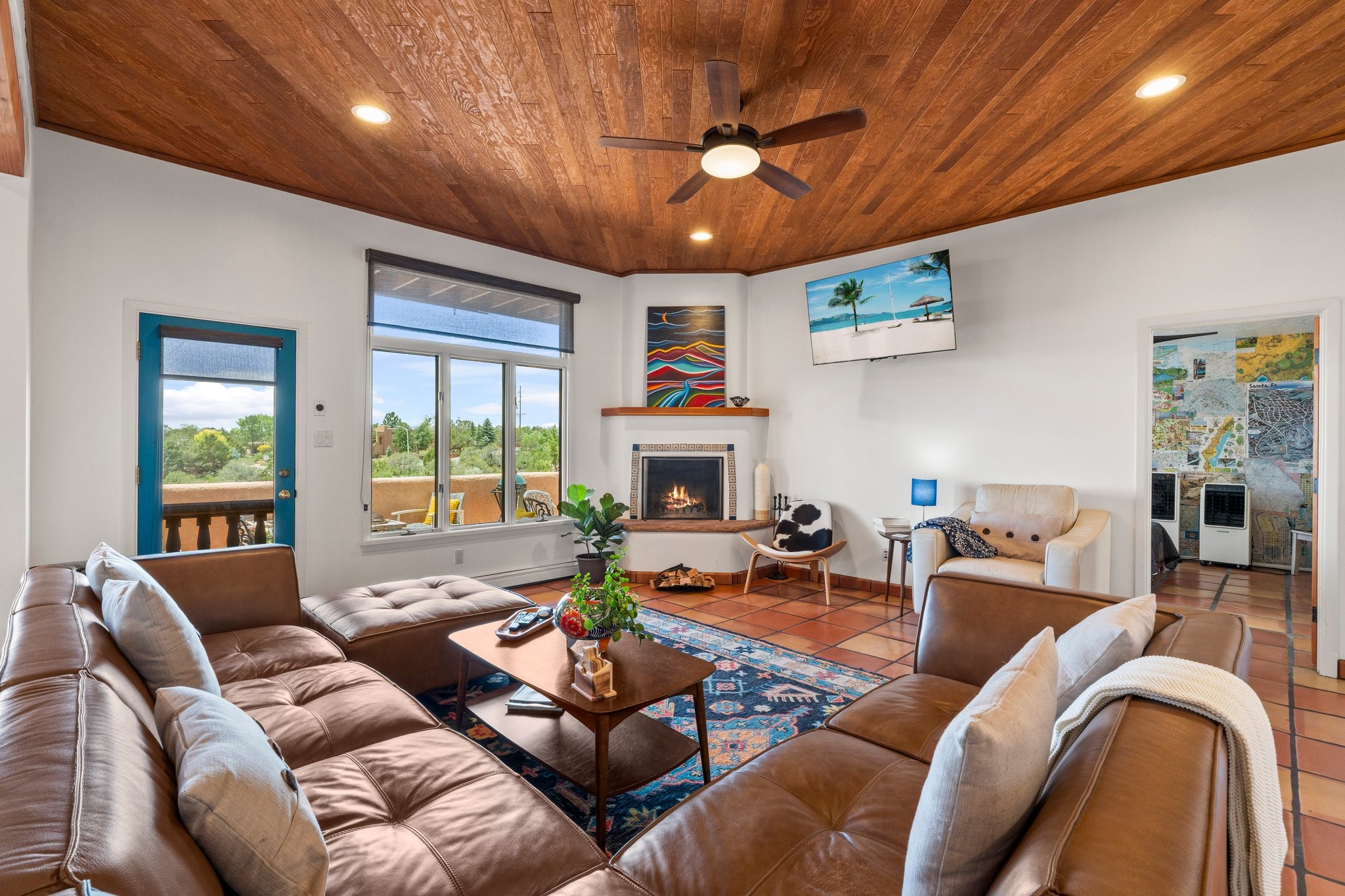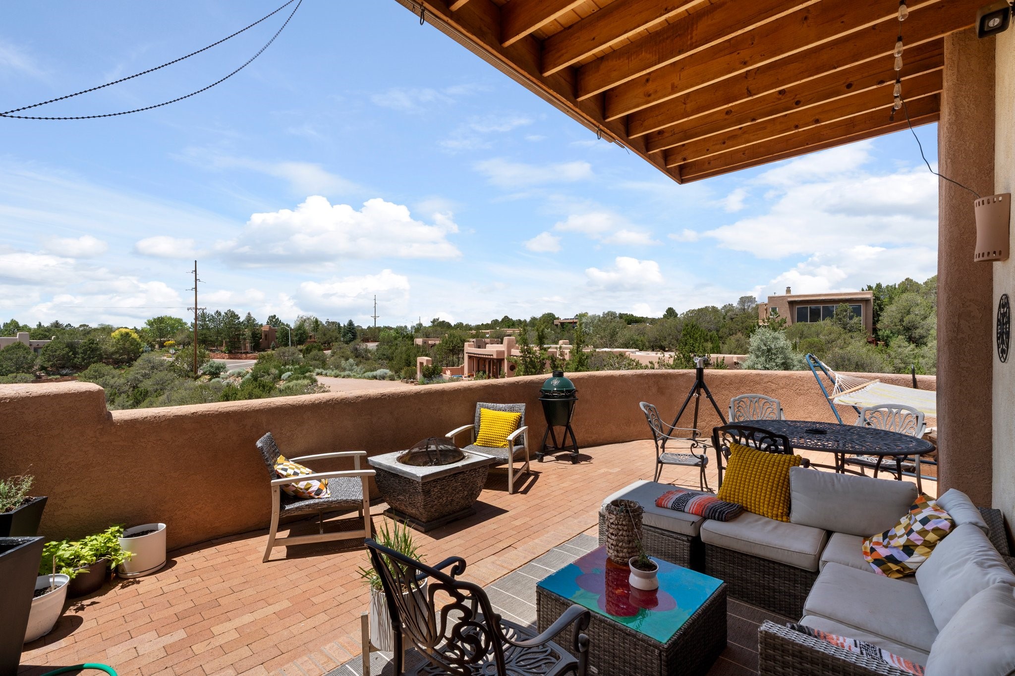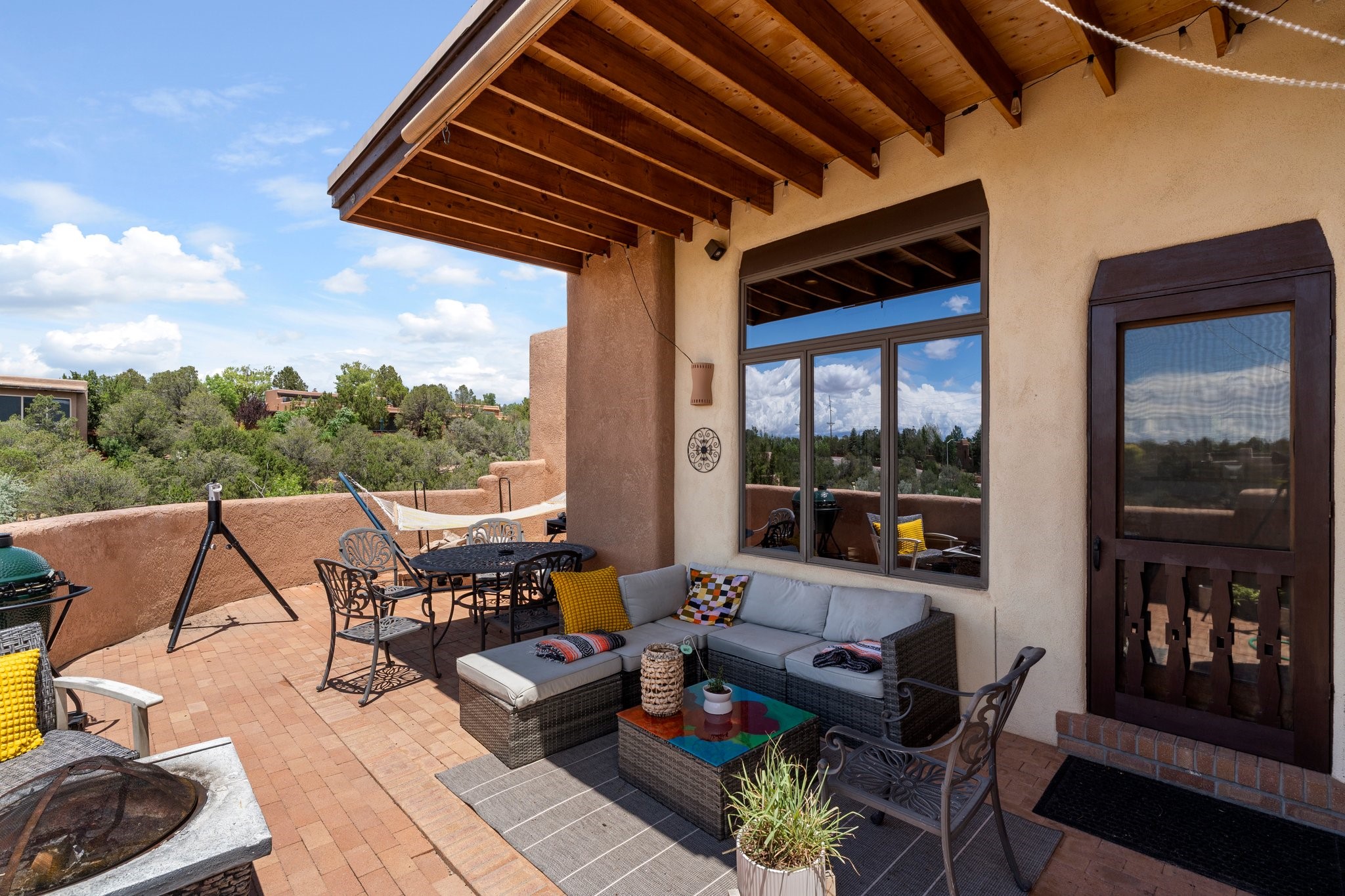 1373 Camino Sin SalidaElegant Southwest style home in Las Barrancas just moments fromDowntown Santa Fe, Plaza & Canyon Rd, built by Sonny Otero. Consistingof 4 bedrooms, 4 baths with large kitchen, dinning room and livingroom on main floor along with Master bedroom & ensuite questbedroom. Second floor on Garage level consists of 2 bedrooms alongwith office alternate bedroom, bath and large Rec Room. Recentlyupdated in prime Northside location including newly installed A/Cthroughout home with traditional finishes. This home is minutes fromworld class galleries & restaurants with easy access to Santa Fe SkiBasin