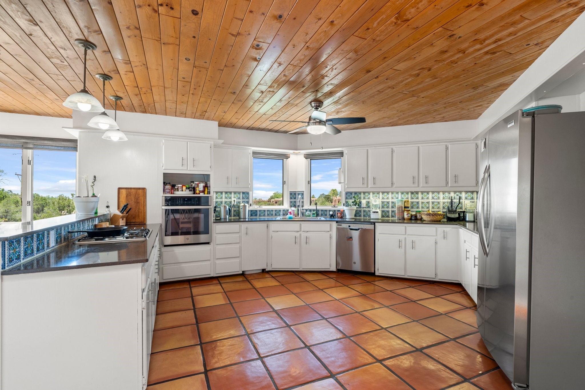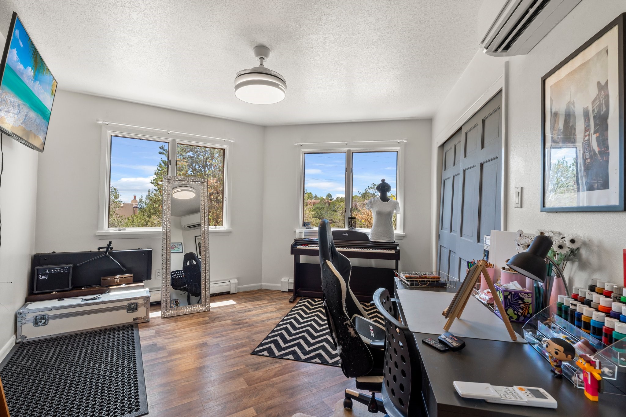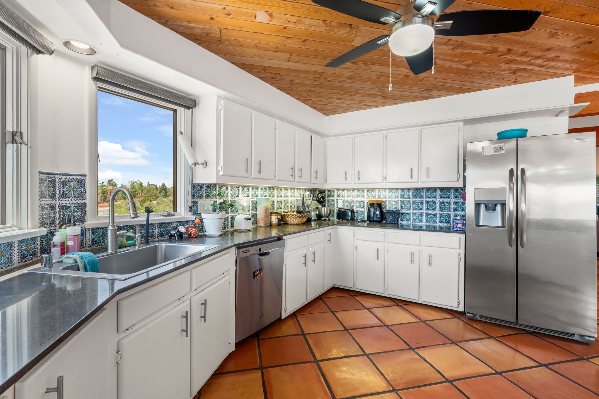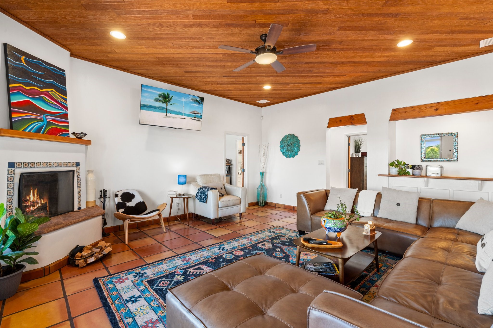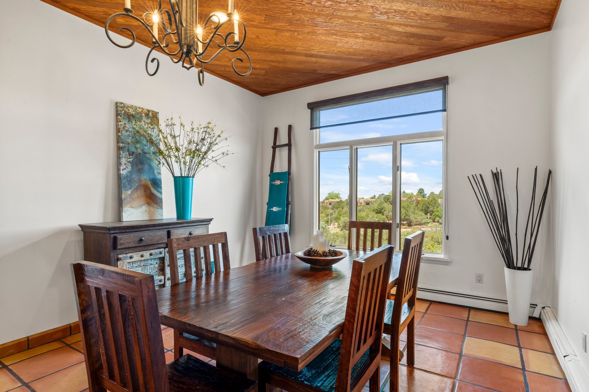 1373 Camino Sin SalidaElegant Southwest style home in Las Barrancas just moments fromDowntown Santa Fe, Plaza & Canyon Rd, built by Sonny Otero. Consistingof 4 bedrooms, 4 baths with large kitchen, dinning room and livingroom on main floor along with Master bedroom & ensuite questbedroom. Second floor on Garage level consists of 2 bedrooms alongwith office alternate bedroom, bath and large Rec Room. Recentlyupdated in prime Northside location including newly installed A/Cthroughout home with traditional finishes. This home is minutes fromworld class galleries & restaurants with easy access to Santa Fe SkiBasin