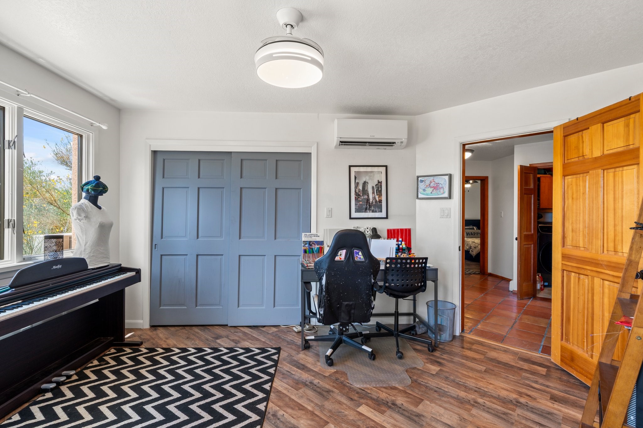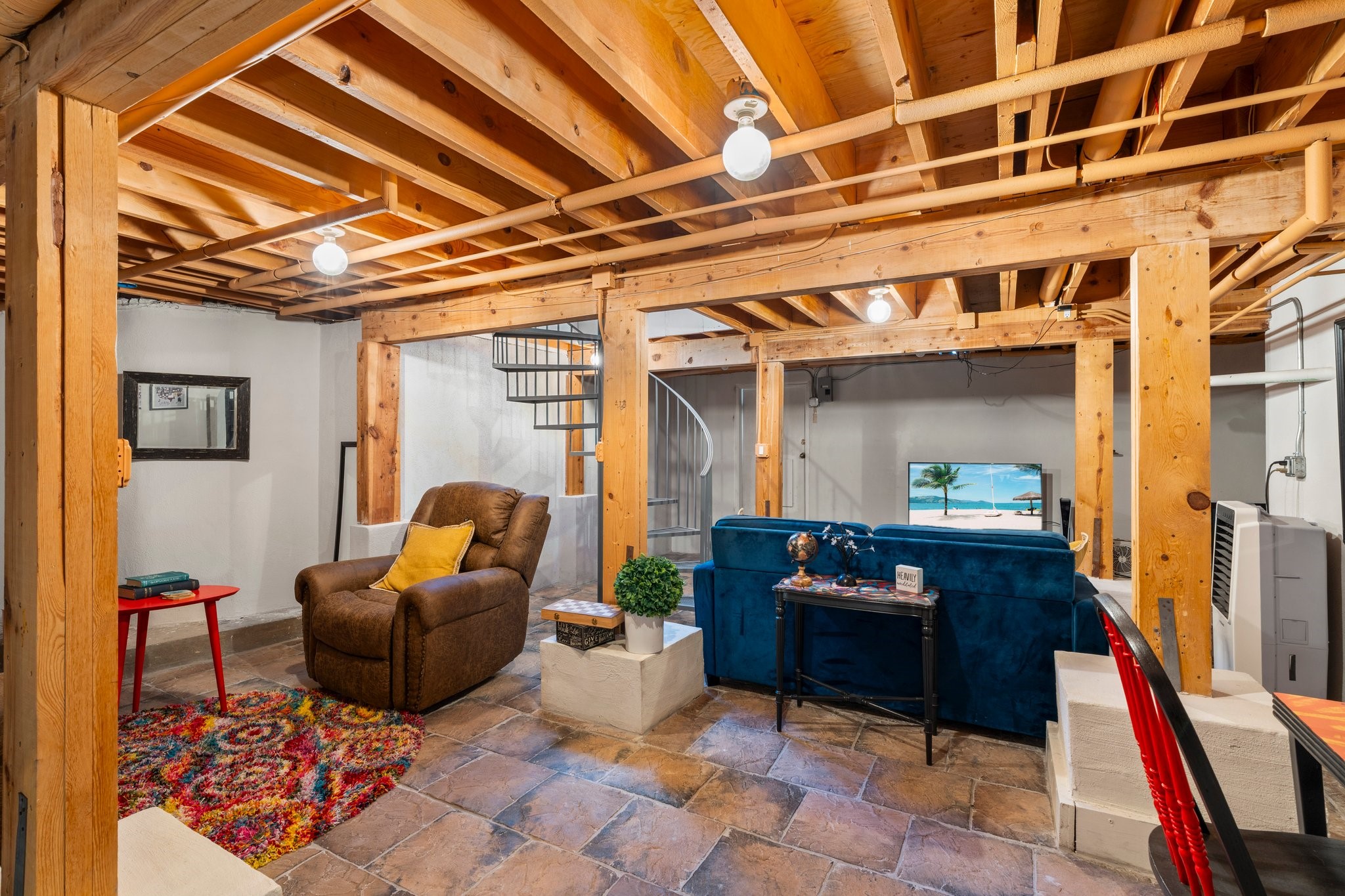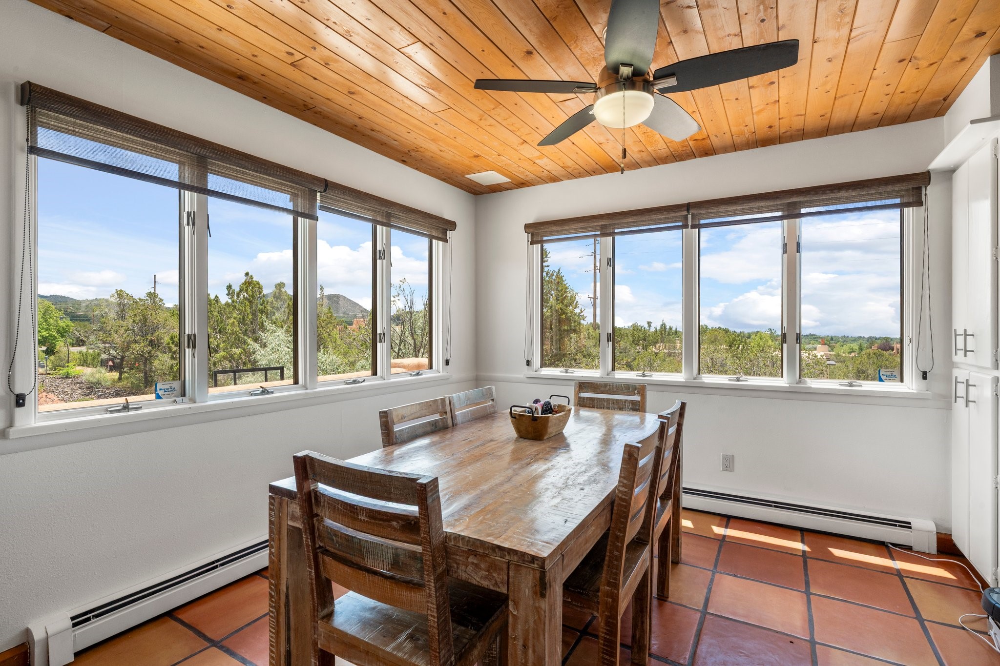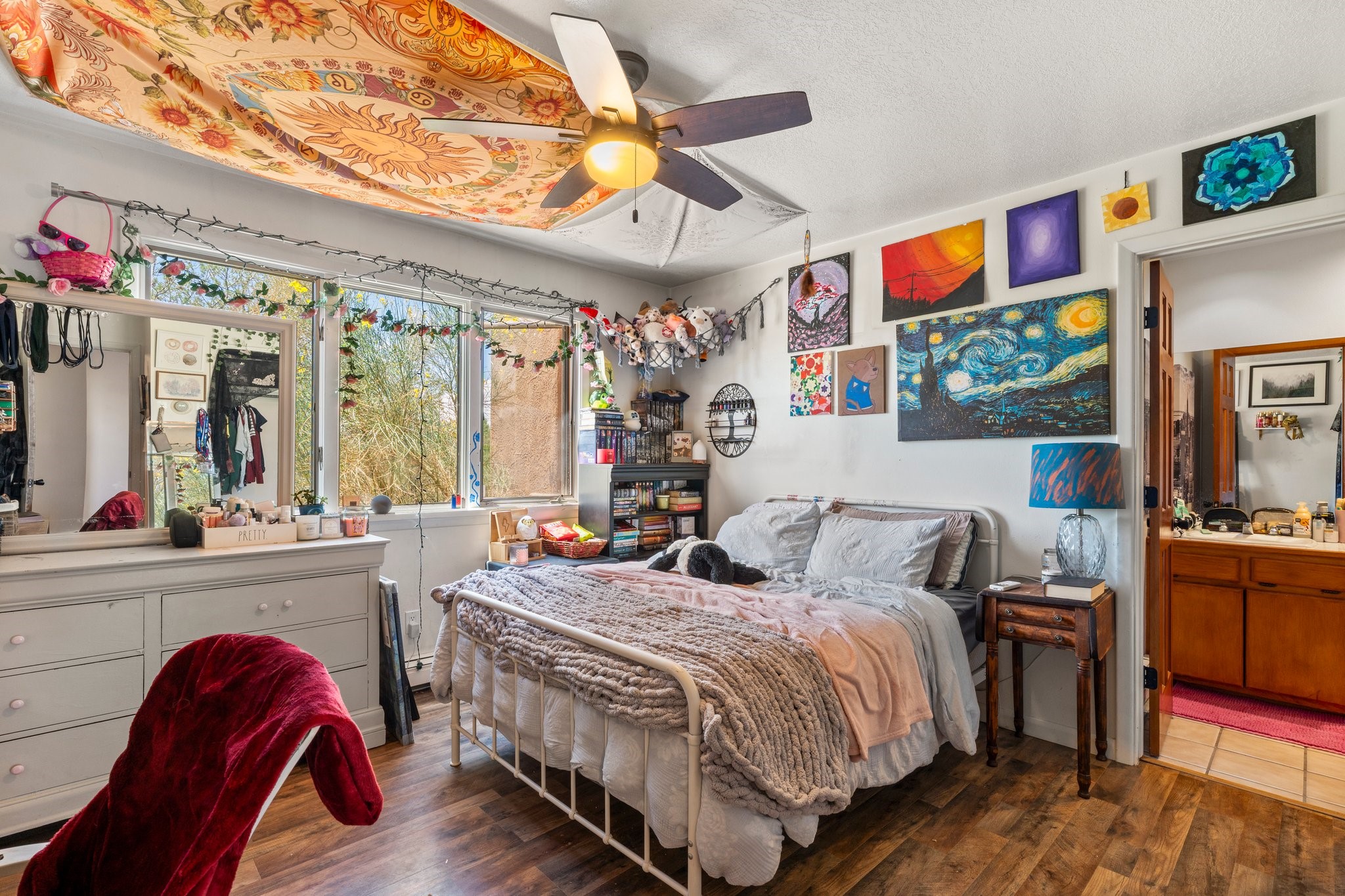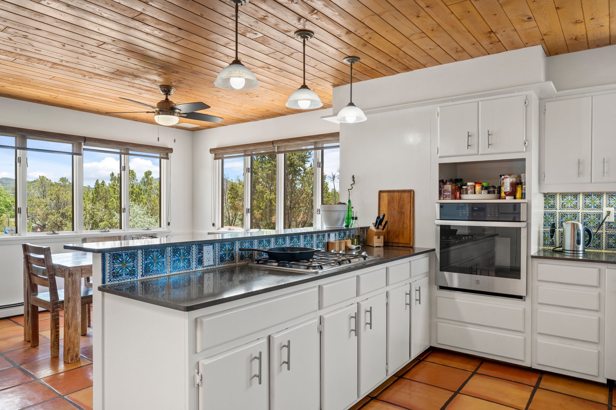 1373 Camino Sin SalidaElegant Southwest style home in Las Barrancas just moments fromDowntown Santa Fe, Plaza & Canyon Rd, built by Sonny Otero. Consistingof 4 bedrooms, 4 baths with large kitchen, dinning room and livingroom on main floor along with Master bedroom & ensuite questbedroom. Second floor on Garage level consists of 2 bedrooms alongwith office alternate bedroom, bath and large Rec Room. Recentlyupdated in prime Northside location including newly installed A/Cthroughout home with traditional finishes. This home is minutes fromworld class galleries & restaurants with easy access to Santa Fe SkiBasin