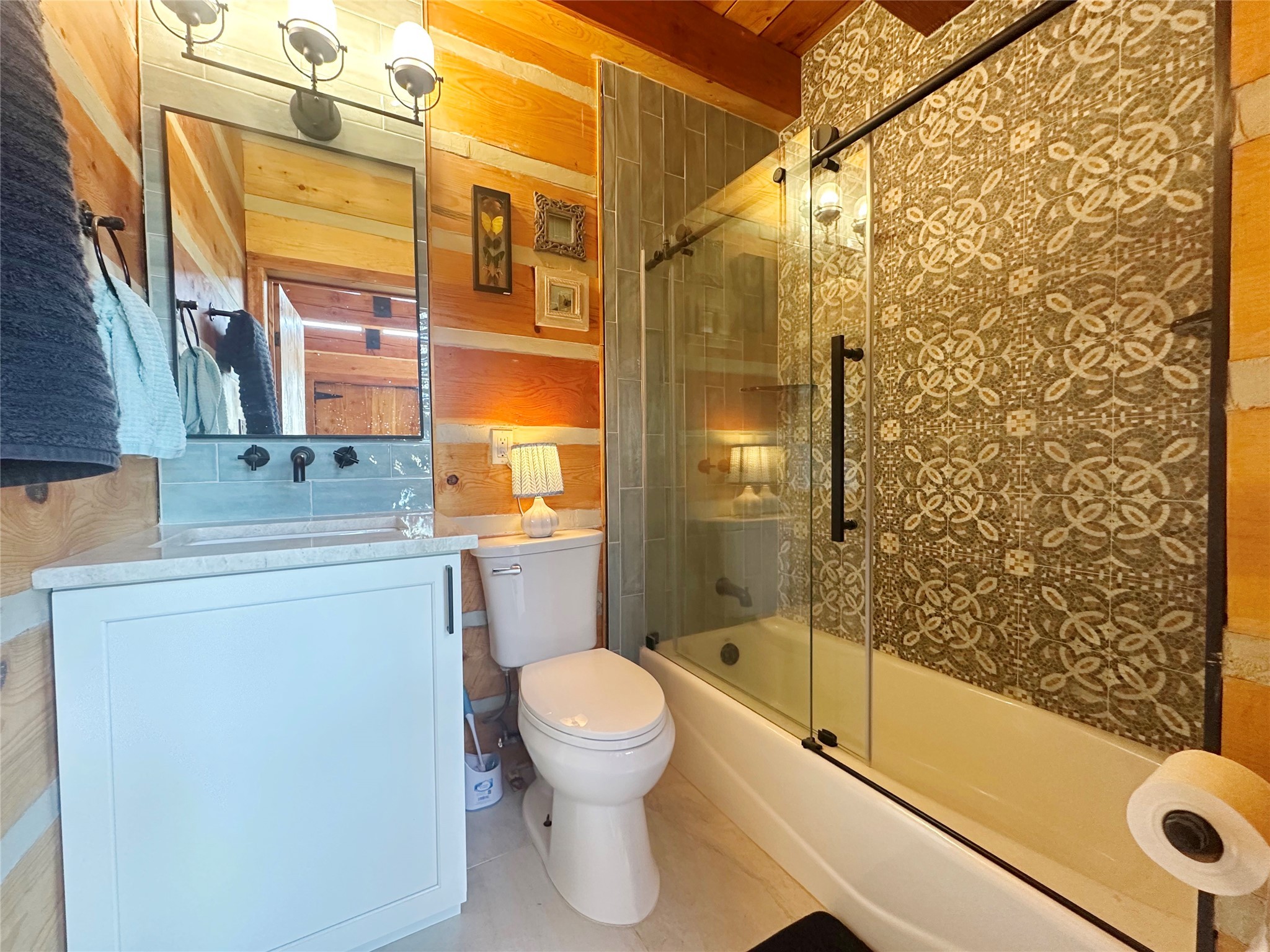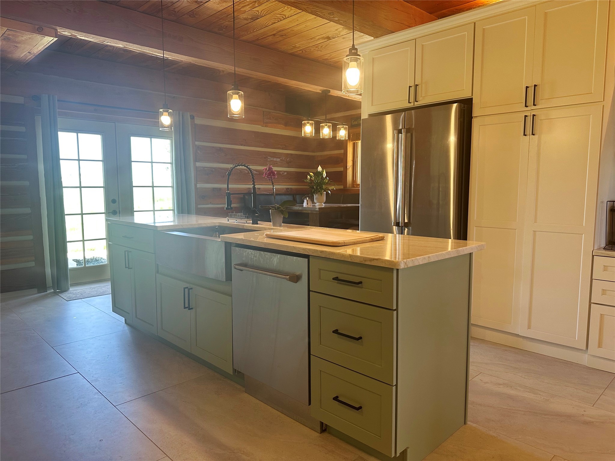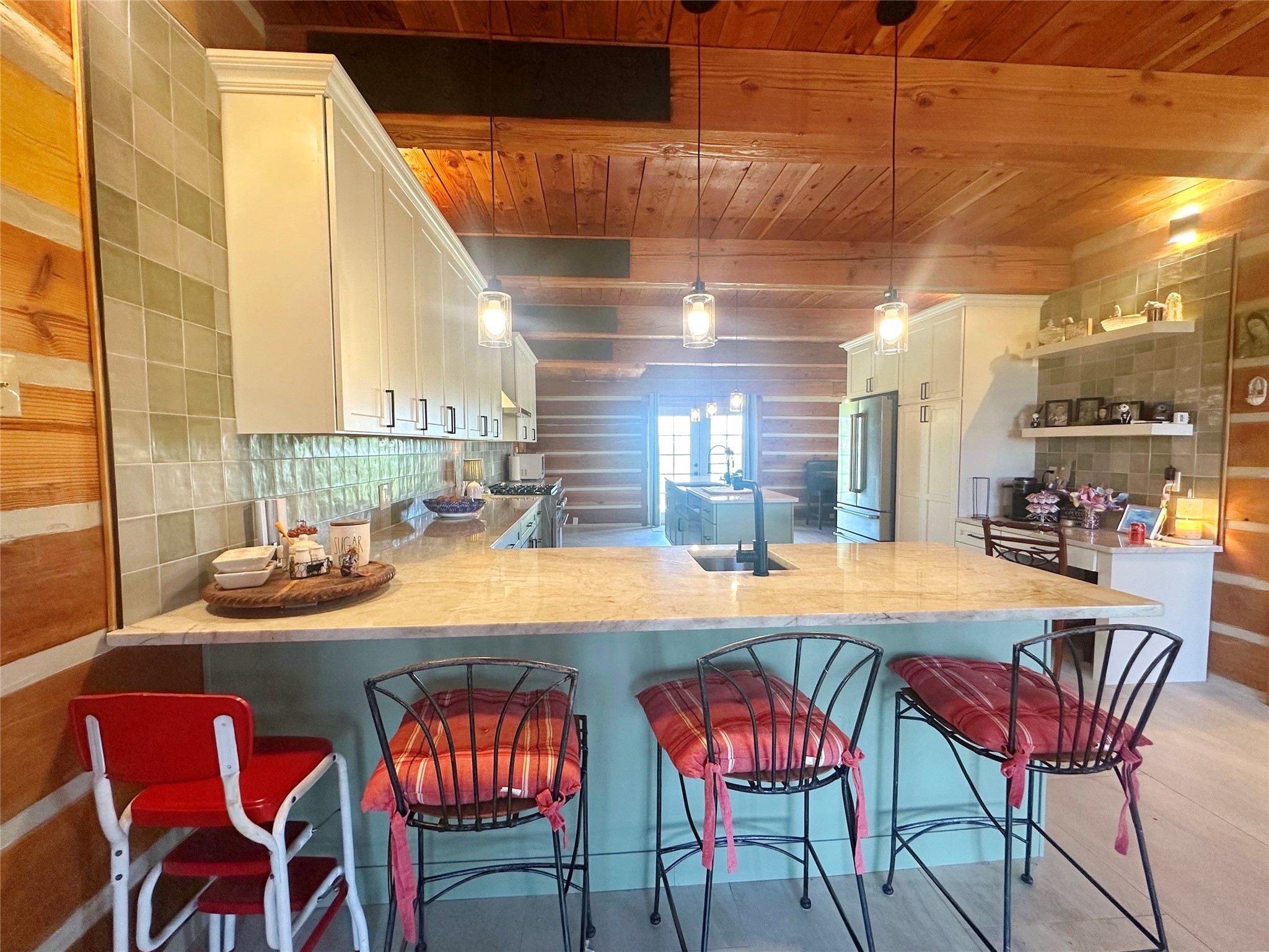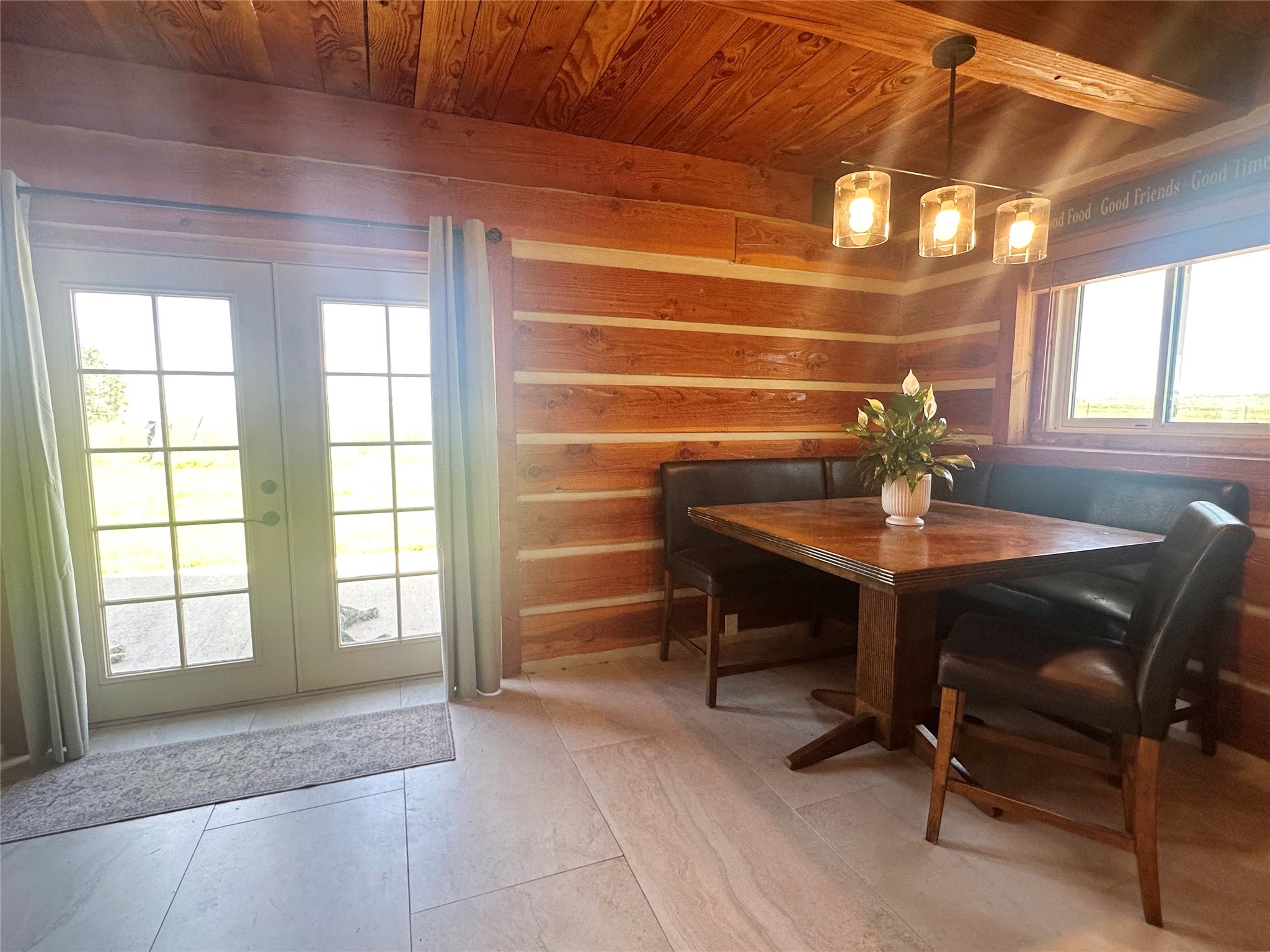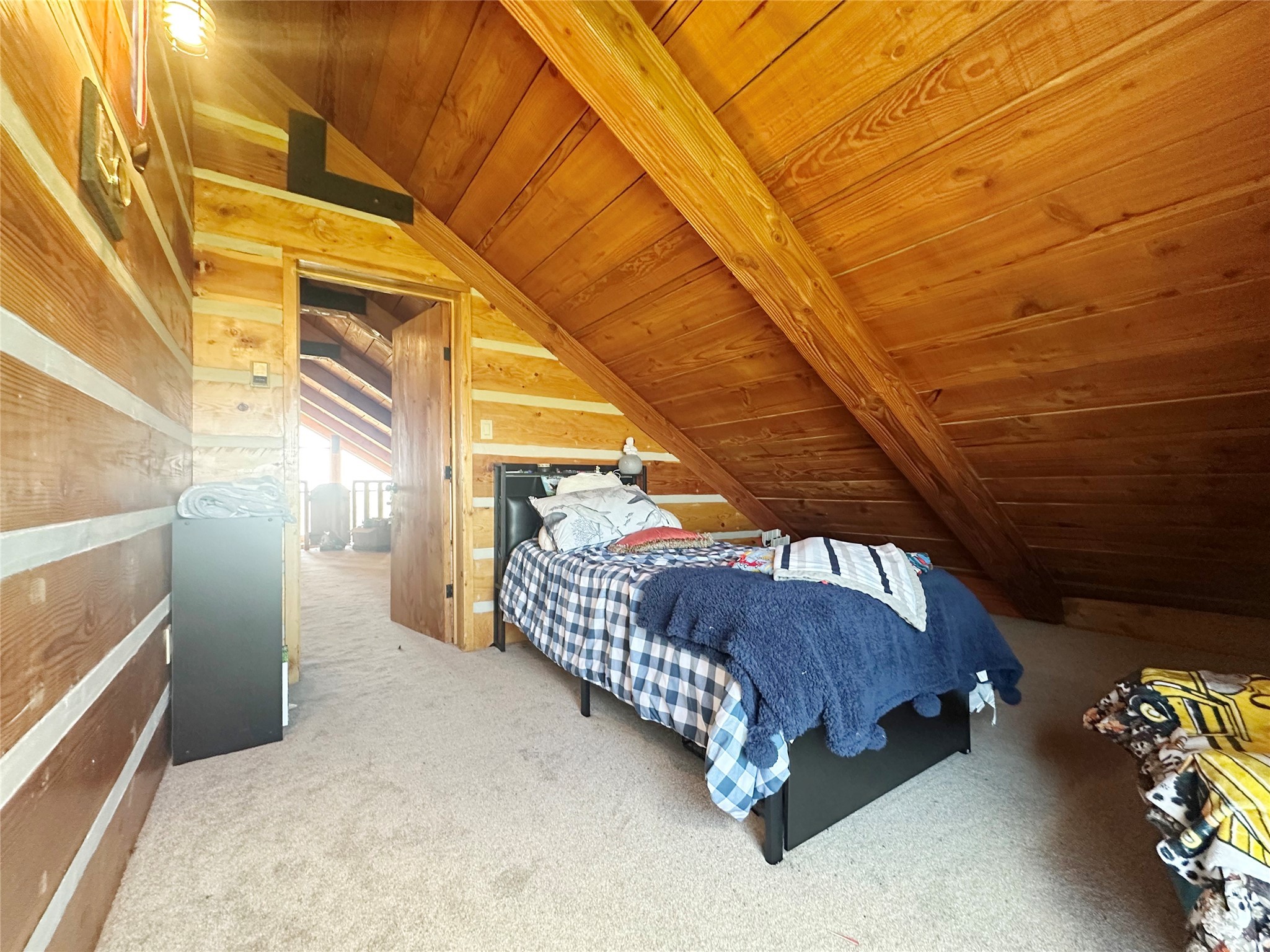 This two-story, 2,477 sq ft log cabin sits on 10 flat, usable acres in the open grasslands of Stanley, just 50 minutes from Santa Fe. The home features vaulted ceilings, modern finishes, and a practical layout with 3 bedrooms and 3 full bathrooms. The main level includes a primary suite with ensuite bath, a second full guest bath, an updated kitchen, and a central living area with a two-way fireplace and radiant floor heating. South-facing windows provide abundant natural light and support passive solar. Upstairs, a loft-style landing leads to two additional bedrooms and a full bathroom. A covered carport offers sheltered parking and extra storage. The surrounding acreage is open and accessible, with wide-ranging views in every direction. Whether you're looking for a full-time residence or a comfortable retreat from the city, this property is ready to welcome you home.