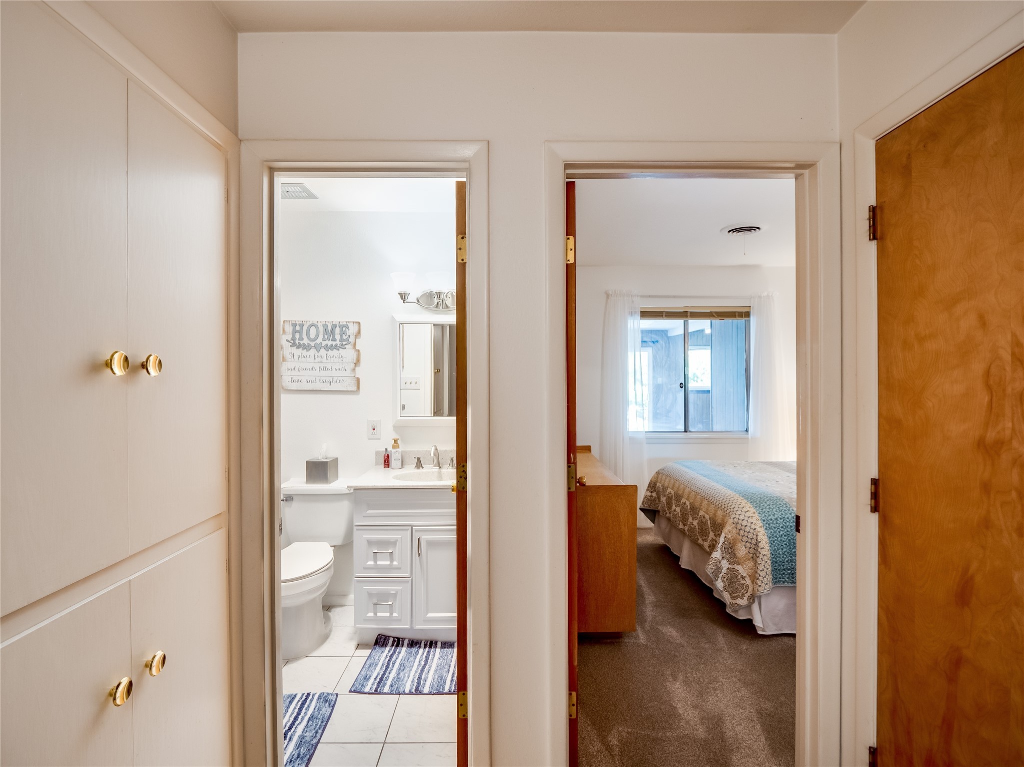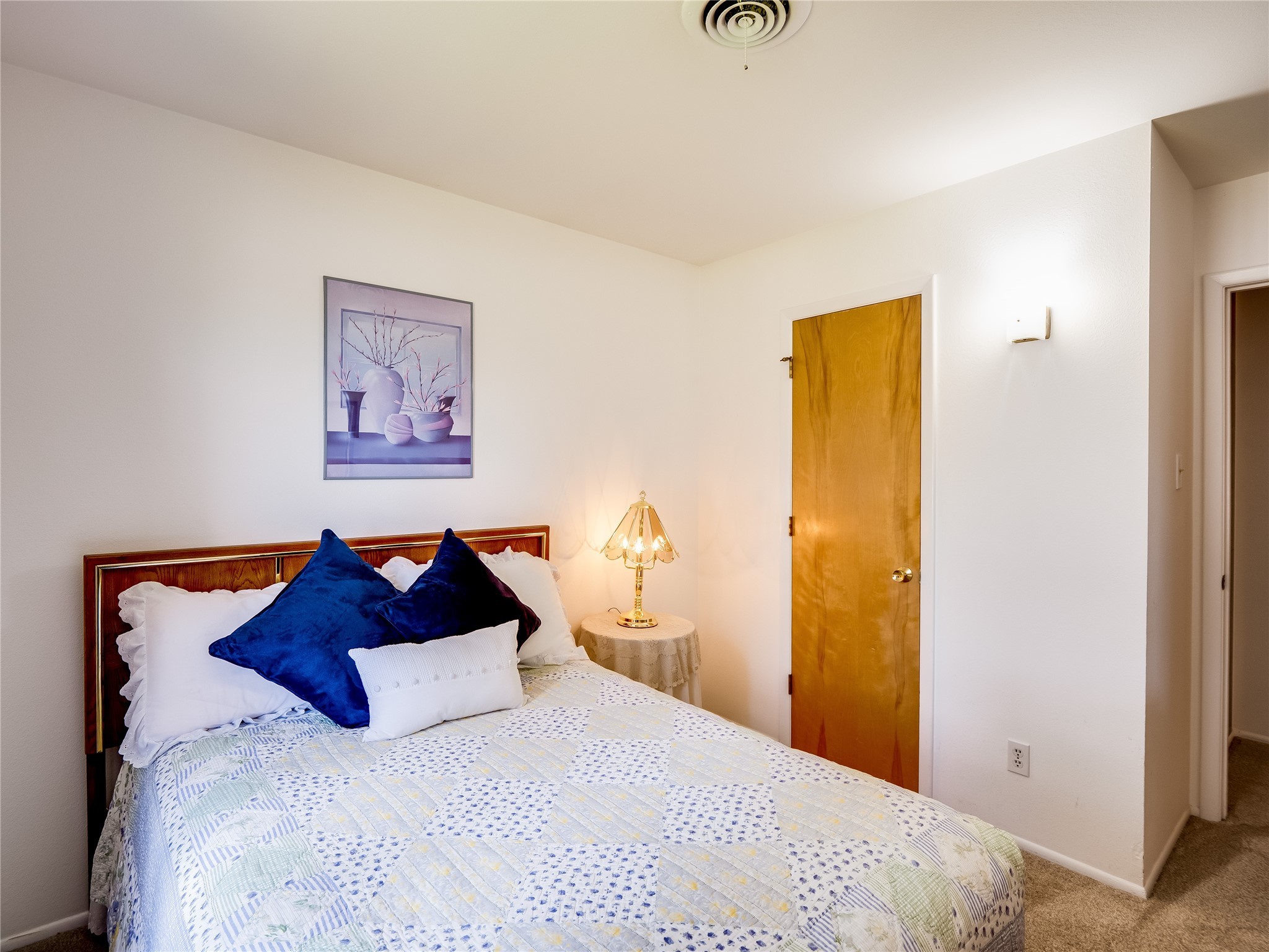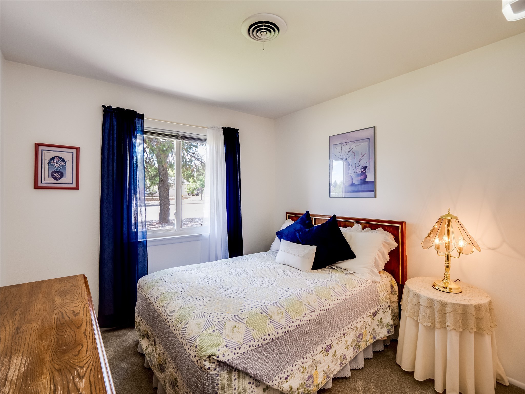 Welcome to this sensational ranch-style home in White Rock with beautiful curb appeal. A lush, green lawn and mature shade trees frame the front of the property, complemented by colorful flower beds that create a warm and inviting entrance. Step inside to find plush carpet flooring that runs throughout, adding comfort and continuity. Just off the entryway to the left is a versatile bonus room or den--ideal for a home office, study, or creative space--framed by elegant pillars that give the area a sense of separation and style. Continue forward into the cozy living room featuring a wood-burning fireplace, perfect for chilly evenings and relaxing with loved ones. The adjacent galley-style kitchen includes wood cabinets with chrome hardware and offers ample prep space, as well as a designated dining area for casual meals A 260 sq. ft. bonus room with access to backyard can be a kids play room, exercise room, a room for arts and crafts, a fifth bedroom or a great man cave! Nearby is access to the two-car garage and a convenient laundry space, providing everyday functionality. Step down into the formal dining room, filled with natural light from the surrounding windows and glass sliders that lead directly to the back patio and yard. Connected to this space is a large family room, offering another access point to the backyard, a perfect setting for gatherings, movie nights, or game days. A beautifully renovated modern guest bathroom with a white single sink vanity and a fully tiled shower/tub combo. At the end of the hall, the spacious primary en-suite overlooks the peaceful backyard and includes a walk-in closet and a private bathroom with a tiled walk-in shower and single sink vanity. The expansive backyard is a true oasis, with a lush green lawn, vibrant flower gardens, and irrigated vegetable planters--perfect for any green thumb. There's also side-yard access to park a vehicle or RV. A large patio area is ideal for outdoor dining and entertaining under the open sky.