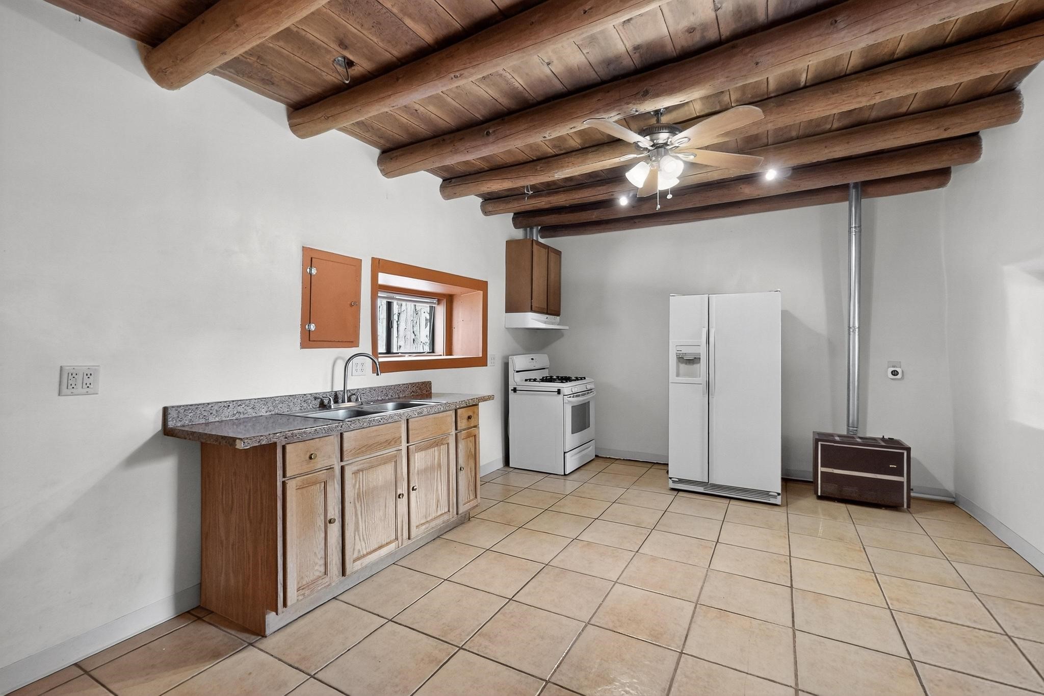 Charming Adobe Home with Classic New Mexico CharacterThis beautifully preserved adobe home offers timeless Southwestern charm and features a welcoming front porch--perfect for enjoying your morning coffee or watching the sunset.The layout includes:On one end: a private one-bedroom suite with kitchen and bathOn the other side: one additional bedroom, a second bath, and a laundry roomRarely do historic adobe homes like this come available in such excellent condition. Interior highlights include diamond-finish plaster walls, high ceilings, and exposed wood beams that showcase the true character of New Mexico architecture.Don't miss this unique opportunity to own a piece of local history.