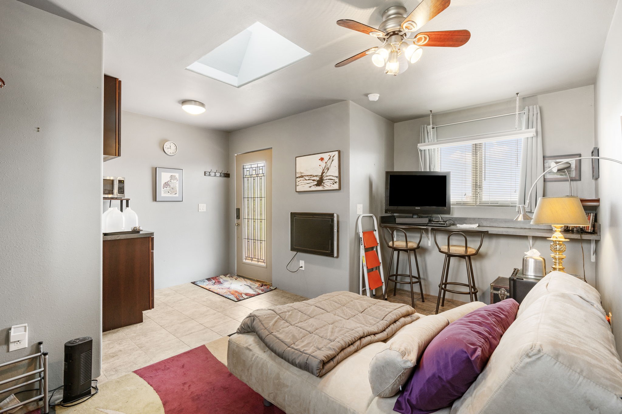 Perched Above It All | 53 Private Drive, Medanales, NMSet atop a quiet mesa with nearly 360 views of Northern New Mexico's iconic landscape, this soulful 3-bedroom, 2-bath Southwestern retreat rests on just under 9 acres of open sky and timeless beauty.Inside, the home blends rustic charm with clean comfort--Santa Fe-style smooth plaster walls, exposed wood beams, classic tile floors, and warm light moving through every space. With 2,295 square feet, the layout feels open and thoughtful, and a detached studio offers the perfect setup for remote work, a creative retreat, or private guest quarters. High-speed internet and refrigerated air ensure you're both off the grid and on the grid.From the front portal, the views stretch endlessly--from the Rio Chama Valley to the jagged outline of Cerro Pedernal, the mountain Georgia O'Keeffe painted again and again. There's a reason artists, writers, and seekers have long been drawn to this land--it stirs something deep.Whether you're sipping coffee at sunrise under your gazebo, sketching the shifting light, or heading out for a day trip to Abiquiu Lake, Ghost Ranch, or Ojo Caliente, life here moves slower, feels fuller, and breathes easier. Santa Fe is just 55 minutes away, Los Alamos about 45, and Taos a scenic 75-minute drive--putting world-class art, culture, and dining within easy reach.This isn't just a home--it's a place to live inspired.