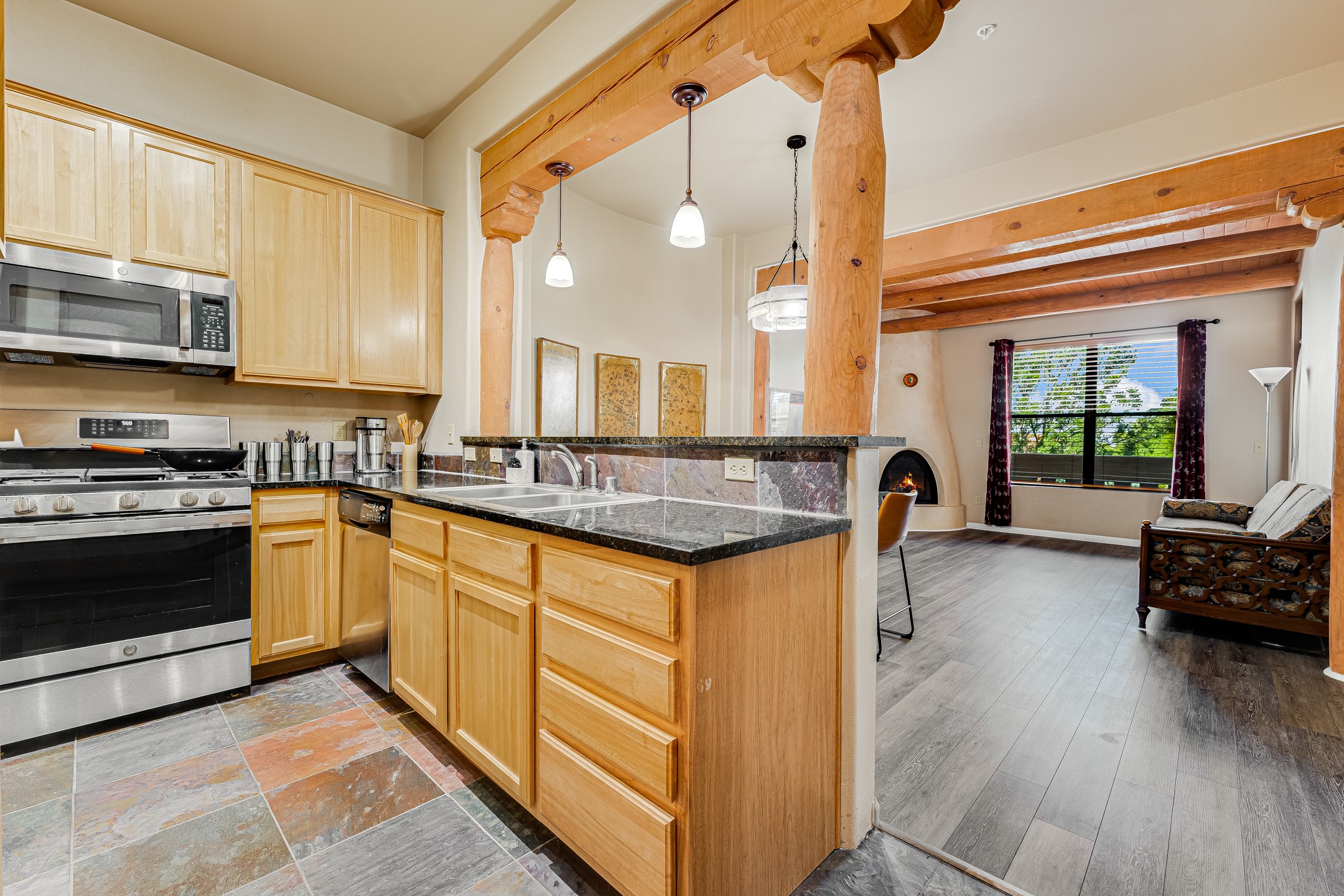 Welcome to Unit 205 at 1405 Vegas Verdes Drive, a beautifully maintained 1-bedroom, 1 1/2-bathroom condo in the desirable Alameda Condominiums. This second-floor turn key unit is being sold fully furnished, making it a perfect move-in-ready residence or investment opportunity. Enjoy an open-concept living space with high ceilings, abundant natural light, and quality finishes throughout. The kitchen features granite countertops and stainless steel appliances, and the private balcony offers a peaceful outdoor retreat. A rare bonus for this unit is its own private large storage unit, providing extra space for seasonal items or gear. The Alameda offers secure, elevator-access buildings, landscaped courtyards, a fitness center, pool, and a clubhouse for residents. Conveniently located near shopping, restaurants, and just minutes to downtown Santa Fe, this furnished unit with storage offers comfort, convenience, and value in one of Santa Fe's most sought-after communities.