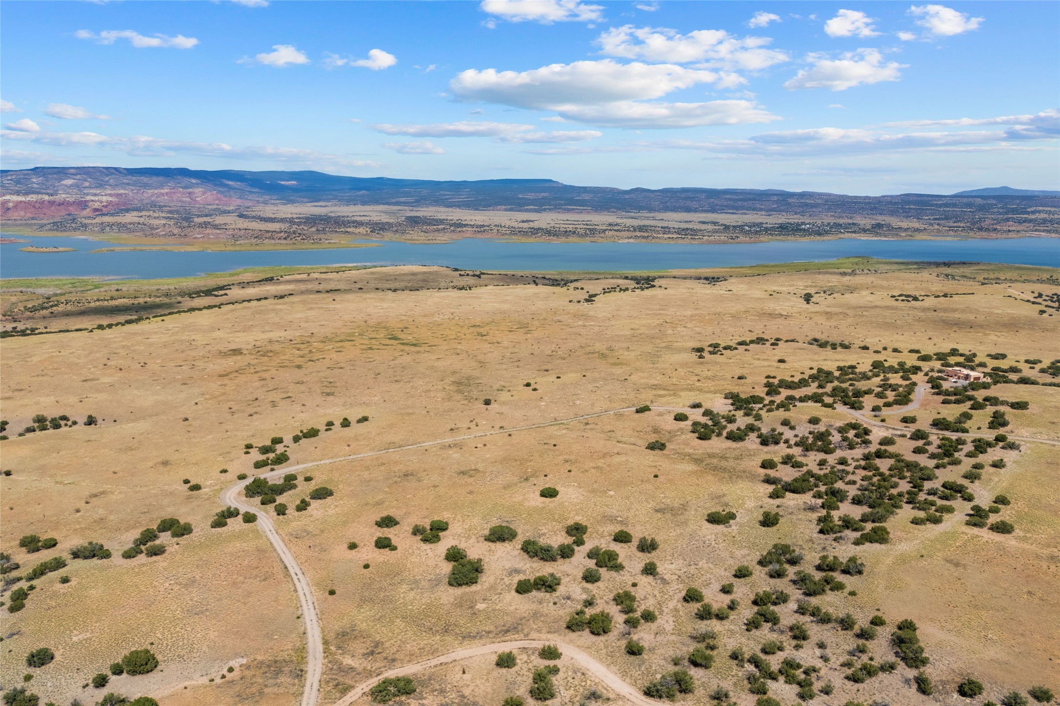 Very Special and Secluded 13.61 acres with expansive views of Abiquiu Lake. This parcel is located in a gated community consisting of large parcels, beautiful homes and access to a private small boat ramp. An electric transformer is situated on the property. All roads in the subdivision are accessible. Spend your days boating or fishing or simply enjoying the peacefulness and the beautiful scenery.