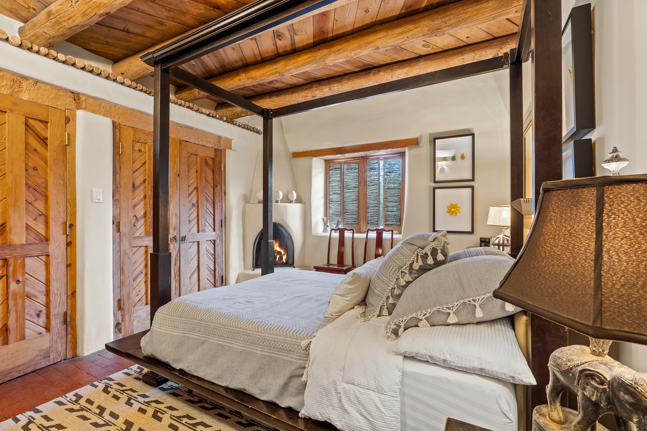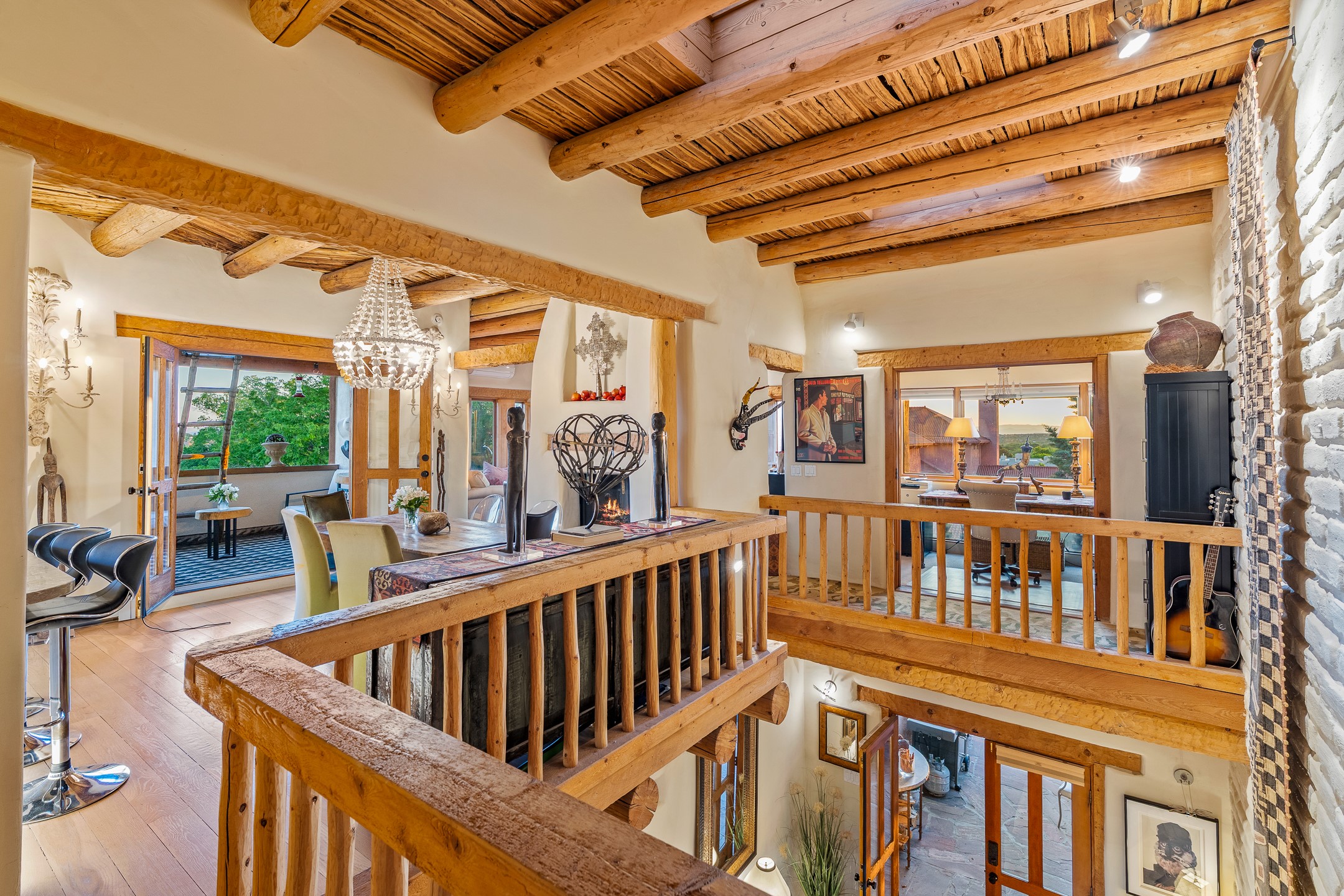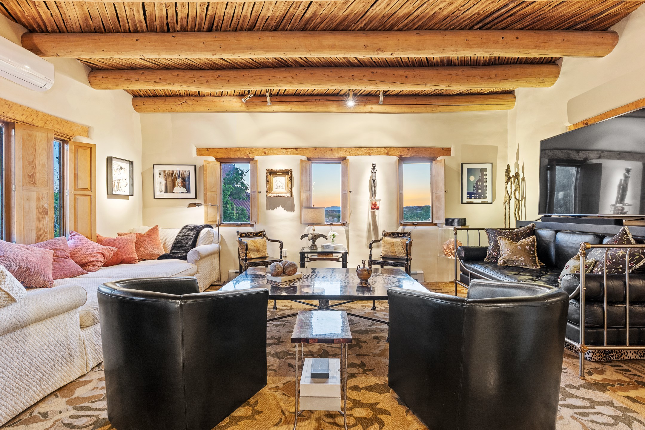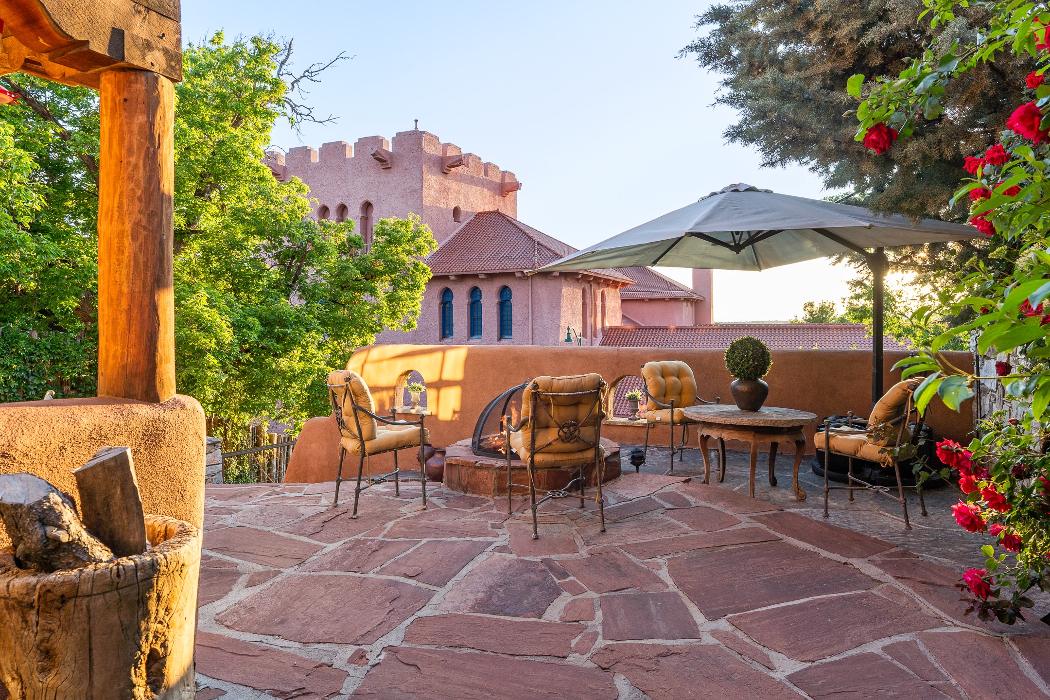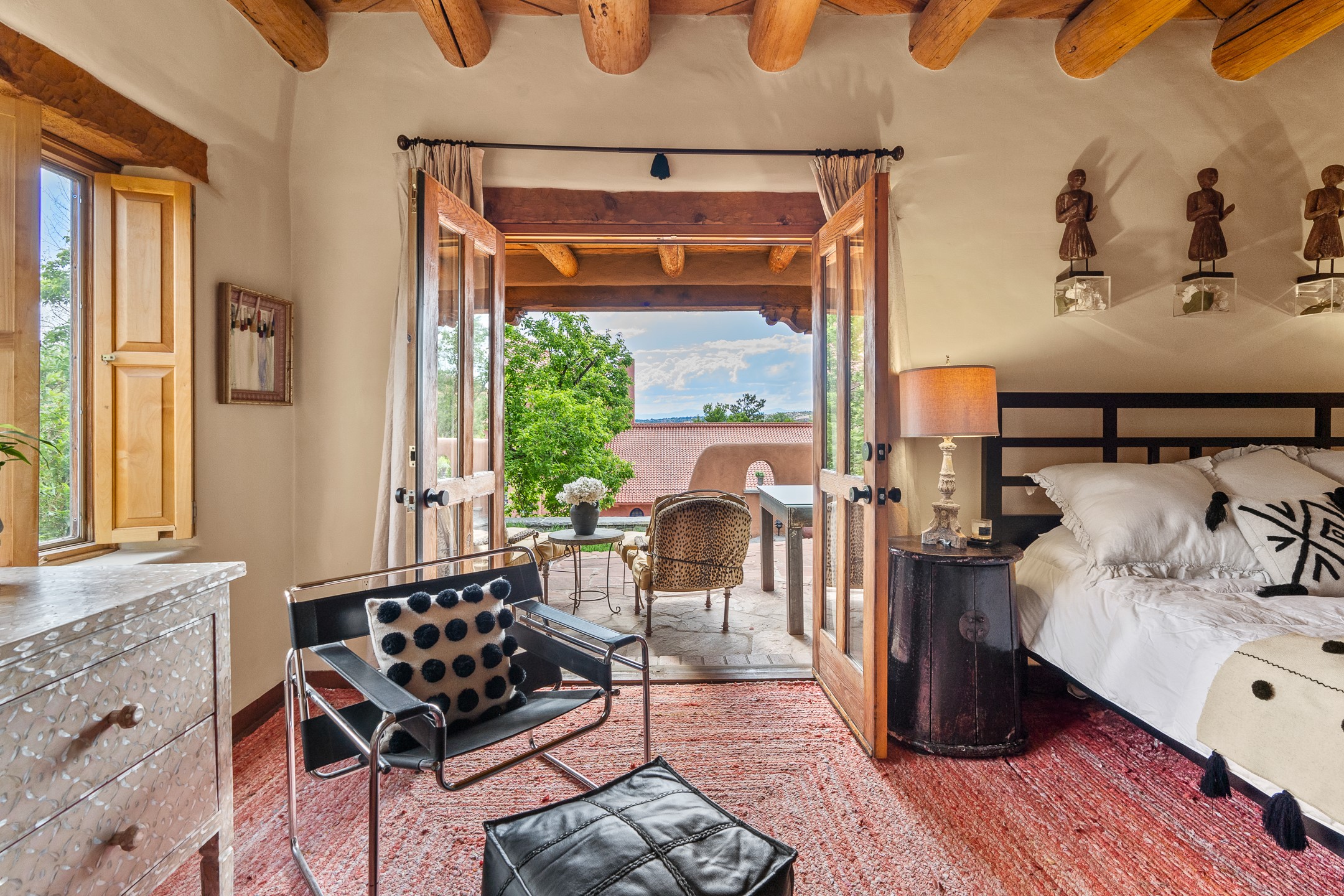 Where the Charm of San Miguel de Allende Meets the Magic of Santa Fe. Perched just above Bishop's Lodge Rd in the Historic district--only one block from the beloved SantaCaf and Market Street Steakhouse--this extraordinary adobe sanctuary offers a magical blend of romance, drama, and sweeping views. From sunsets over the Jemez to the sparkling city lights below, every angle reveals another layer of enchantment. This is a home that speaks in texture, light, and soul--a true Santa Fe treasure infused with old-world elegance. The 2,600 sq. ft. 2 bedroom, 2 bath home has been reimagined with refined artistry and attention to detail. The primary bath is a serene retreat with floor-to-ceiling river rock walls and a 4" deep white onyx double vanity lit from below, allowing the onyx geode sinks to glow. The primary bedroom has French doors that open to a private patio sanctuary, where tiered terraces and lush landscaping offer expansive Jemez mountain views and beautiful Santa Fe sunsets. A curved stone stairway lined with 10 ft stone walls lead down to dramatic antique Indian elephant doors, offering a secret, storybook passage to The Plaza. The foyer opens up to a 22 ft atrium and a wooden carved staircase. The second floor retreat is an open-concept kitchen/living/dining design. The space is anchored by a double-sided wood-burning fireplace that connects the dining and living rooms, adding warmth and ambiance to this exceptional space. The chef's kitchen has been completely renovated with embedded shell limestone honed countertops, a $15,000 AGA Elise gas stove with a wok burner, a chiseled brick cream limestone backsplash, and custom cream cabinetry--offering both elegance and functionality. The dining area opens onto a covered portal with sweeping views of Santa Fe's mountains and downtown skyline. In the living room, romantic shuttered windows frame a bird's-eye view of the city with views of the Ortiz mountains, Sun and Moon mountains, the Jemez Mountains and the city lights. 333 Magdalena - An extraordinary residence where timeless design, natural beauty, and an unbeatable location converge.