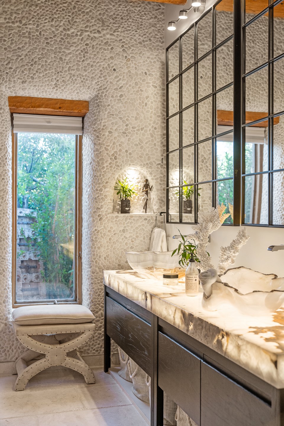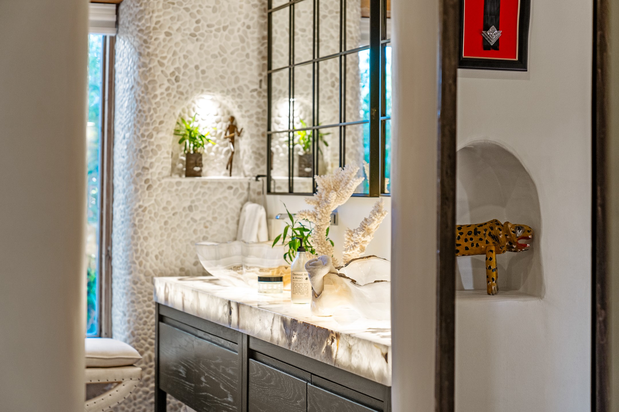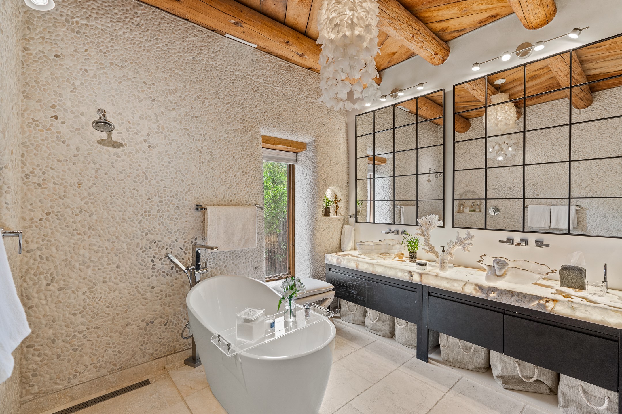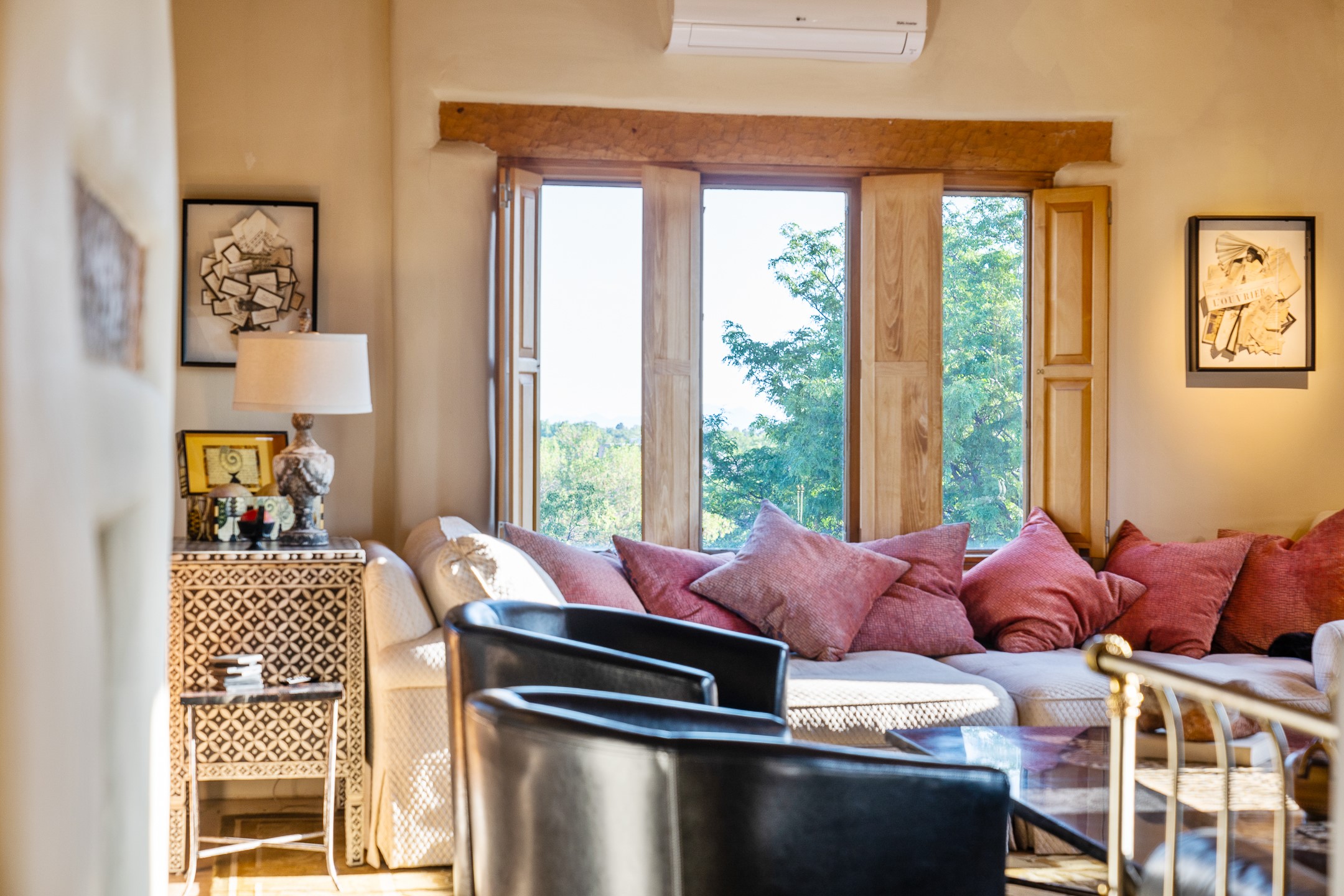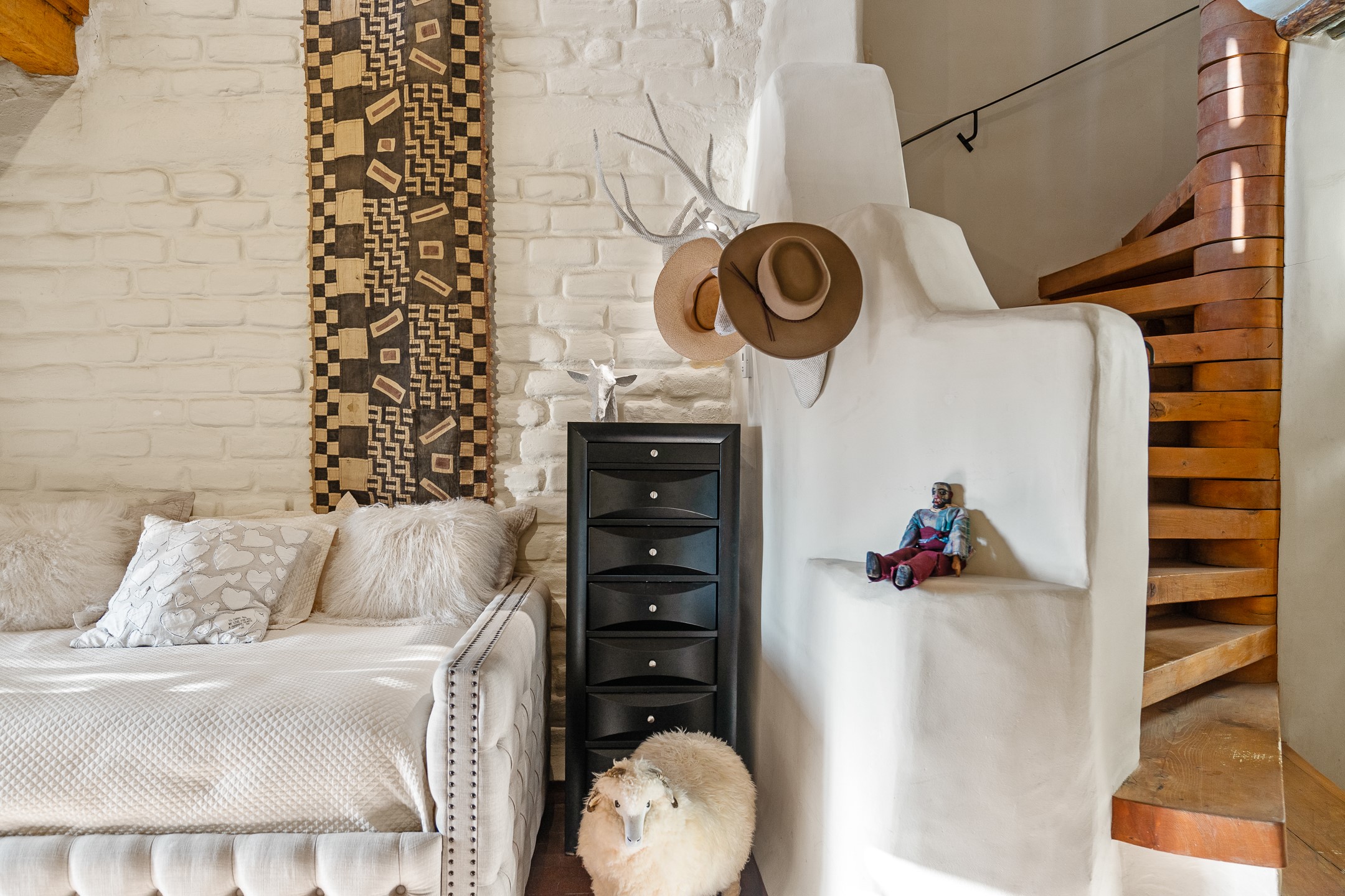 Where the Charm of San Miguel de Allende Meets the Magic of Santa Fe. Perched just above Bishop's Lodge Rd in the Historic district--only one block from the beloved SantaCaf and Market Street Steakhouse--this extraordinary adobe sanctuary offers a magical blend of romance, drama, and sweeping views. From sunsets over the Jemez to the sparkling city lights below, every angle reveals another layer of enchantment. This is a home that speaks in texture, light, and soul--a true Santa Fe treasure infused with old-world elegance. The 2,600 sq. ft. 2 bedroom, 2 bath home has been reimagined with refined artistry and attention to detail. The primary bath is a serene retreat with floor-to-ceiling river rock walls and a 4" deep white onyx double vanity lit from below, allowing the onyx geode sinks to glow. The primary bedroom has French doors that open to a private patio sanctuary, where tiered terraces and lush landscaping offer expansive Jemez mountain views and beautiful Santa Fe sunsets. A curved stone stairway lined with 10 ft stone walls lead down to dramatic antique Indian elephant doors, offering a secret, storybook passage to The Plaza. The foyer opens up to a 22 ft atrium and a wooden carved staircase. The second floor retreat is an open-concept kitchen/living/dining design. The space is anchored by a double-sided wood-burning fireplace that connects the dining and living rooms, adding warmth and ambiance to this exceptional space. The chef's kitchen has been completely renovated with embedded shell limestone honed countertops, a $15,000 AGA Elise gas stove with a wok burner, a chiseled brick cream limestone backsplash, and custom cream cabinetry--offering both elegance and functionality. The dining area opens onto a covered portal with sweeping views of Santa Fe's mountains and downtown skyline. In the living room, romantic shuttered windows frame a bird's-eye view of the city with views of the Ortiz mountains, Sun and Moon mountains, the Jemez Mountains and the city lights. 333 Magdalena - An extraordinary residence where timeless design, natural beauty, and an unbeatable location converge.