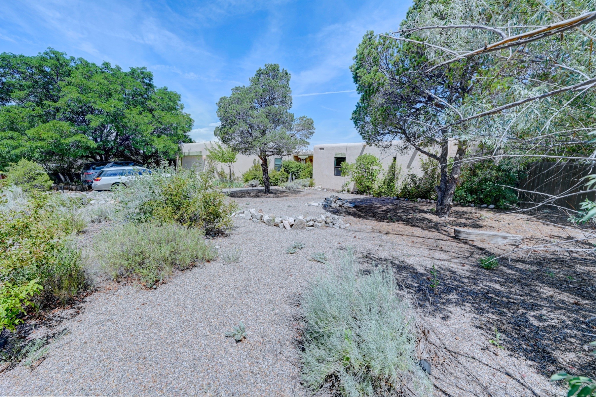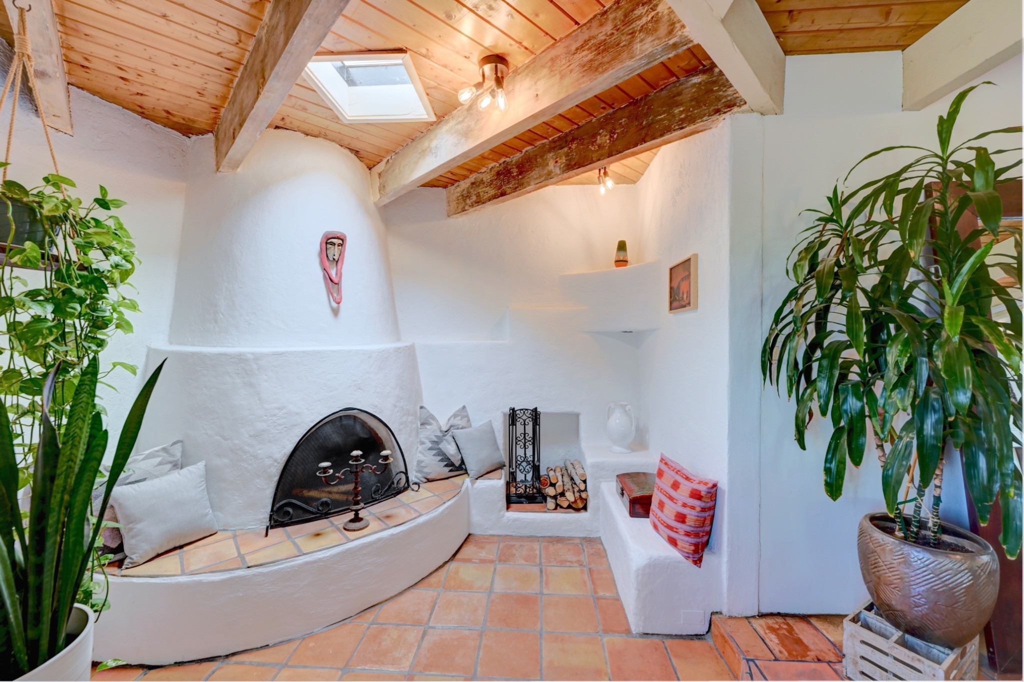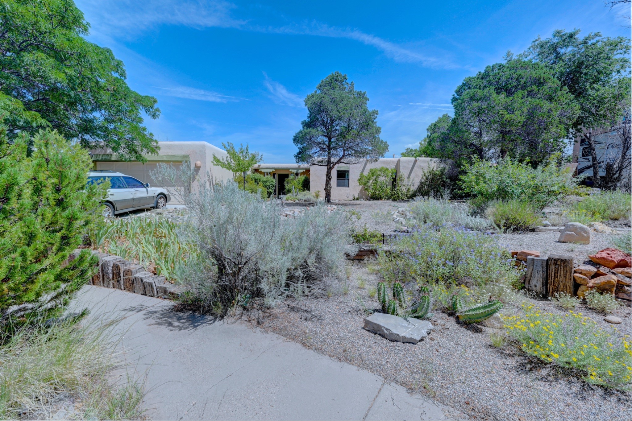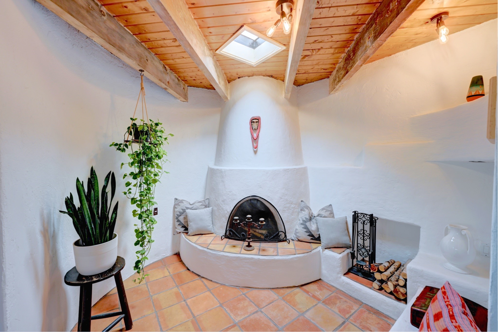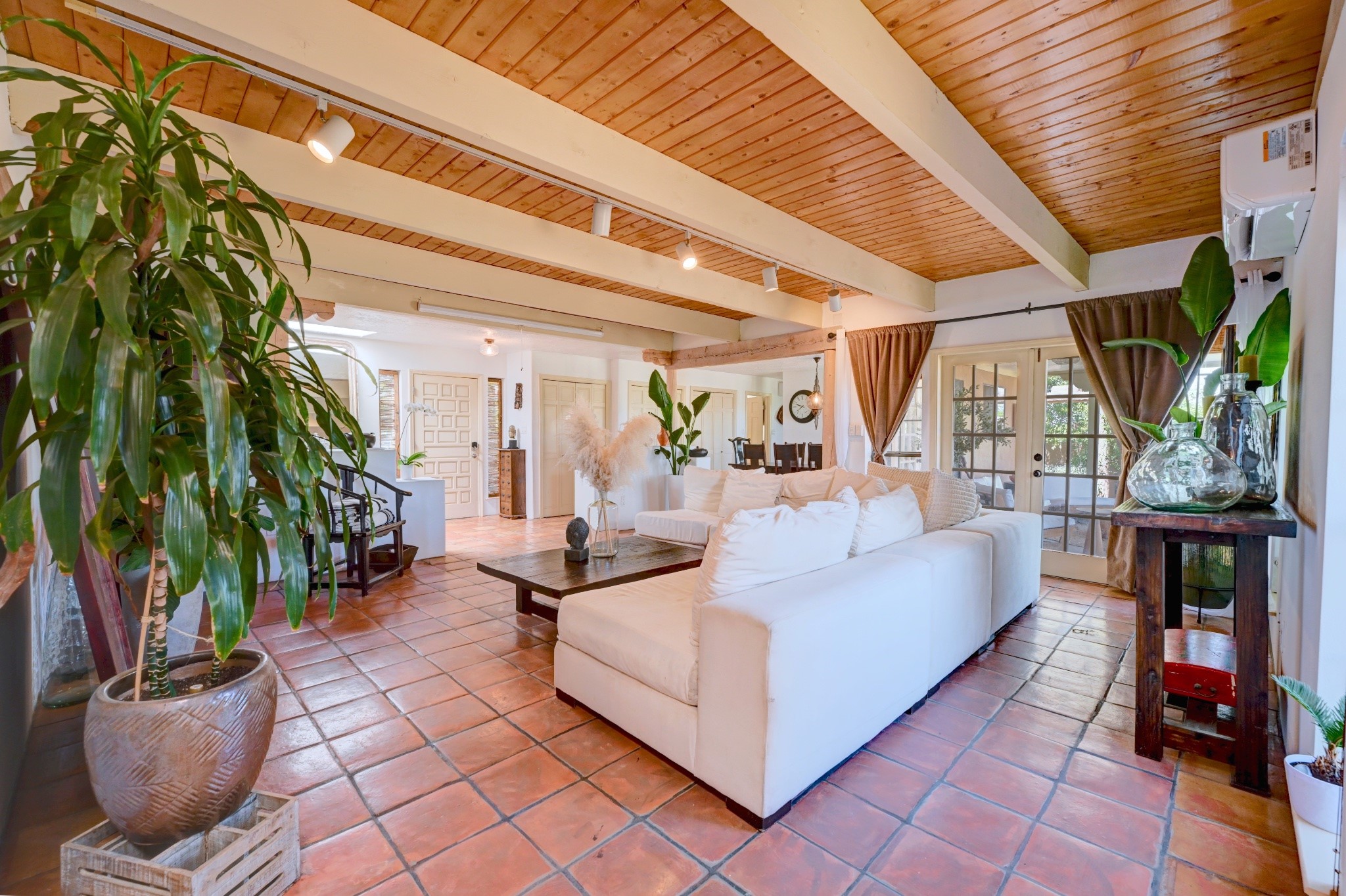 Discover the perfect blend of Southwestern charm and modern convenience in this captivating 3-bedroom, 3-bathroom home spanning 2,376 square feet. This Santa Fe gem welcomes you with authentic Saltillo tiles and stunning exposed ceiling beams that create an atmosphere of rustic elegance throughout.The heart of the home features a beautiful Kiva-style fireplace with its own intimate sitting area, perfect for cozy evenings or entertaining guests. Stay comfortable year-round with five newly installed mini-split systems ensuring optimal climate control in every corner of your home.Recent upgrades include a new tankless water heater for endless hot water, a convenient garage door opener, and a completely redone driveway that enhances curb appeal. Two radon mitigation systems provide peace of mind with comprehensive coverage at both ends of the house.The generous lot offers ample outdoor space, including room for recreational vehicle parking - a rare find that adds tremendous value for adventure enthusiasts. The neighborhood perfectly balances tranquil residential living with urban convenience, placing you within walking distance of local shops and restaurants.Your daily commute is simplified with the Zia Road Rail Runner Station just minutes away, while El Paisano Supermarkets ensures grocery runs are quick and convenient. For outdoor recreation, Dr. Martin Luther King Jr. Park sits practically at your doorstep, offering green space for relaxation and activities.This thoughtfully maintained home combines authentic Santa Fe architectural elements with practical modern amenities, creating an ideal living environment in one of the city's most desirable neighborhoods.Don't forget to check out the 3-D virtual tour, as well as the drone flyover of the area.