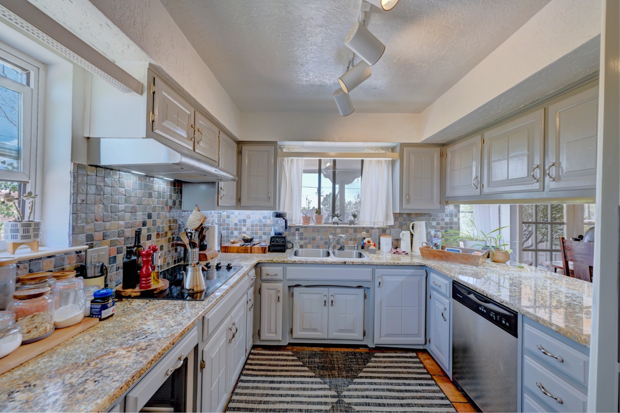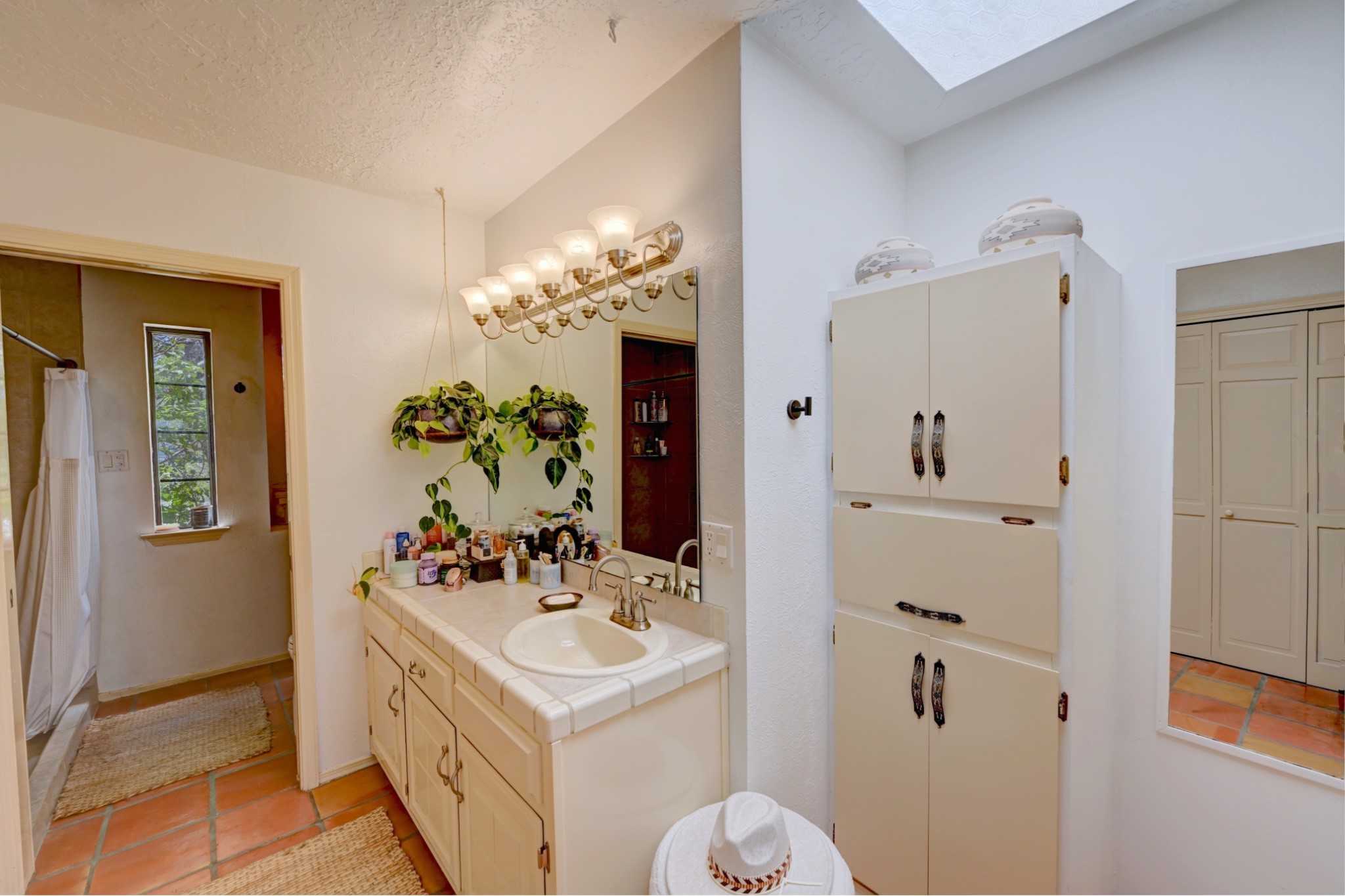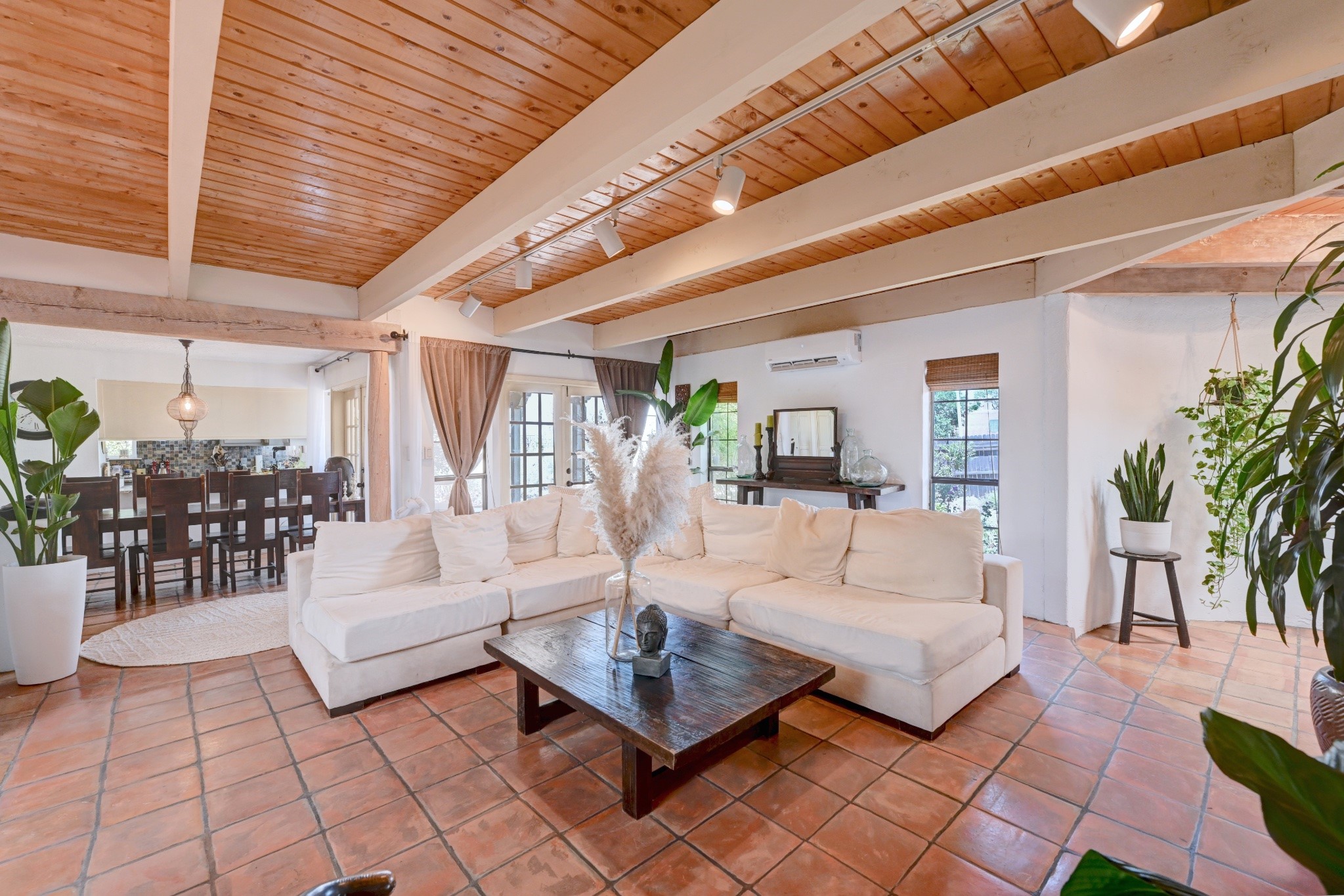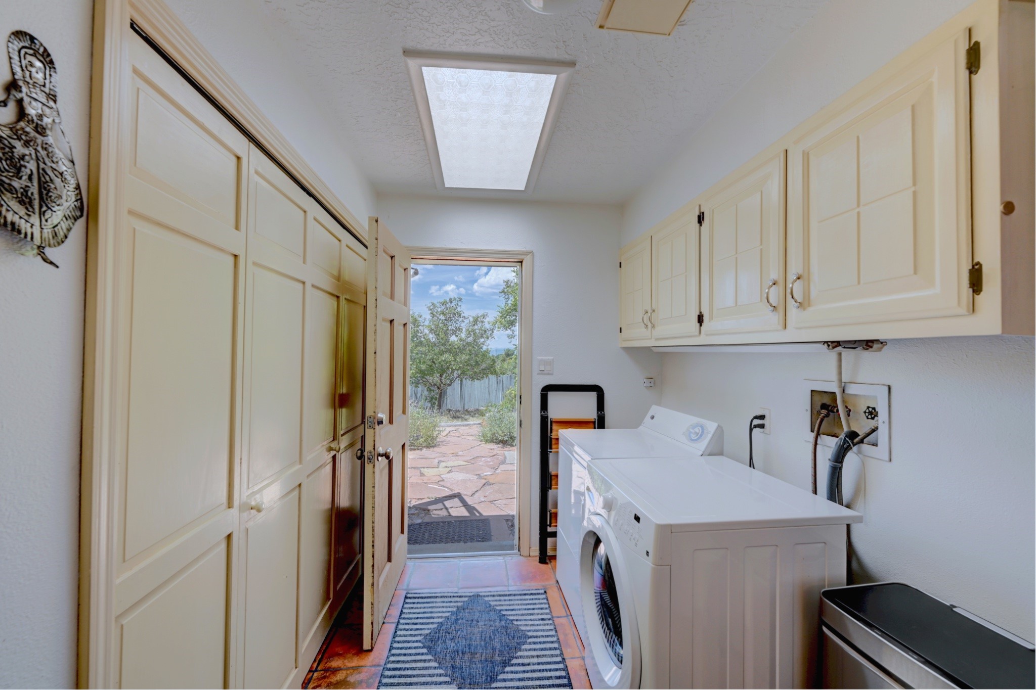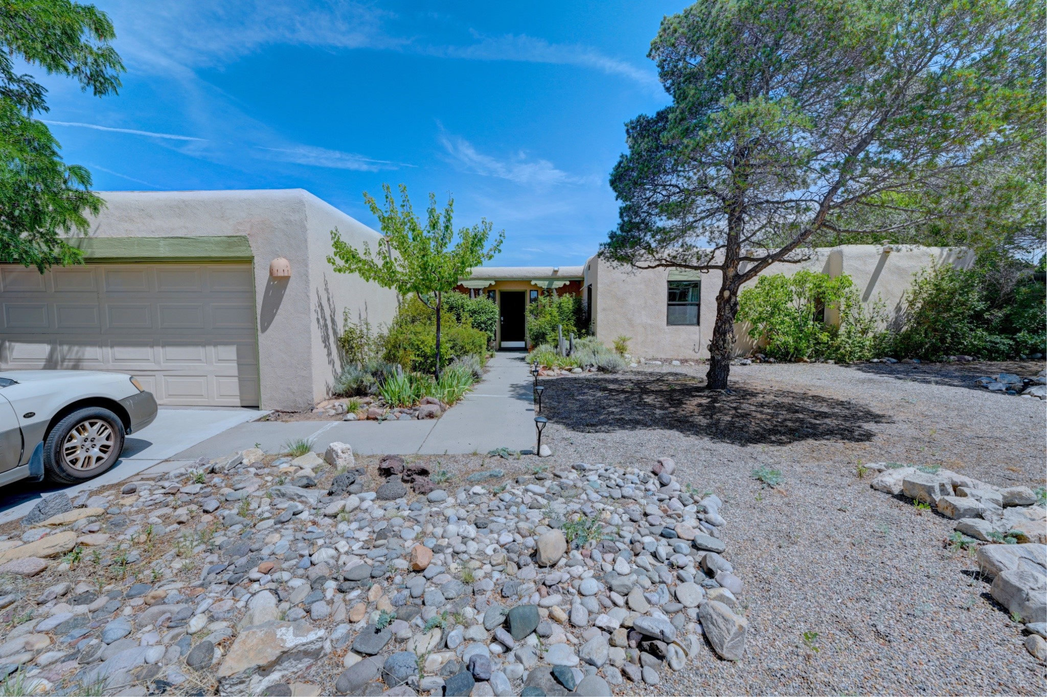 Discover the perfect blend of Southwestern charm and modern convenience in this captivating 3-bedroom, 3-bathroom home spanning 2,376 square feet. This Santa Fe gem welcomes you with authentic Saltillo tiles and stunning exposed ceiling beams that create an atmosphere of rustic elegance throughout.The heart of the home features a beautiful Kiva-style fireplace with its own intimate sitting area, perfect for cozy evenings or entertaining guests. Stay comfortable year-round with five newly installed mini-split systems ensuring optimal climate control in every corner of your home.Recent upgrades include a new tankless water heater for endless hot water, a convenient garage door opener, and a completely redone driveway that enhances curb appeal. Two radon mitigation systems provide peace of mind with comprehensive coverage at both ends of the house.The generous lot offers ample outdoor space, including room for recreational vehicle parking - a rare find that adds tremendous value for adventure enthusiasts. The neighborhood perfectly balances tranquil residential living with urban convenience, placing you within walking distance of local shops and restaurants.Your daily commute is simplified with the Zia Road Rail Runner Station just minutes away, while El Paisano Supermarkets ensures grocery runs are quick and convenient. For outdoor recreation, Dr. Martin Luther King Jr. Park sits practically at your doorstep, offering green space for relaxation and activities.This thoughtfully maintained home combines authentic Santa Fe architectural elements with practical modern amenities, creating an ideal living environment in one of the city's most desirable neighborhoods.Don't forget to check out the 3-D virtual tour, as well as the drone flyover of the area.