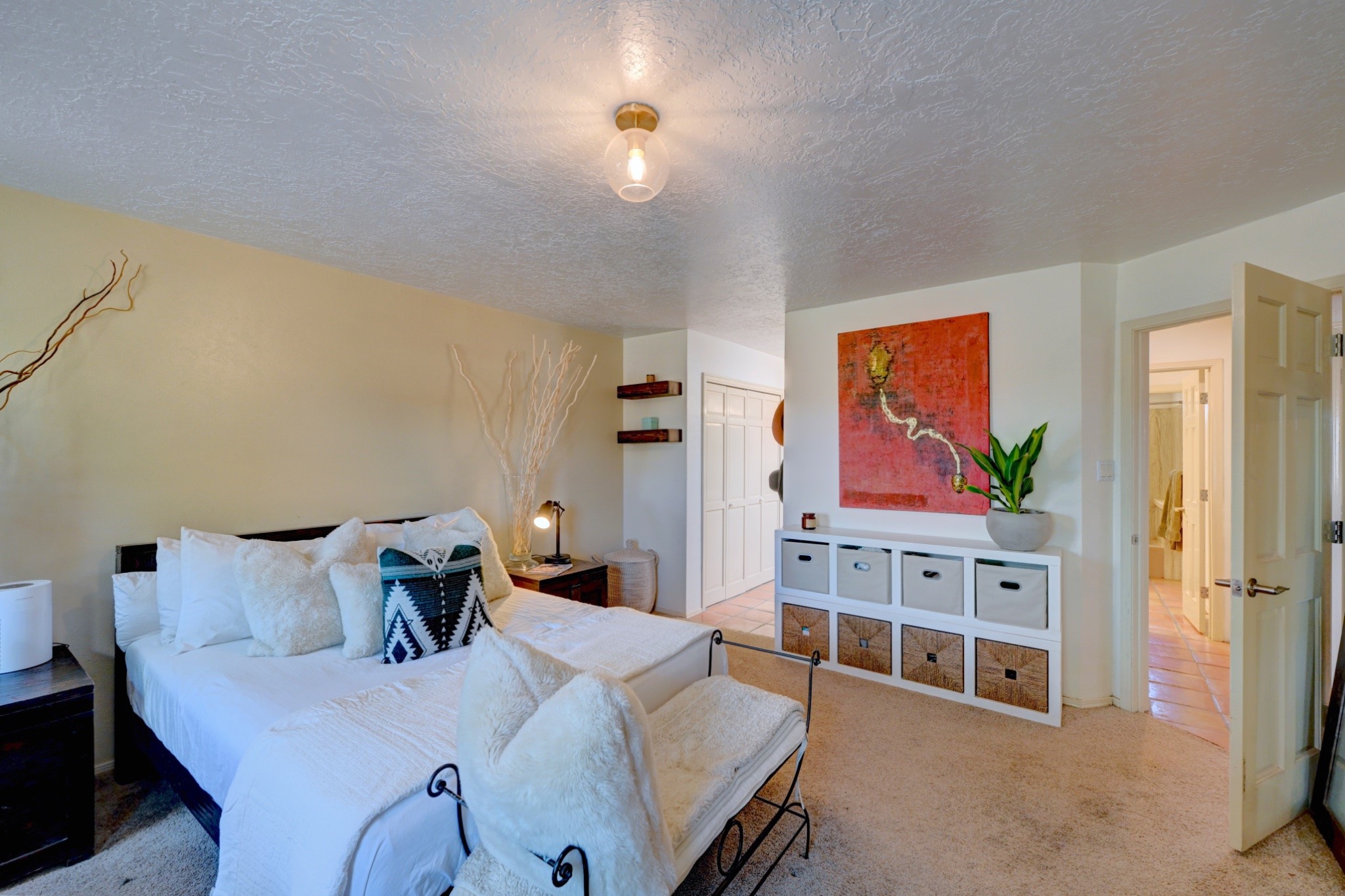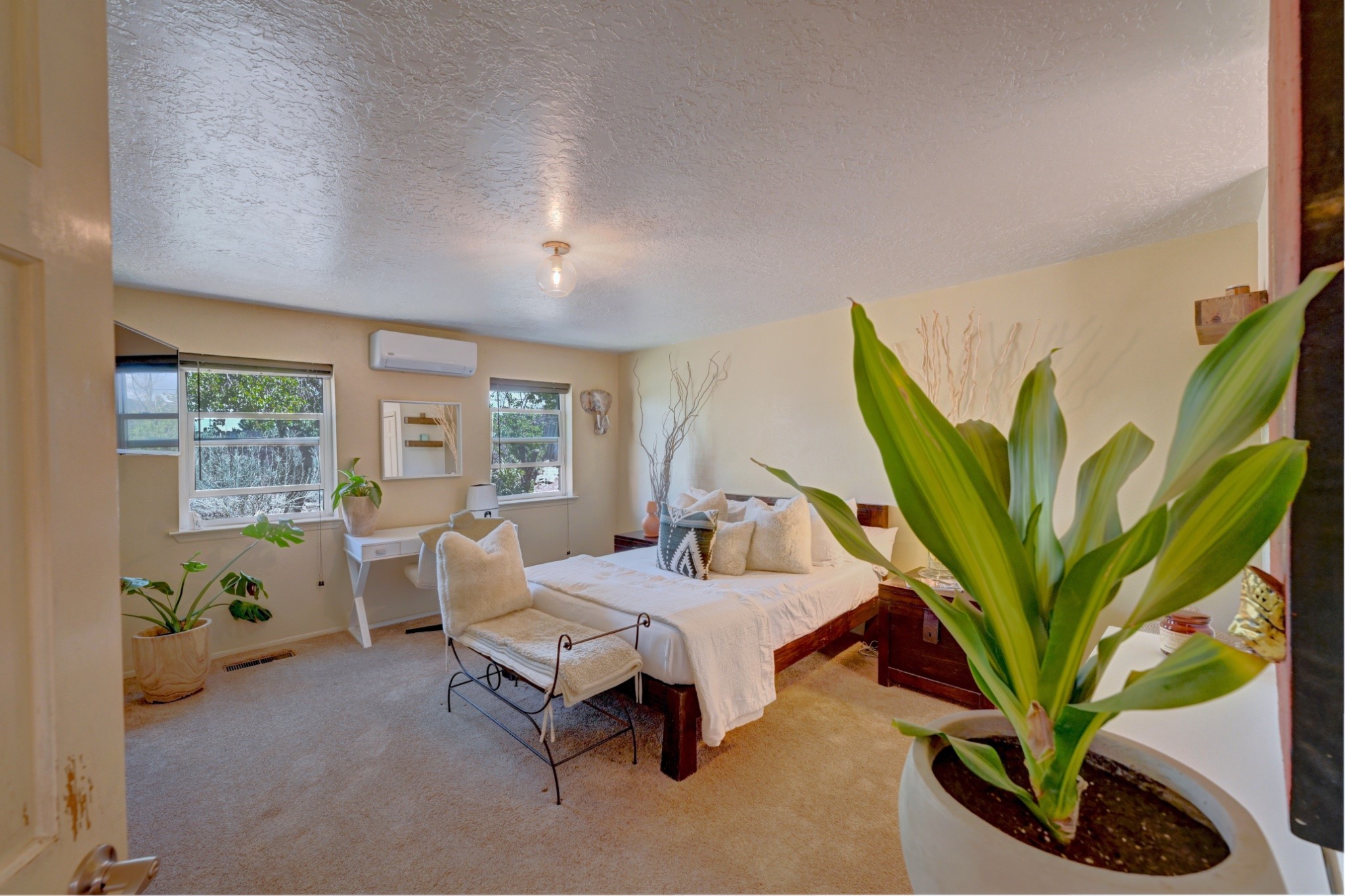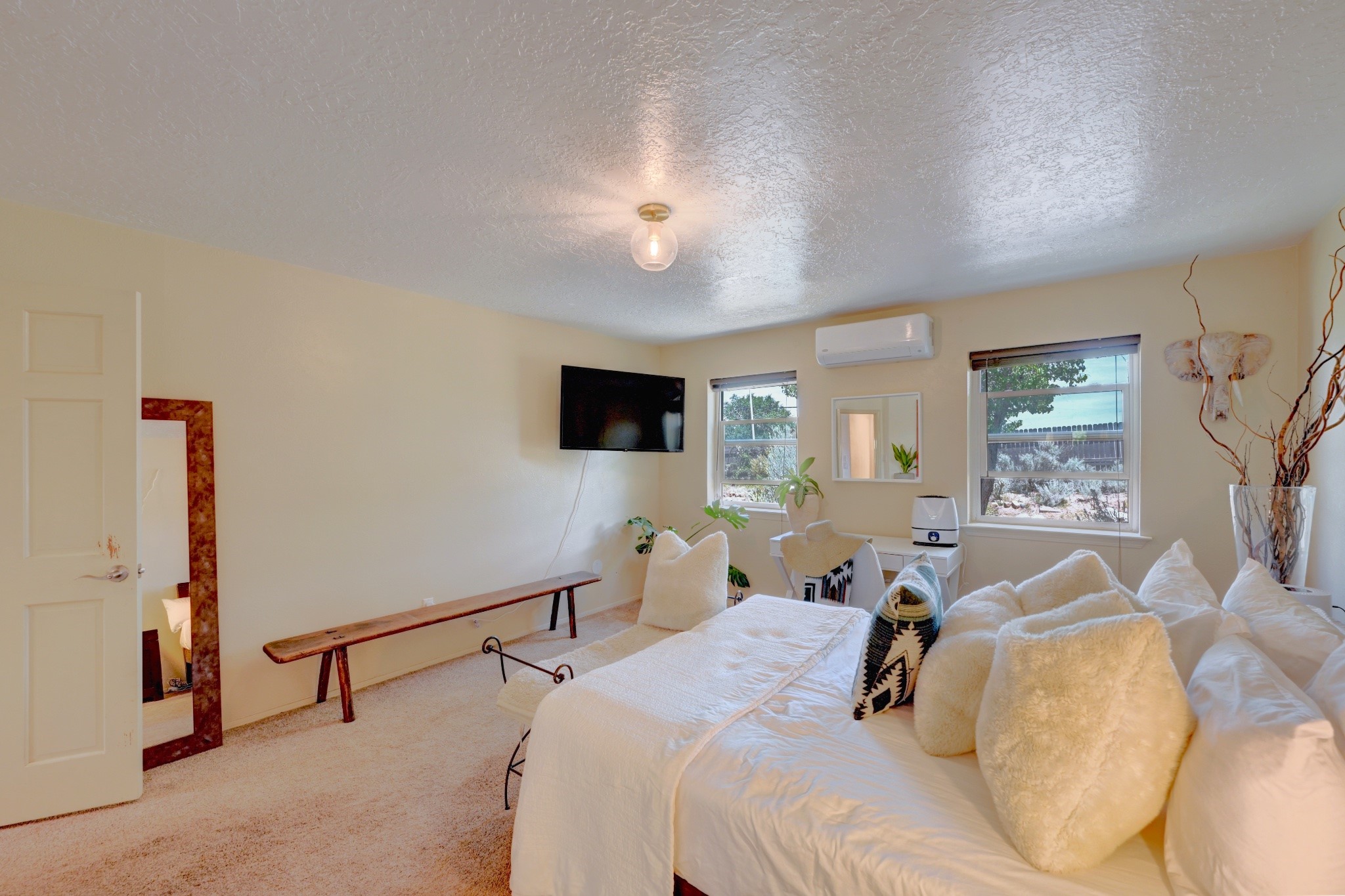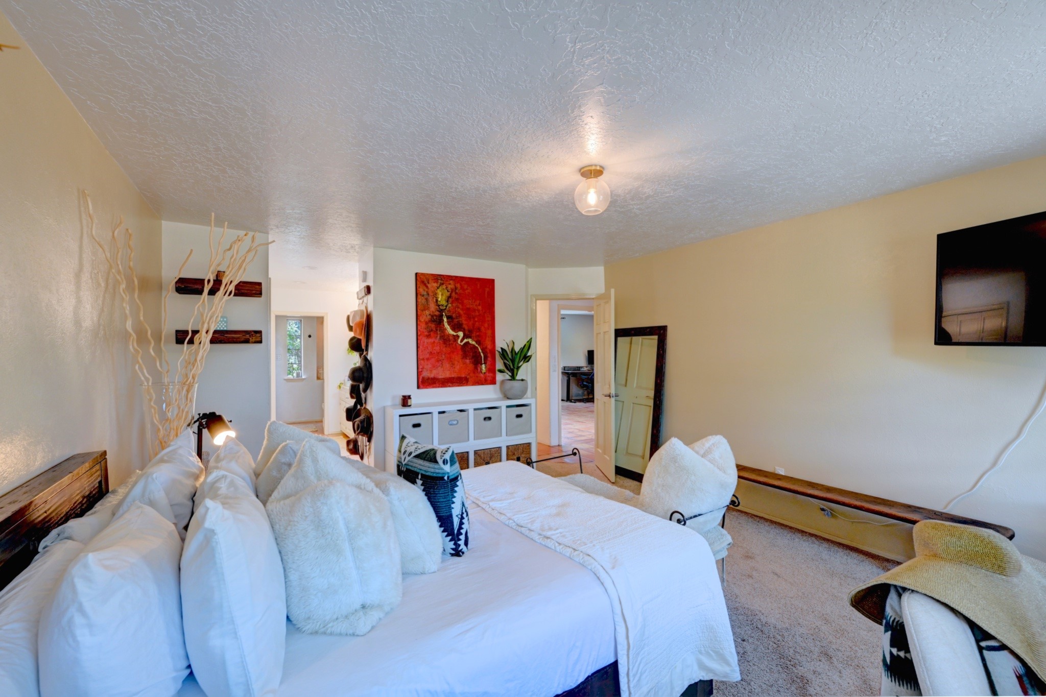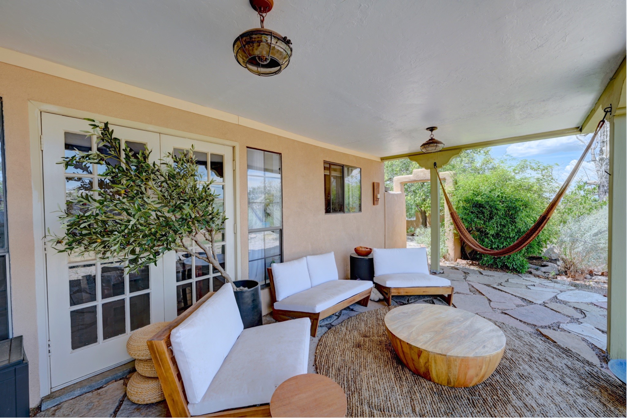 Discover the perfect blend of Southwestern charm and modern convenience in this captivating 3-bedroom, 3-bathroom home spanning 2,376 square feet. This Santa Fe gem welcomes you with authentic Saltillo tiles and stunning exposed ceiling beams that create an atmosphere of rustic elegance throughout.The heart of the home features a beautiful Kiva-style fireplace with its own intimate sitting area, perfect for cozy evenings or entertaining guests. Stay comfortable year-round with five newly installed mini-split systems ensuring optimal climate control in every corner of your home.Recent upgrades include a new tankless water heater for endless hot water, a convenient garage door opener, and a completely redone driveway that enhances curb appeal. Two radon mitigation systems provide peace of mind with comprehensive coverage at both ends of the house.The generous lot offers ample outdoor space, including room for recreational vehicle parking - a rare find that adds tremendous value for adventure enthusiasts. The neighborhood perfectly balances tranquil residential living with urban convenience, placing you within walking distance of local shops and restaurants.Your daily commute is simplified with the Zia Road Rail Runner Station just minutes away, while El Paisano Supermarkets ensures grocery runs are quick and convenient. For outdoor recreation, Dr. Martin Luther King Jr. Park sits practically at your doorstep, offering green space for relaxation and activities.This thoughtfully maintained home combines authentic Santa Fe architectural elements with practical modern amenities, creating an ideal living environment in one of the city's most desirable neighborhoods.Don't forget to check out the 3-D virtual tour, as well as the drone flyover of the area.