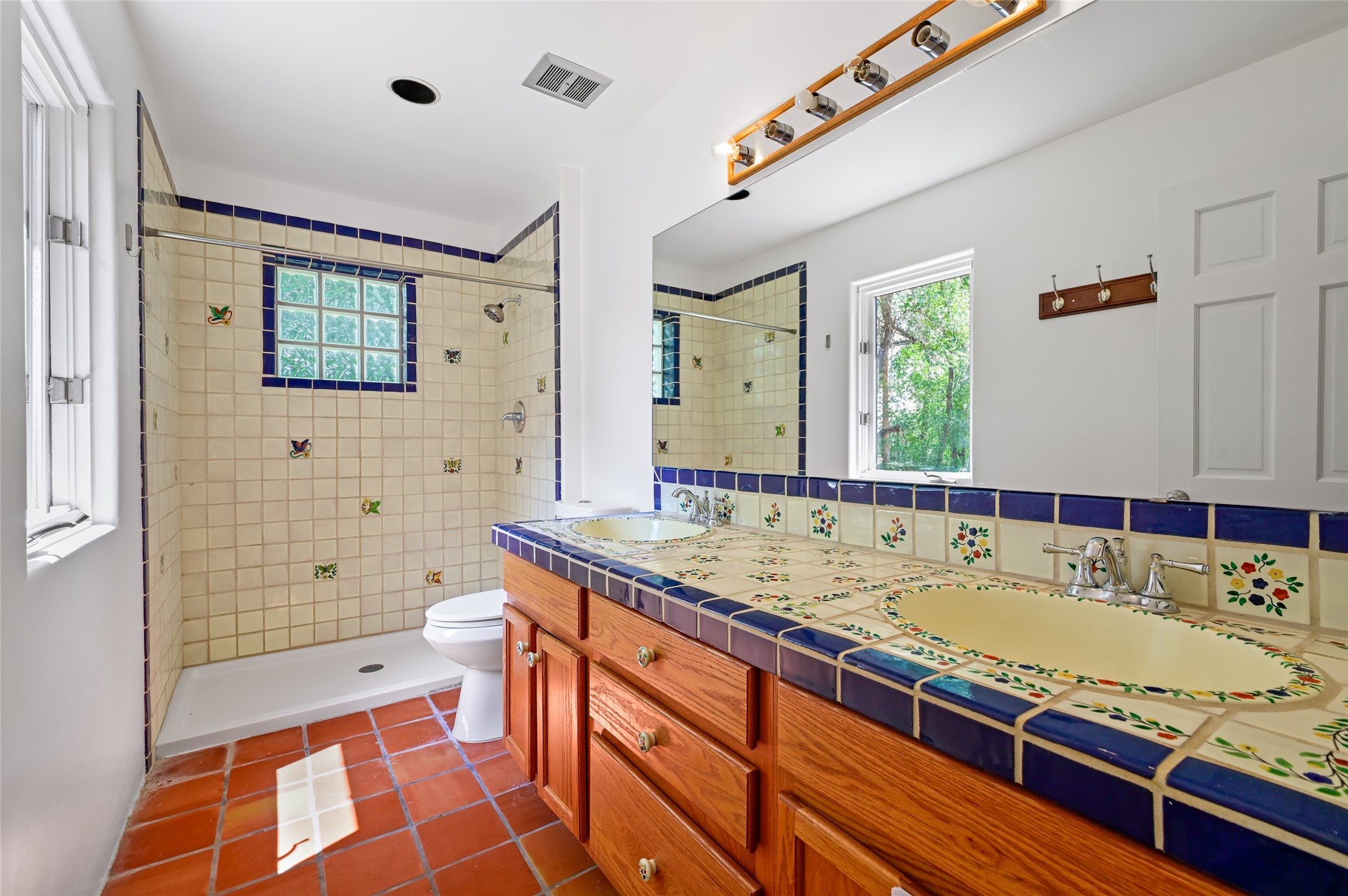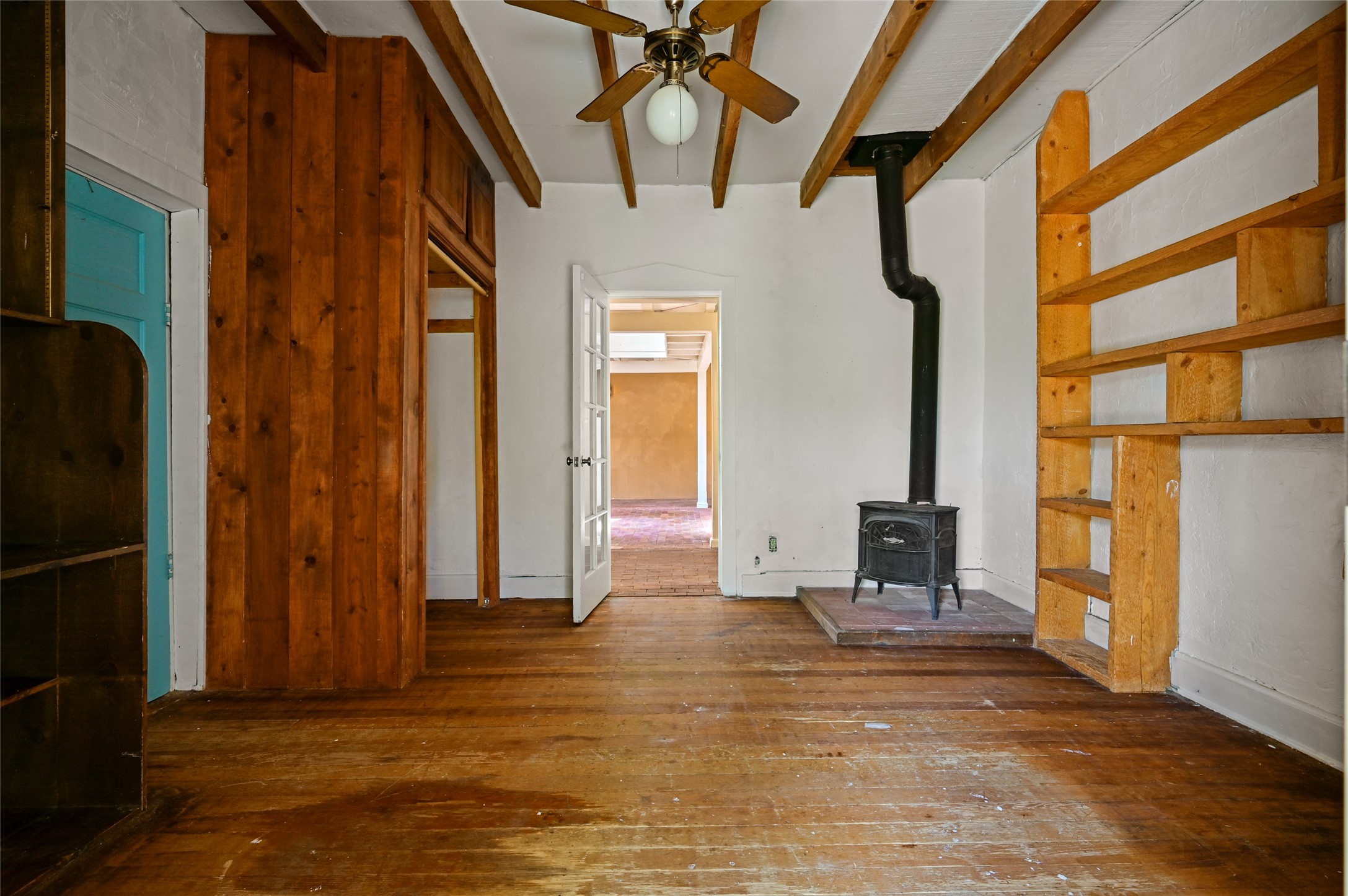 Back on the market, no fault of the seller. Now at a new price! Exceptional opportunity to own a traditional adobe home in Namb with endless potential. Originally built in the 1920s with a thoughtful addition in the 1990s, this partial adobe blends historic character with spacious design. The dramatic great room boasts vaulted ceilings, beam trusses, skylights, and a large fireplace. Two bedrooms, two baths, a sunroom, and a distinctive shower bath with jacuzzi offer unique spaces ready for your vision. While some areas require renovation, this property is an ideal canvas for creating a truly one-of-a-kind Northern New Mexico retreat. Sold as is.