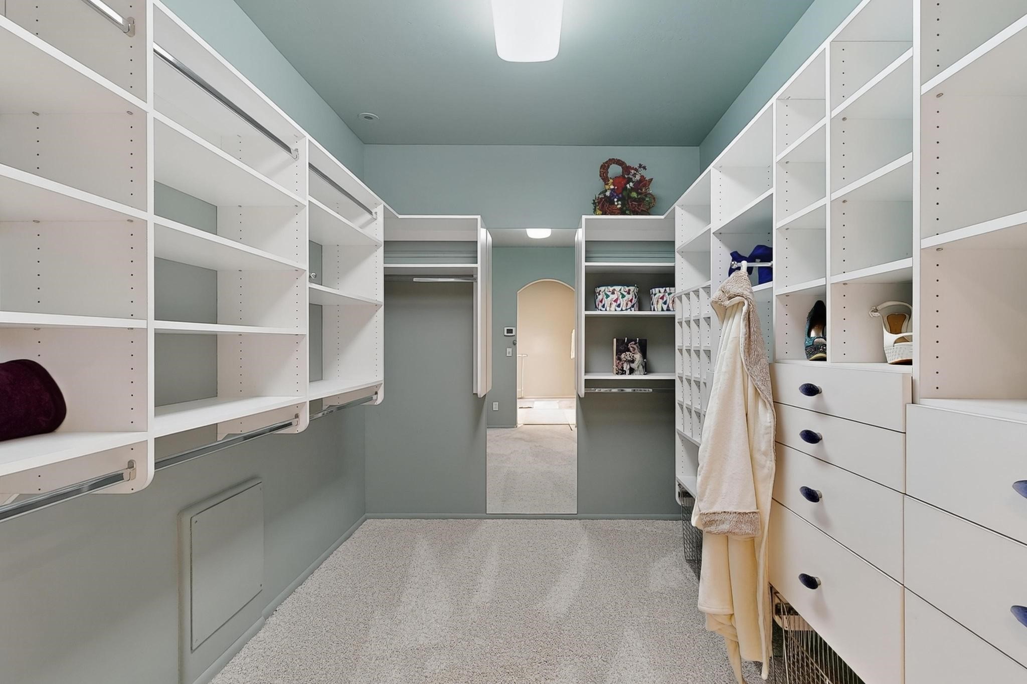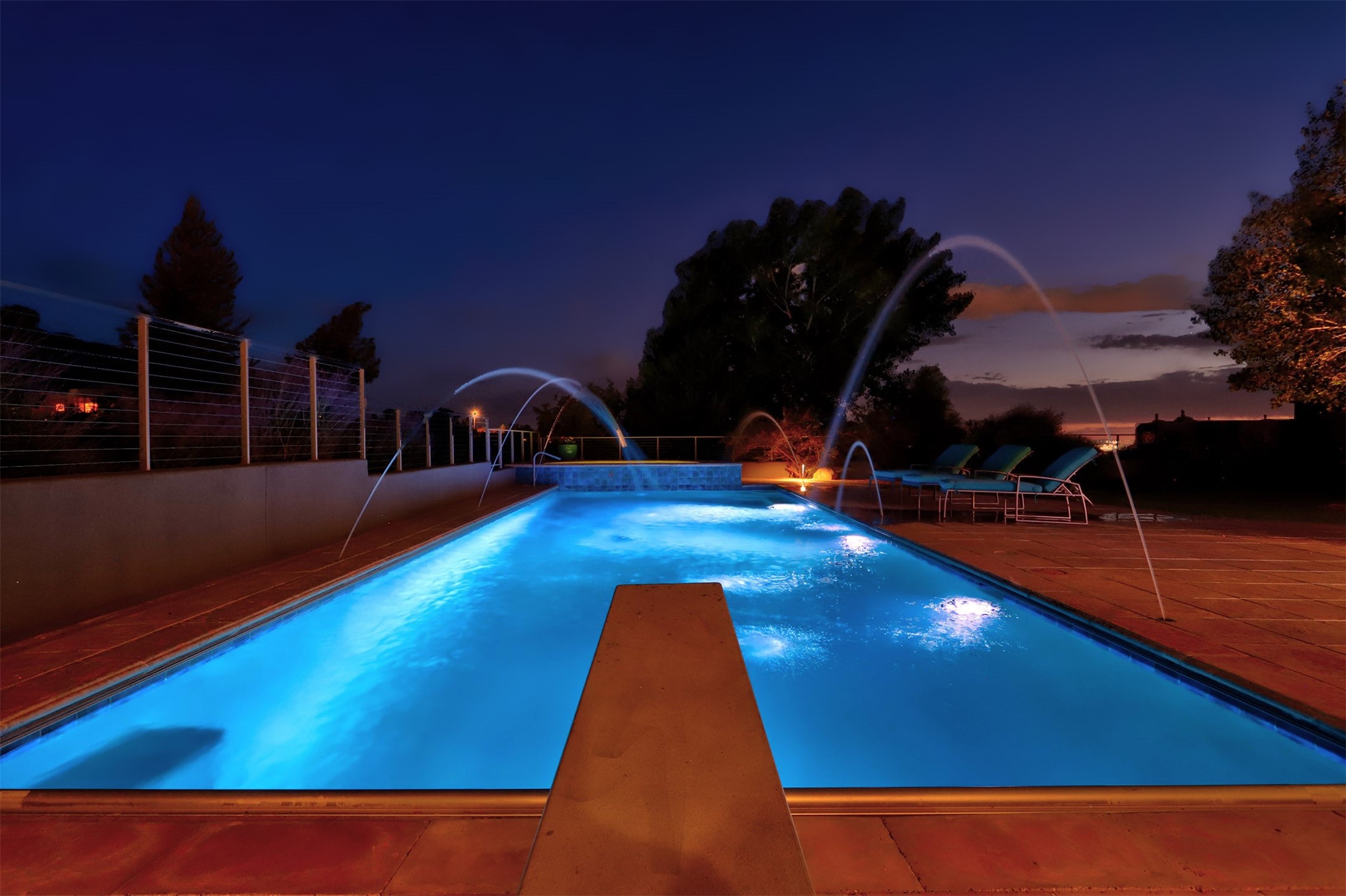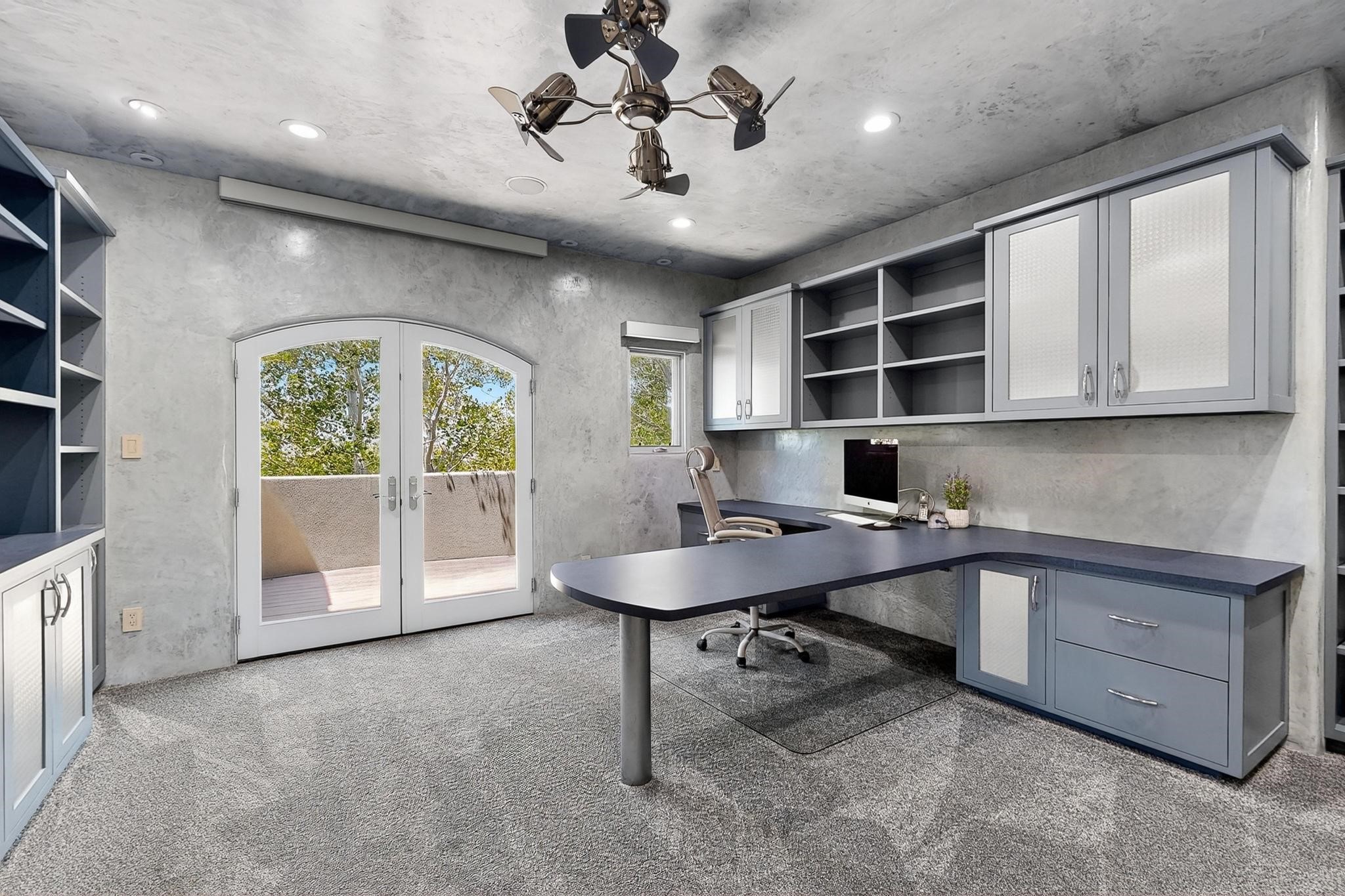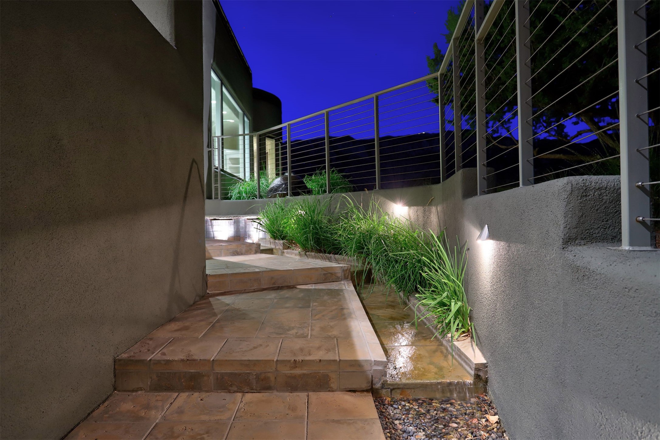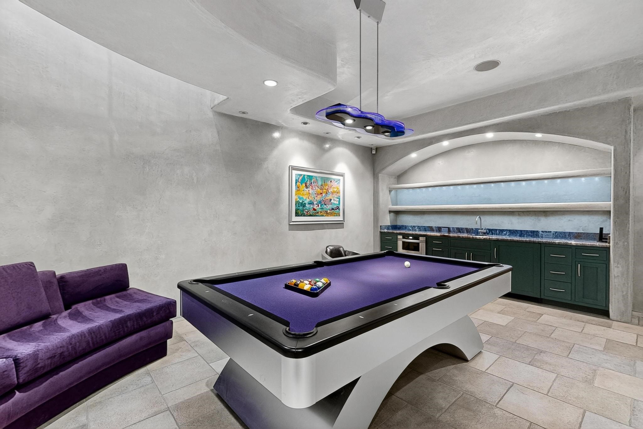 Perched at the pinnacle of High Desert, this extraordinary Custom Built luxury home sits on a private 2.37 acres lot and offers National Forest Views, unmatched privacy, and masterful design throughout. With 4 dedicated bedrooms, including a self-contained guest suite, plus two flexible rooms perfect for a home office and craft space, this home blends spacious living with thoughtful functionality. As you approach the home, you're greeted by an elegant water feature that flows beside a custom fire pit, creating a stunning and serene entry experience that sets the tone for the rest of the property. Bedrooms/Office all have window and balcony views. creating indoor-outdoor living and maximizing the incredible vistas. Designed for both elegance and practicality. Designed for both elegance and practicality, the home features 8 bathrooms (including 3 half baths and 2 three-quarter baths) and is adorned with hand-applied plaster walls by Frank D'Angelico that lend warmth and sophistication. The floor plan was thoughtfully crafted to provide ample wall space for showcasing art, ideal for collectors and design enthusiasts. Enjoy a dedicated theater room with a custom star ceiling designed to replicate a starry Albuquerque night in September, offering a truly immersive cinematic experience. Outside, a private pool serves as a tranquil escape, featuring an automatic cover and custom water features, including a bespoke downspout inspired by European spa architecture all operable at the touch of a button. Separate pool rooms provide convenient storage for pool toys and house the mechanical equipment. Comfort meets control with radiant floor heating and five refrigerated cooling units, all designed for efficiency and luxury. Each bedroom has independent climate controls, allowing for personalized heating and cooling throughout the home. A built-in, bank-grade safe offers secure storage for your most valuable possessions, while the chef's kitchen is outfitted with premium Wolf and Sub-Zero appliances, making it a culinary dream. From its elevated position with sweeping panoramic views to its impeccable craftsmanship and resort-style amenities, this is truly one of High Desert's most distinguished homes.