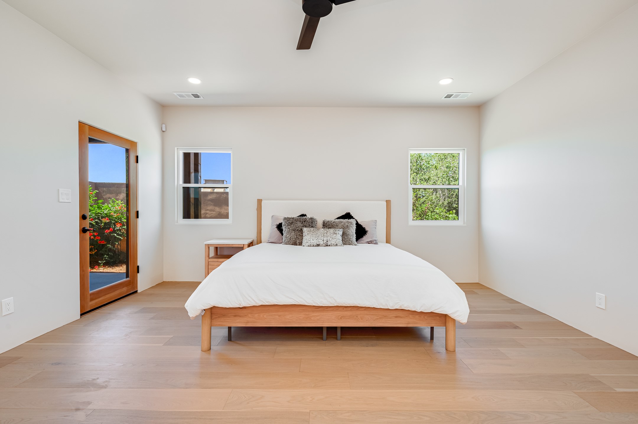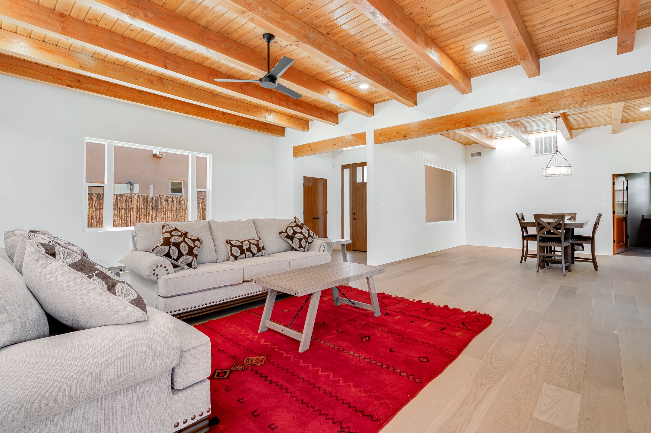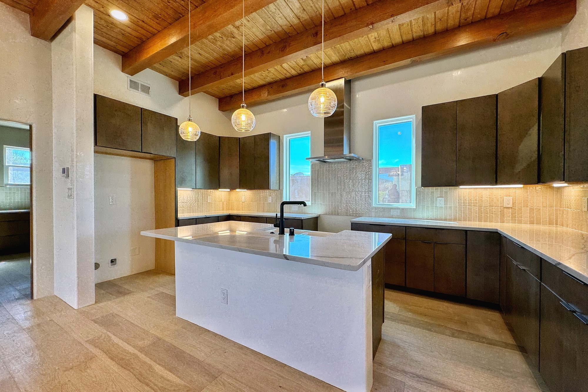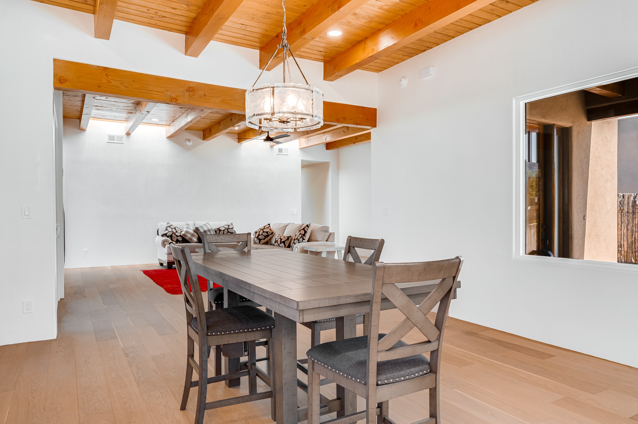 Crafted by Borrego Construction, this home exudes a blend of inviting elegance and modern flair. Boasting 3 bedrooms and 2 baths, it offers luxury amenities and a seamless open floor layout. Delight in Venetian Plaster accents, a lavish master suite with a spacious walk-in closet, an expansive shower and exquisite tile finishes. The living space features a gas linear fireplace, visible from both indoors and outdoors. Situated in the coveted Plaza Bonita neighborhood. This property offers convenience with it's proximity to the hospital and shopping amenities. Enjoy the sought-after lifestyle in Santa Fe's Plaza Bonita enclave.