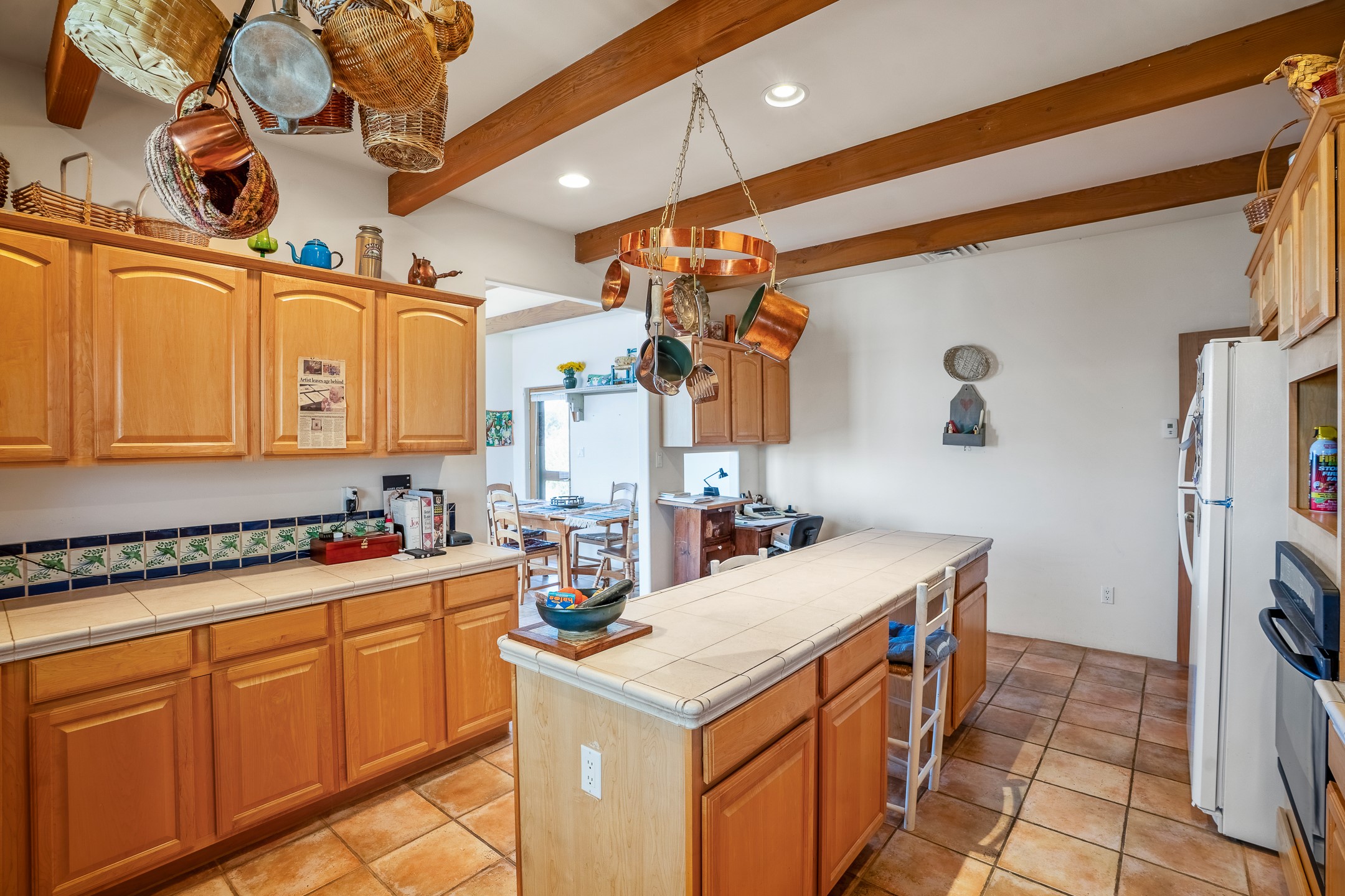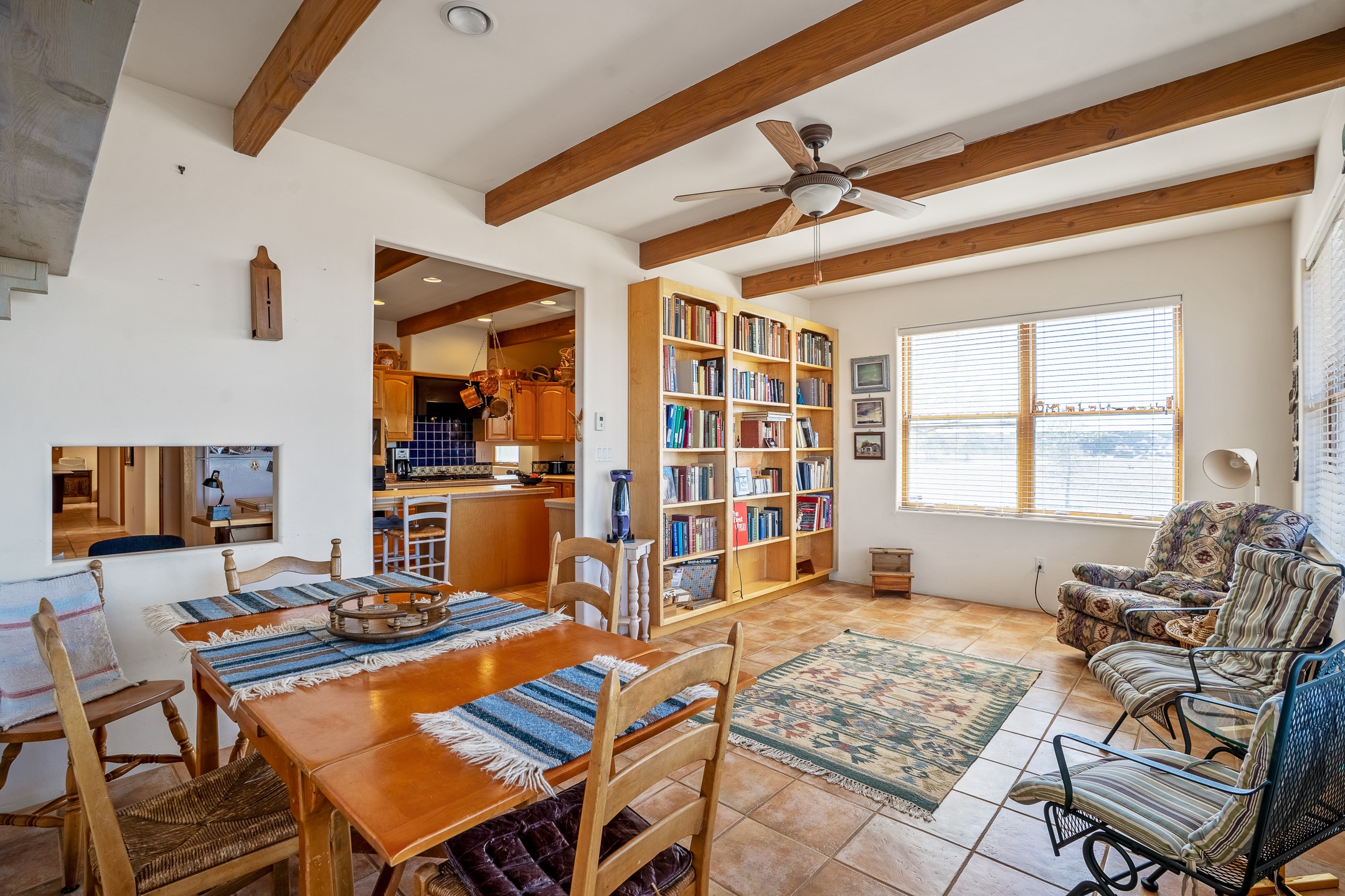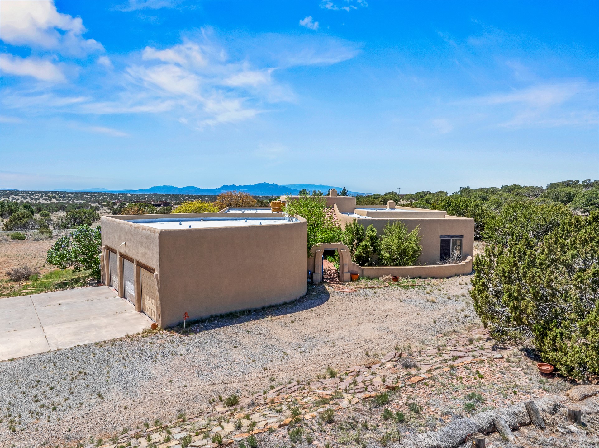 Welcome to Tierra de Casta, where spacious living meets breathtaking beauty! On five acres, with all the room you could ever desire to breathe, relax, and simply be. Step inside this homey residence, boasting over 4000 square feet of well designed space. From the moment you enter, you'll be captivated by the comfortable feeling of large rooms and soaring ceilings, all adorned with fine finishes that speak to a true sense of quality living. Prepare to be enchanted by the primary suite - it's a true sanctuary! Cozy evenings by the Kiva fireplace, with the rustic charm of vigas and tongue and groove ceilings adding a touch of authentic Southwestern warmth. The luxury bath invites you to unwind, whether you choose a soothing soak in the Jacuzzi tub or a refreshing rinse in the separate shower. Two additional generously sized bedrooms, each with its own ensuite bath, provide comfort and privacy for family or guests. Plus, a wonderfully large den, office, or library or another bedroom awaits your inspiration - for work, study, or simply curling up with a good book. The heart of the home, the great room, is truly something special. It offers breathtaking western views. From here, you have direct access to the formal dining room, where a beautifully stamped tin ceiling adds a unique and elegant touch to your gatherings. The well-appointed kitchen, featuring a spacious island, is ready for all your culinary adventures. And don't forget the sunroom! It's a cheerful spot with easy access to the rear portal, perfect for enjoying your morning coffee or evening refreshments in the fresh air. If you've been searching for a place with ample space to live, entertain, and create lasting memories, look no further. This home truly has all you need and so much more. Welcome to Tierra de Casta - we're so happy to have you!