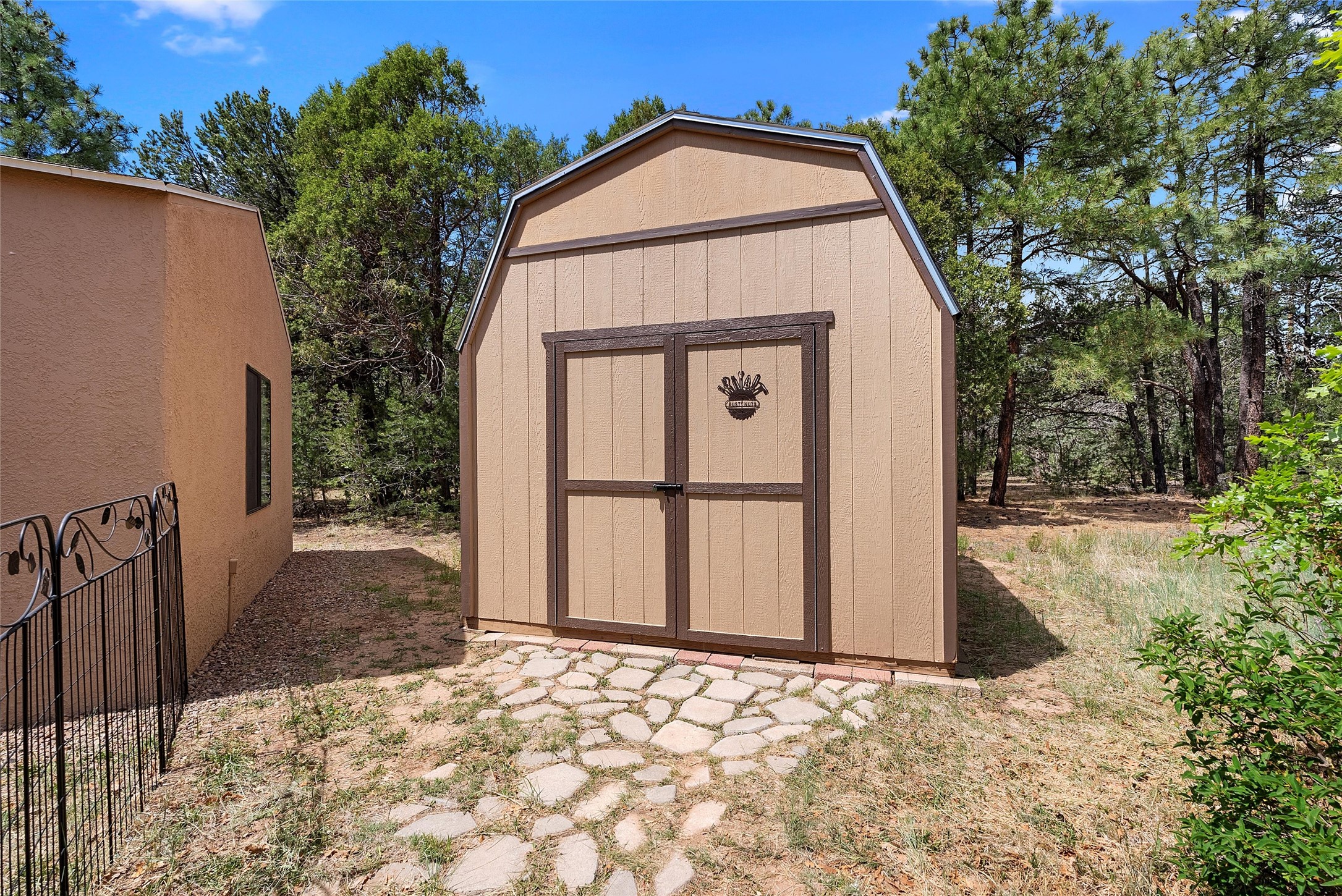 UNLIKE ANYTHING ELSE IN THE EAST MOUNTAINS, THIS EXPANSIVE TIJERAS HORSE PROPERTY IS A WORLD OF ITS OWN. Tucked into over four wooded and meadowed acres, it offers a rare blend of space, privacy, and versatility with three distinct residences. The 2-story dome house features exposed beams, tile floors, two fireplaces, and a charming country kitchen. Imagine sitting out on the open patio with 360 degrees of nature. The cozy casita is a perfect studio or guest house, while the spacious cottage--with its open layout, concrete floors, wood stove, and walk-in closet--adds even more flexibility for multi-generational living. A pole barn, detached garage, workshop, plenty of room of animals and toys. Furniture and tools convey--bring your vision and make this one your perfect mountain retreat!