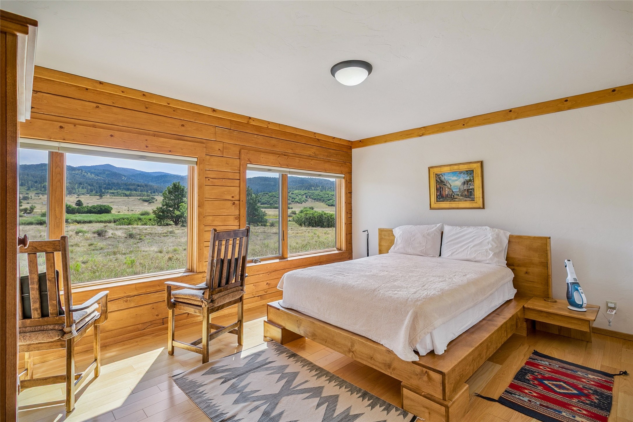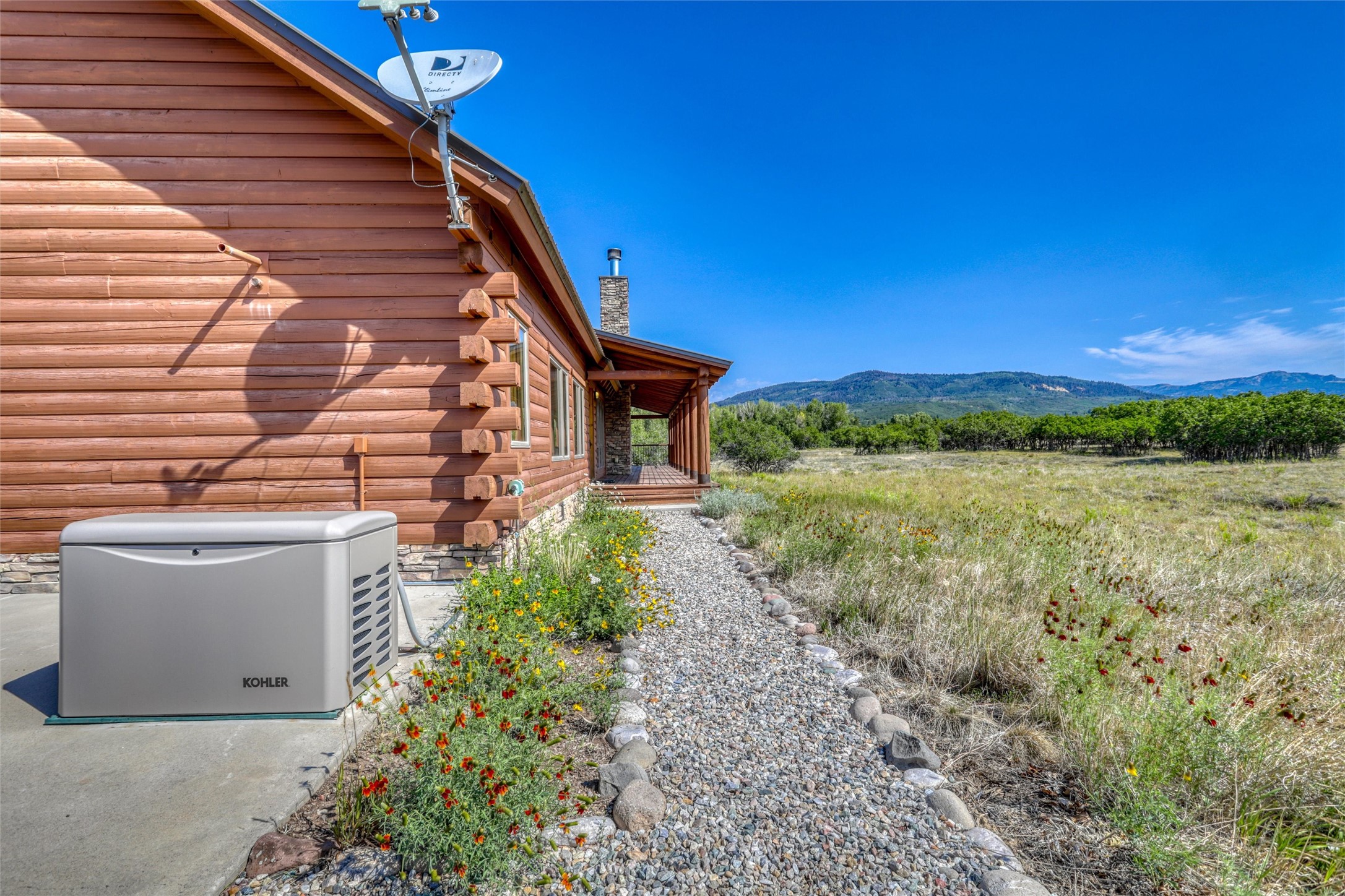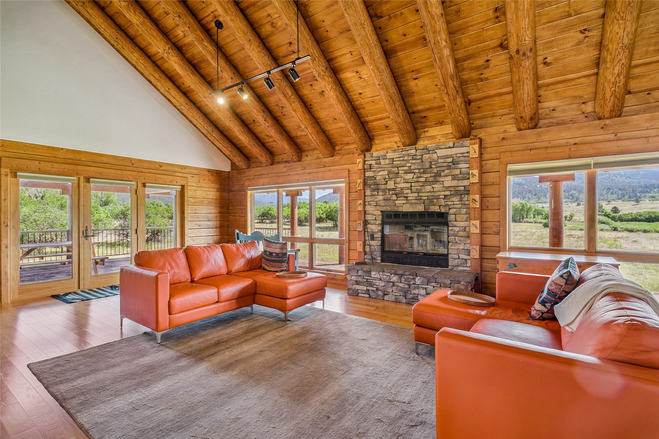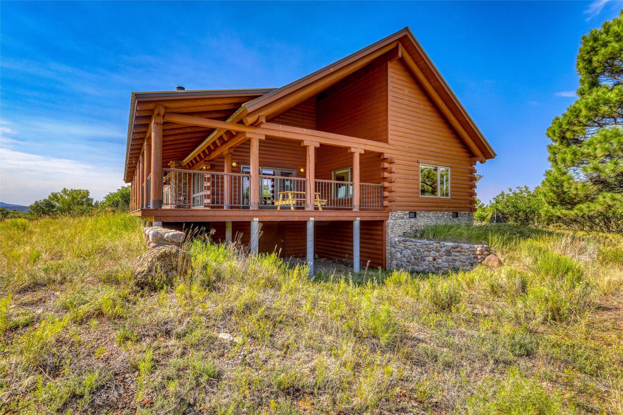 Located north of the Village of Chama, this 24.6 acres has Chama River Frontage on the west, the Cumbres and Toltec Scenic Railroad tracks on the east and it borders a large ranch holding (RDOP) on the north. The property is 2 levels with approximately 12 acres on the upper portion where the house is located and approximately 12.6 acres in the flood plain along the Chama River. Enjoy the amazing views from the covered decks of the spacious and thoughtfully designed D Log home or head down the path to the shade of the cottonwoods along the river. The main floor of the house has an open concept living and kitchen area, 2 bedrooms, 2 bathrooms and attached 2 car garage with laundry facilities. The upstairs is an open loft area, great for overflow company, office or hobby space. The main bedroom has a large walk in closet, an en suite bathroom, complete with a steam shower and soaking tub. The house has in-floor heat and a wood burning fireplace for the chilly winter nights. During the summer, the train departs the train station in Chama around 10am and heads north along the property boundary and returns in the afternoons around 4pm. This is a private location, perfect for the buyer who is looking for a self sustaining property where trout fishing is just down the hill and everything is powered by solar or generator power.