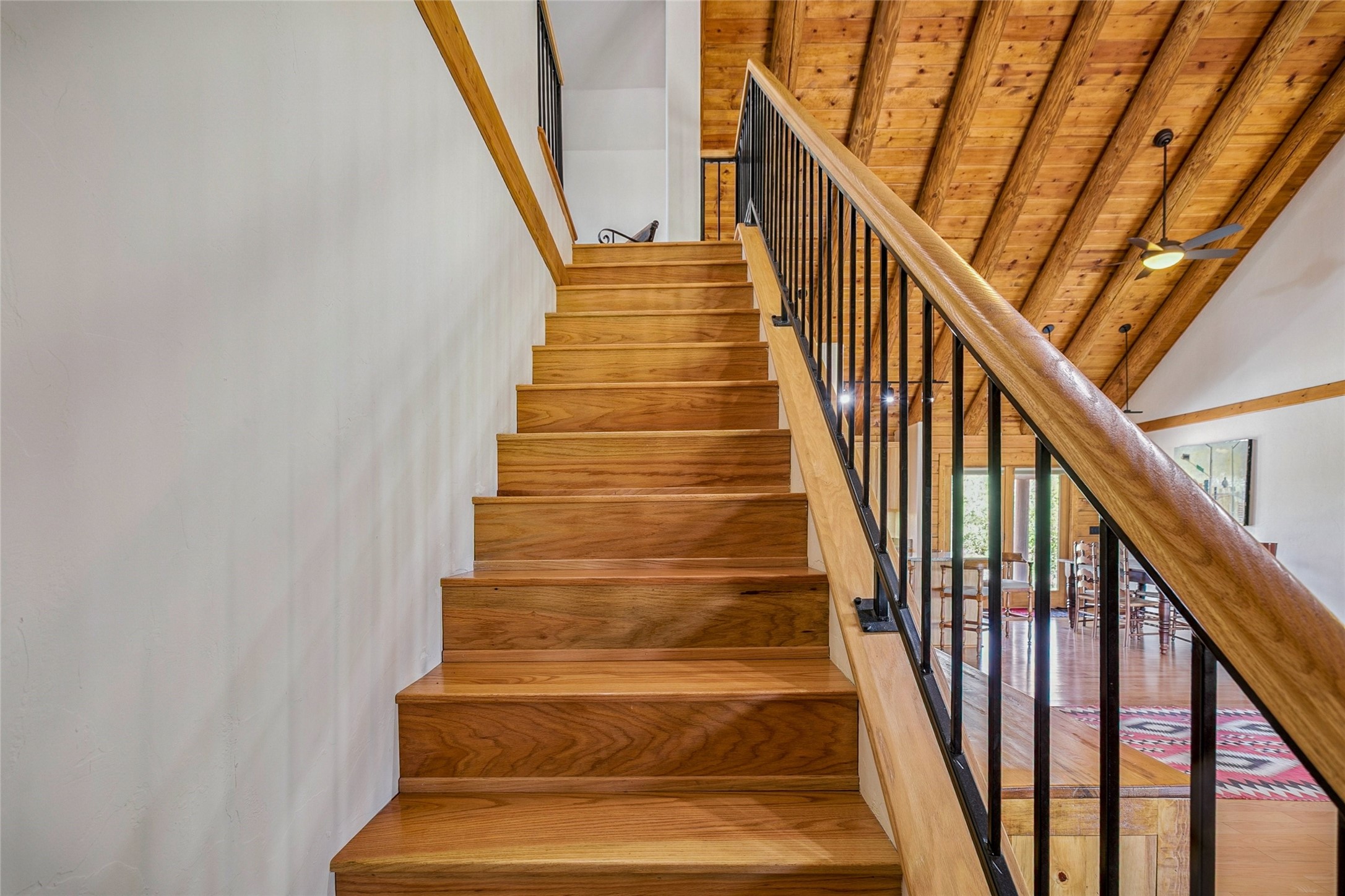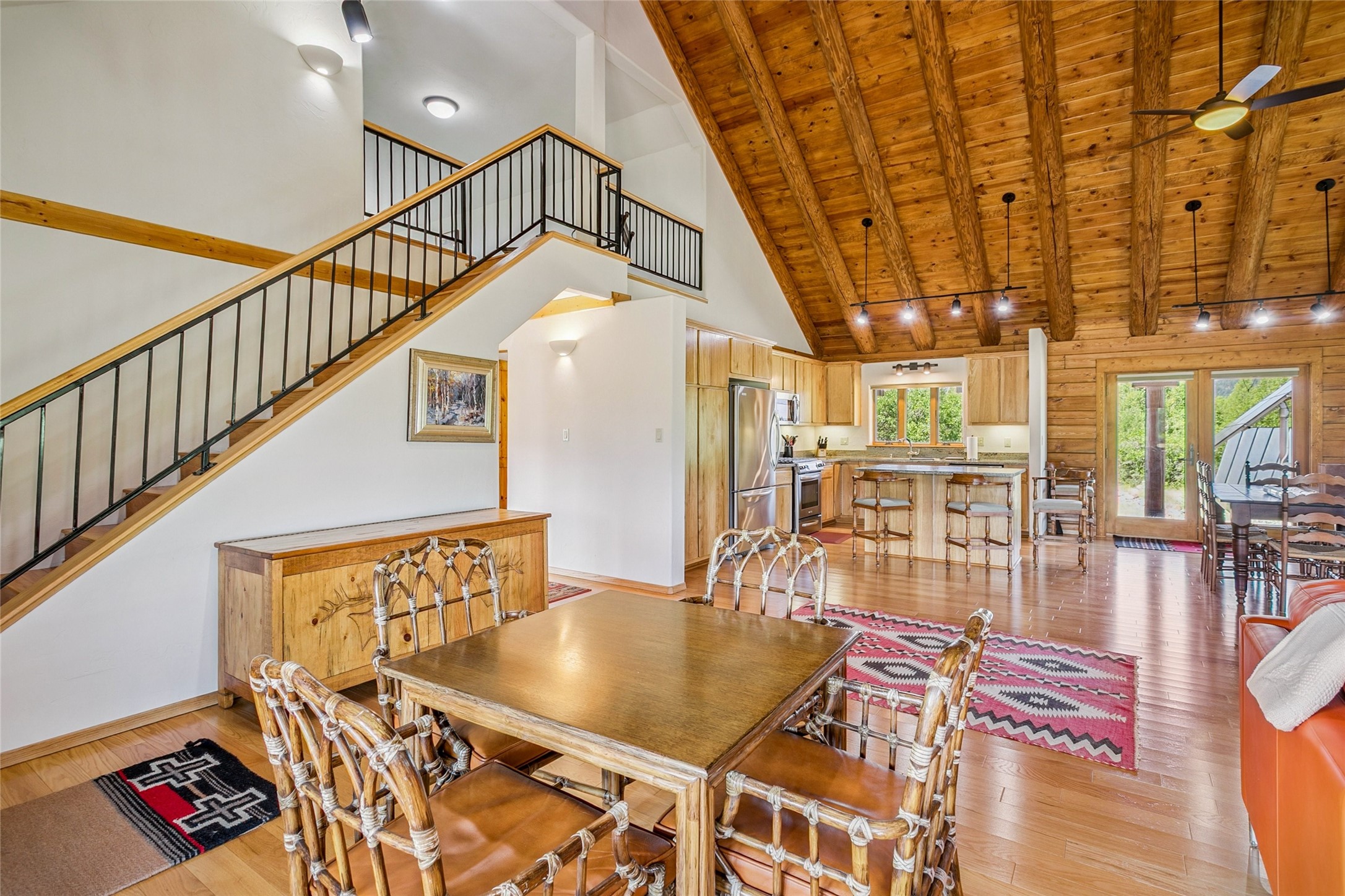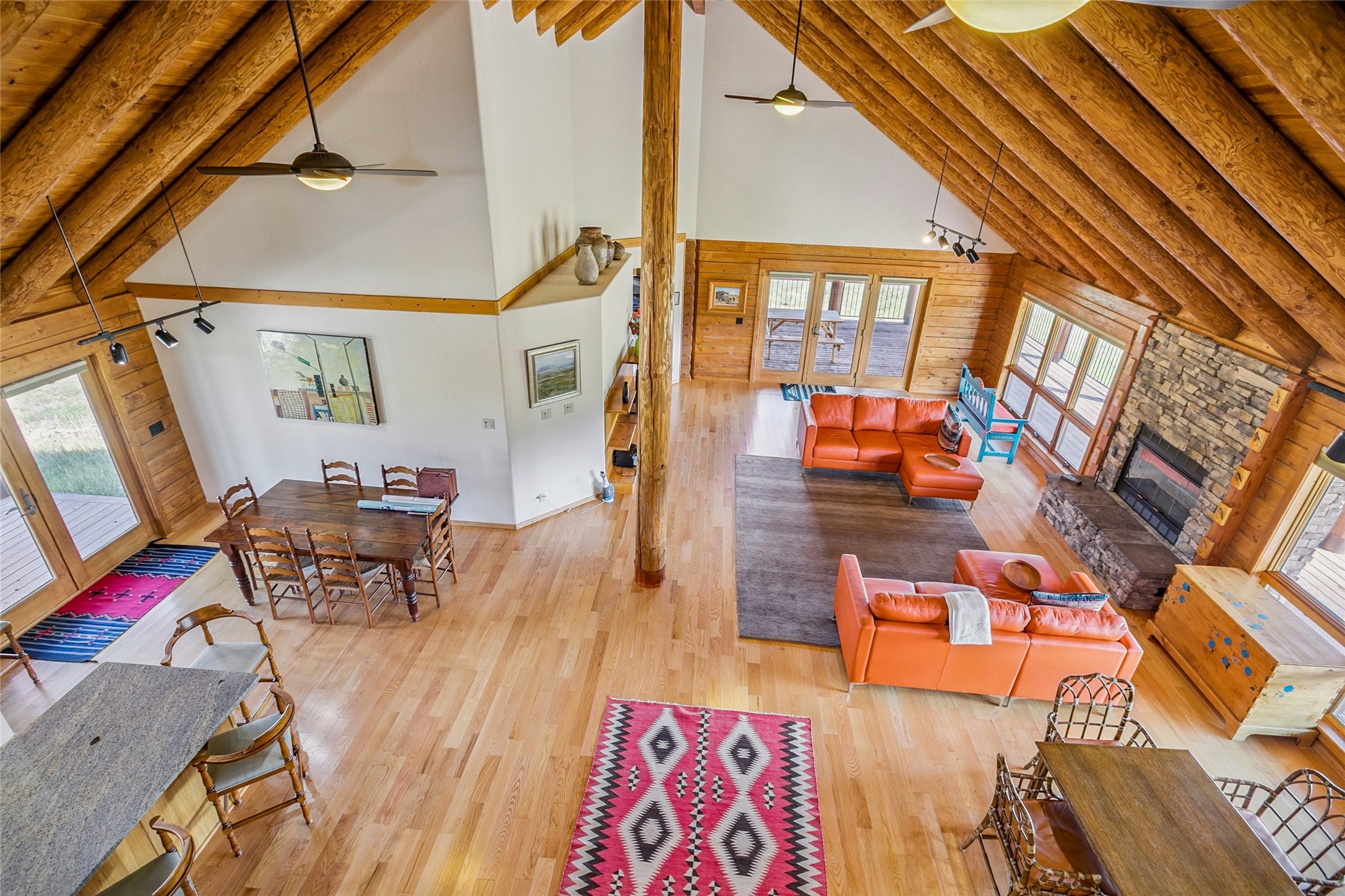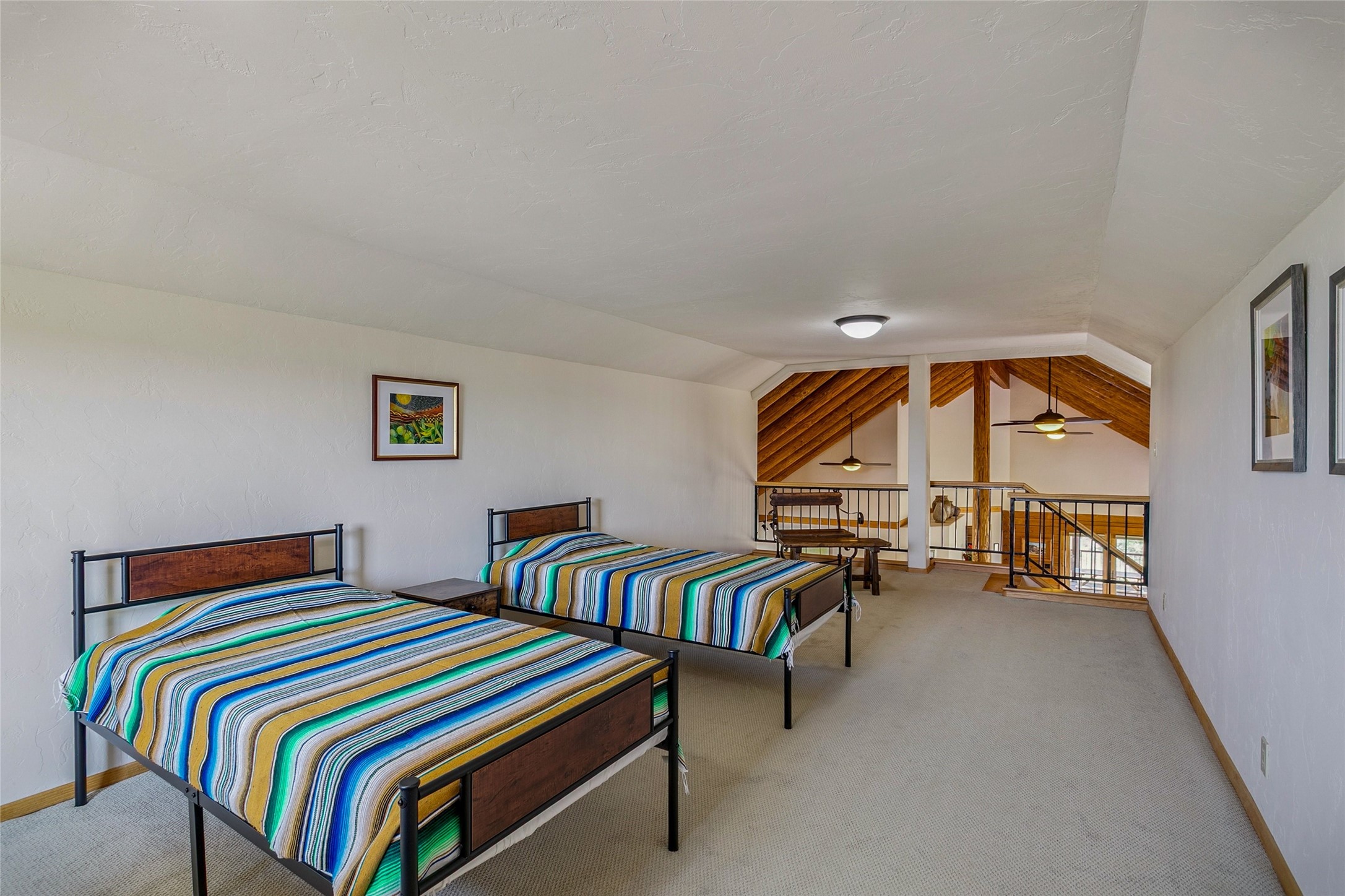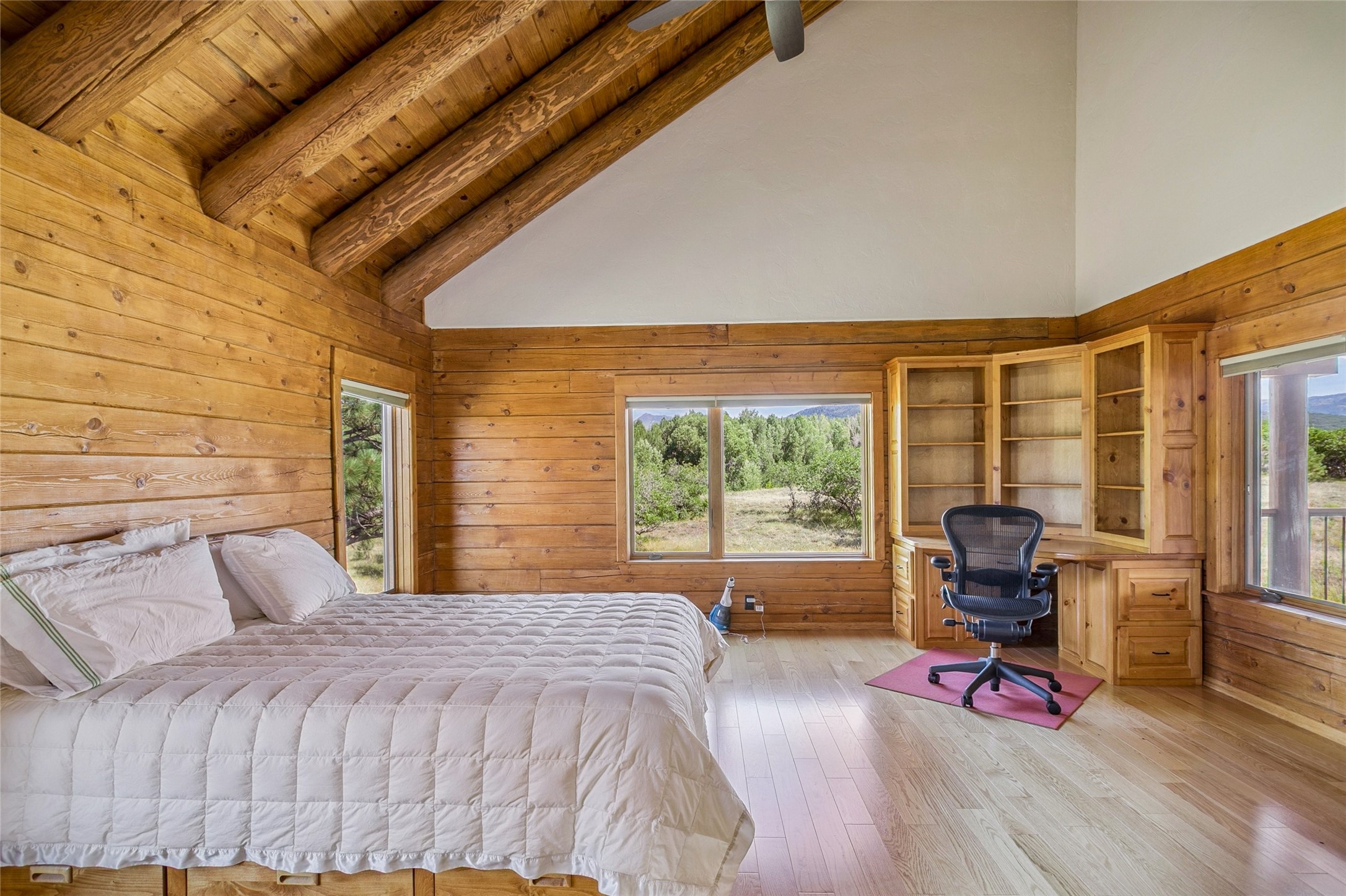 Located north of the Village of Chama, this 24.6 acres has Chama River Frontage on the west, the Cumbres and Toltec Scenic Railroad tracks on the east and it borders a large ranch holding (RDOP) on the north. The property is 2 levels with approximately 12 acres on the upper portion where the house is located and approximately 12.6 acres in the flood plain along the Chama River. Enjoy the amazing views from the covered decks of the spacious and thoughtfully designed D Log home or head down the path to the shade of the cottonwoods along the river. The main floor of the house has an open concept living and kitchen area, 2 bedrooms, 2 bathrooms and attached 2 car garage with laundry facilities. The upstairs is an open loft area, great for overflow company, office or hobby space. The main bedroom has a large walk in closet, an en suite bathroom, complete with a steam shower and soaking tub. The house has in-floor heat and a wood burning fireplace for the chilly winter nights. During the summer, the train departs the train station in Chama around 10am and heads north along the property boundary and returns in the afternoons around 4pm. This is a private location, perfect for the buyer who is looking for a self sustaining property where trout fishing is just down the hill and everything is powered by solar or generator power.