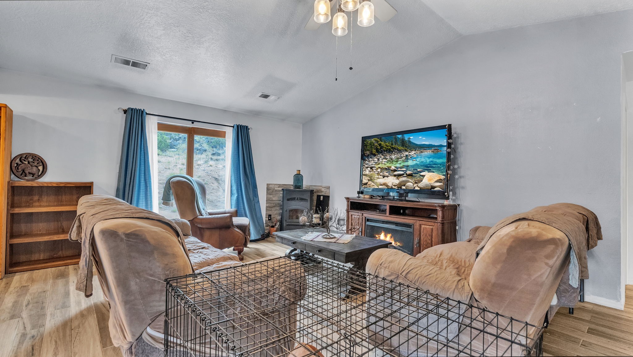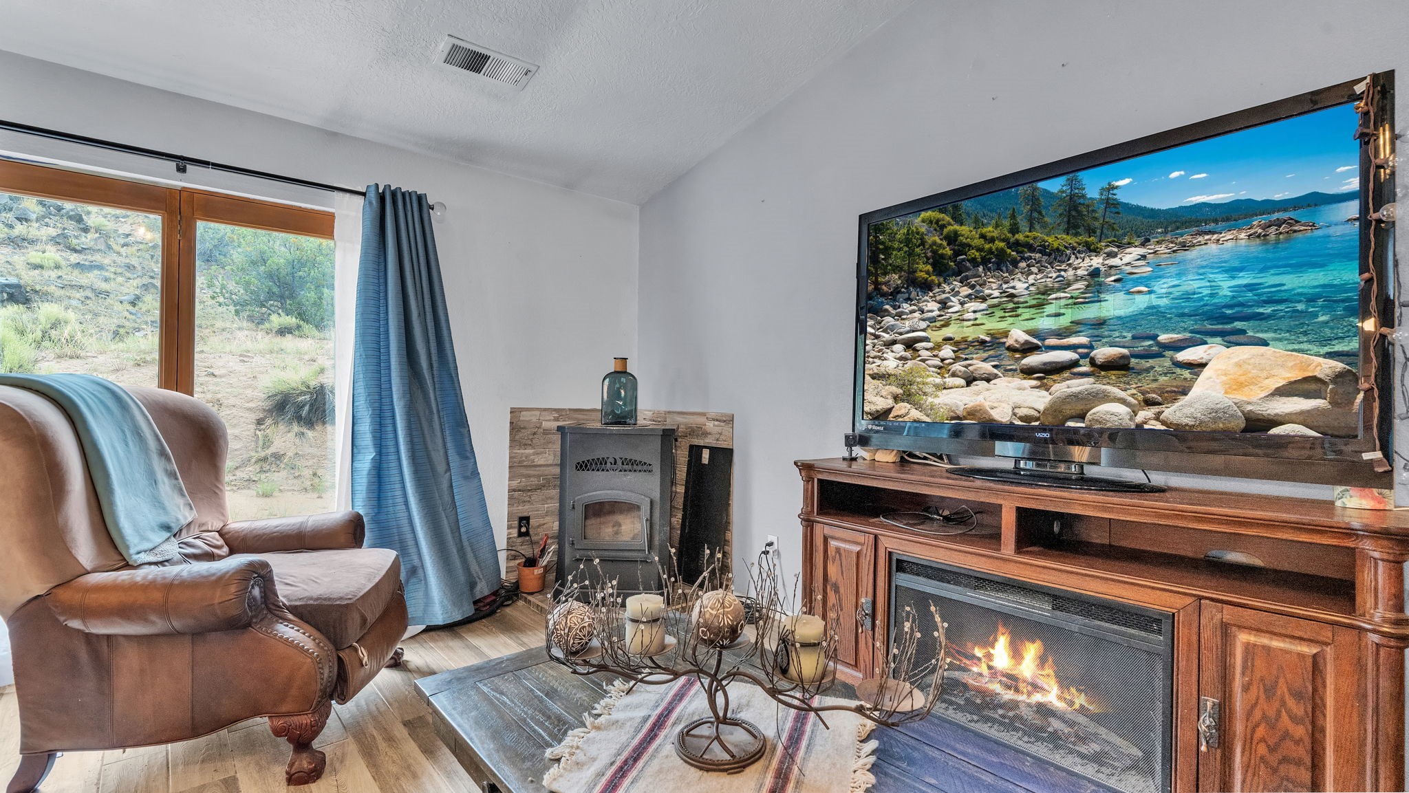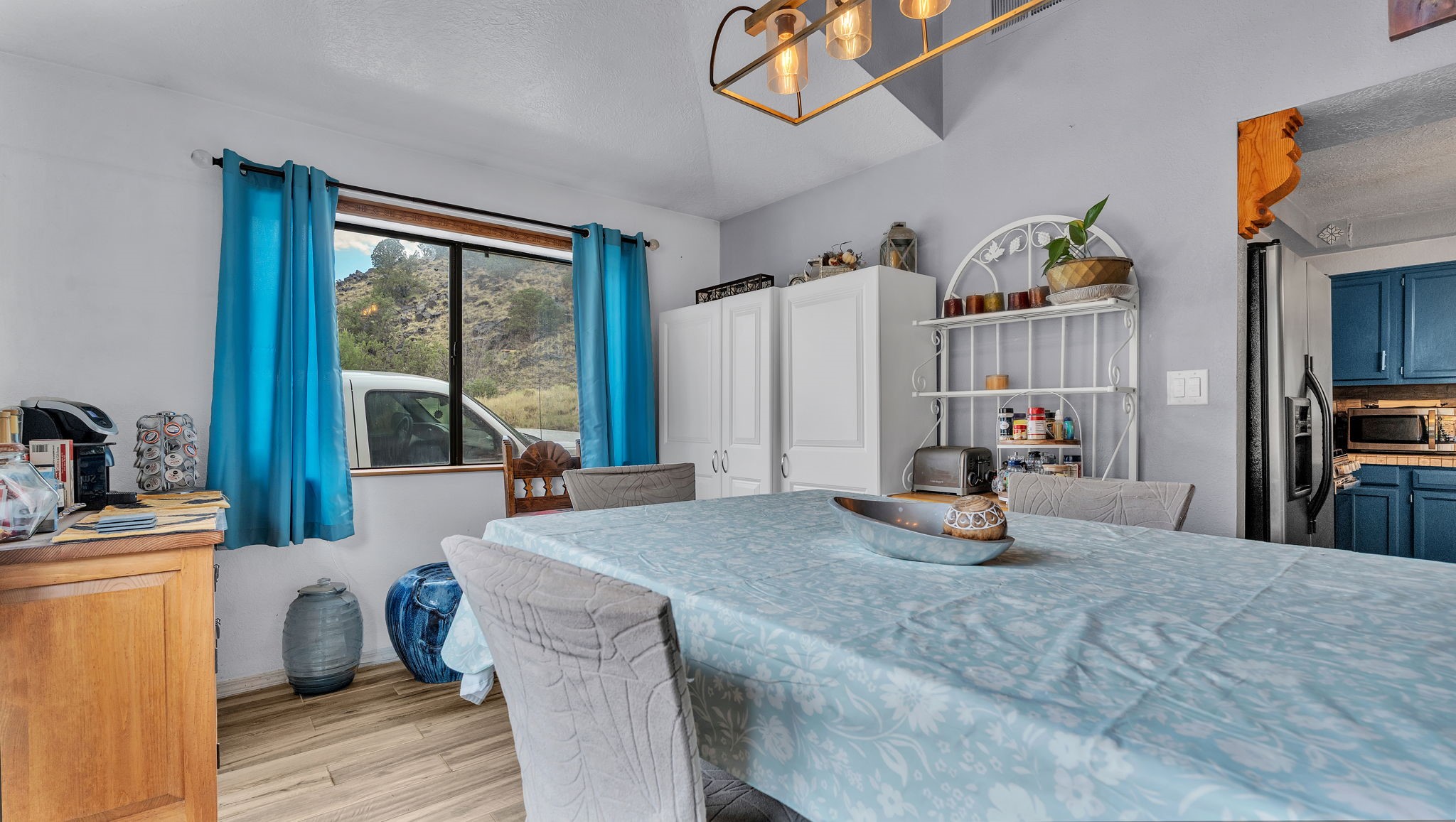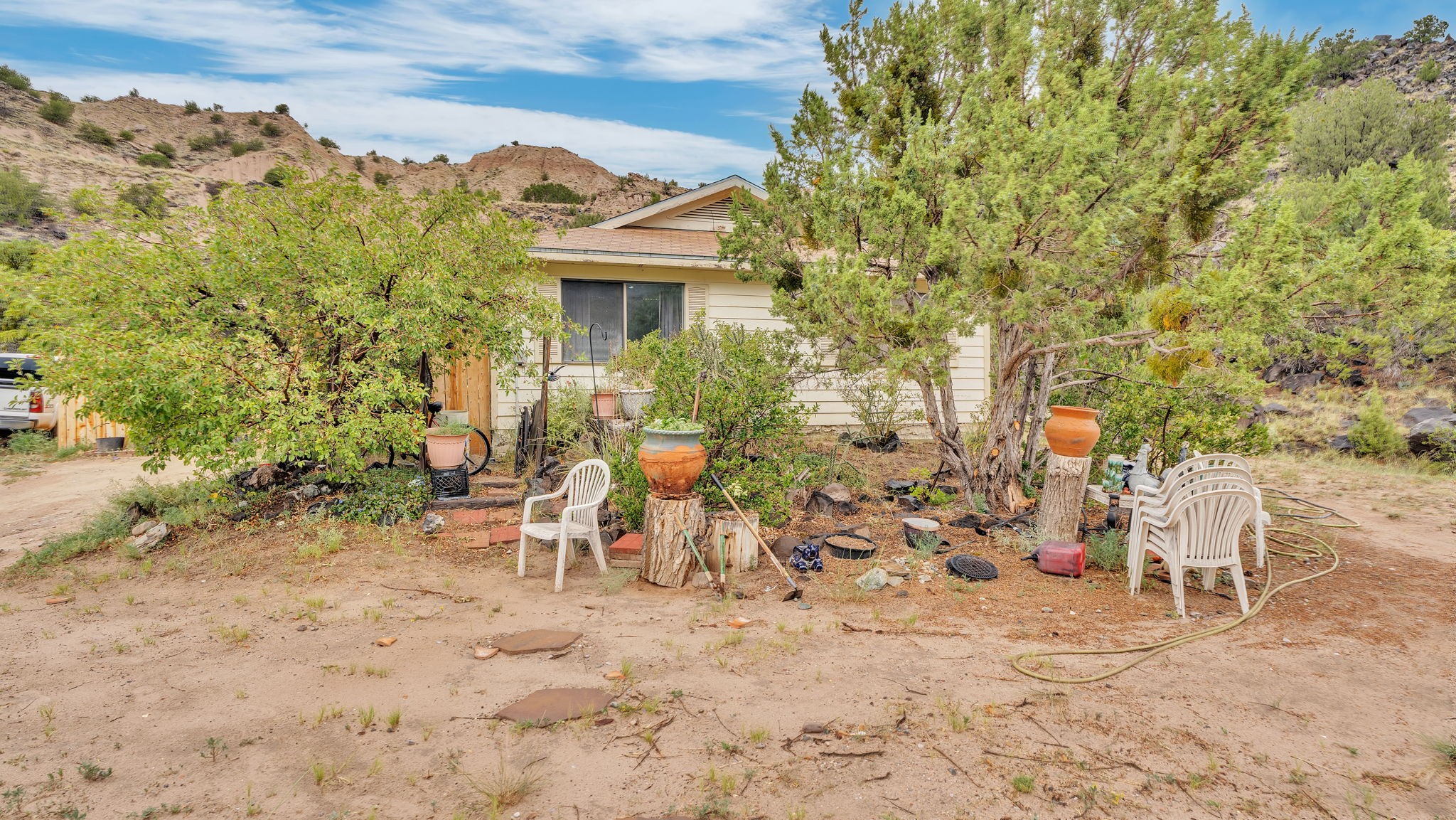 Perched on a hillside overlooking the Rio Grande, this 4-bedroom, 2-bath home offers stunning views on a 1-acre lot. The open-concept layout features spacious living areas, softwood and tile floors, and a pellet stove for cozy warmth. Accessed by a dirt road (SUV recommended), this private retreat is just a short drive to Taos and Espaola for shopping and dining, as well as close to the historic village of Dixon, the Rio Grande Gorge, and scenic High Road to Taos.