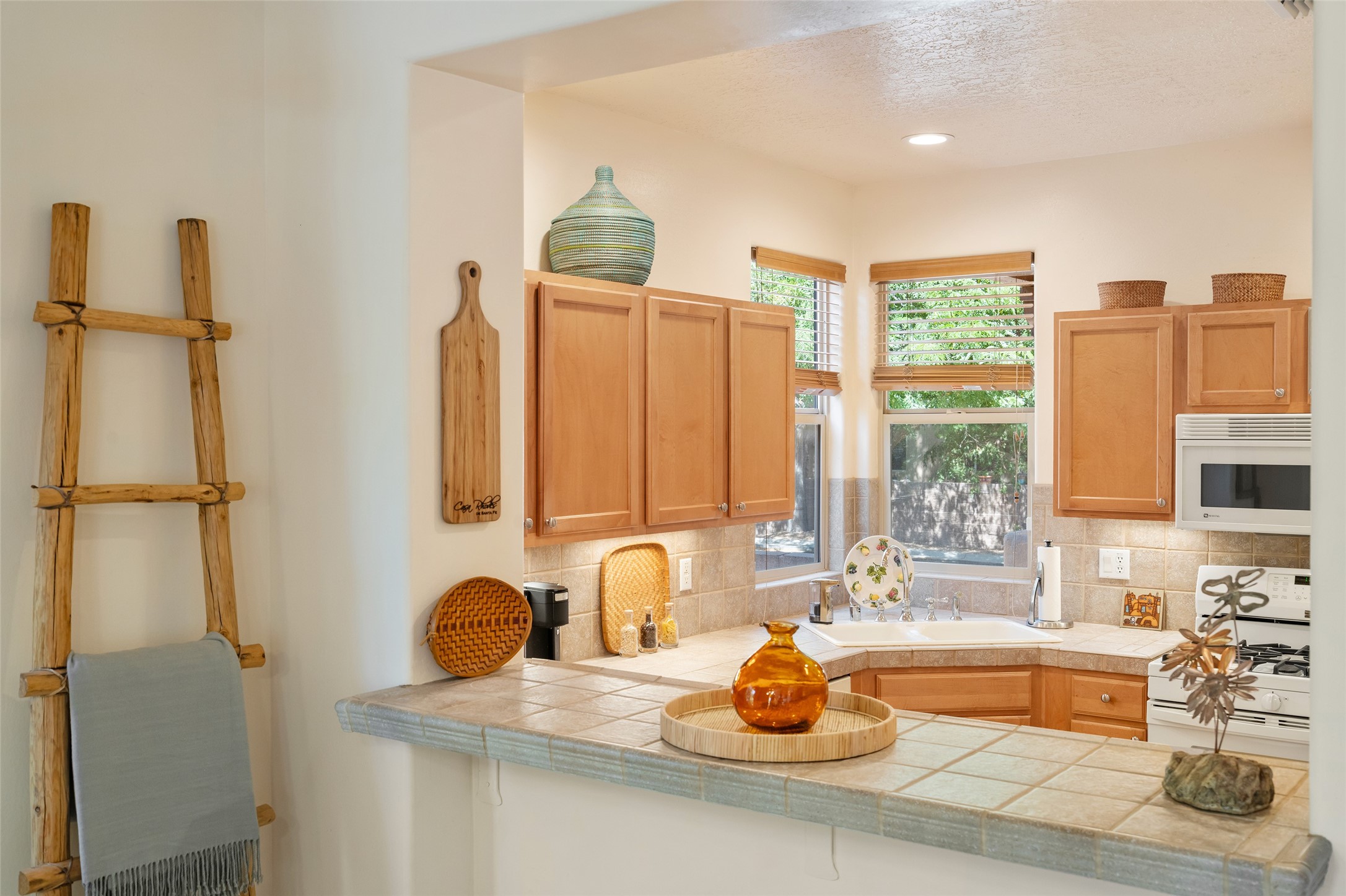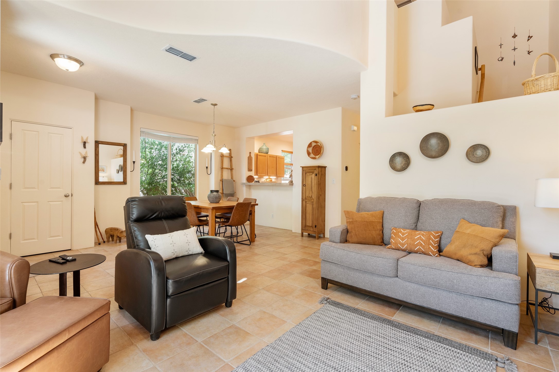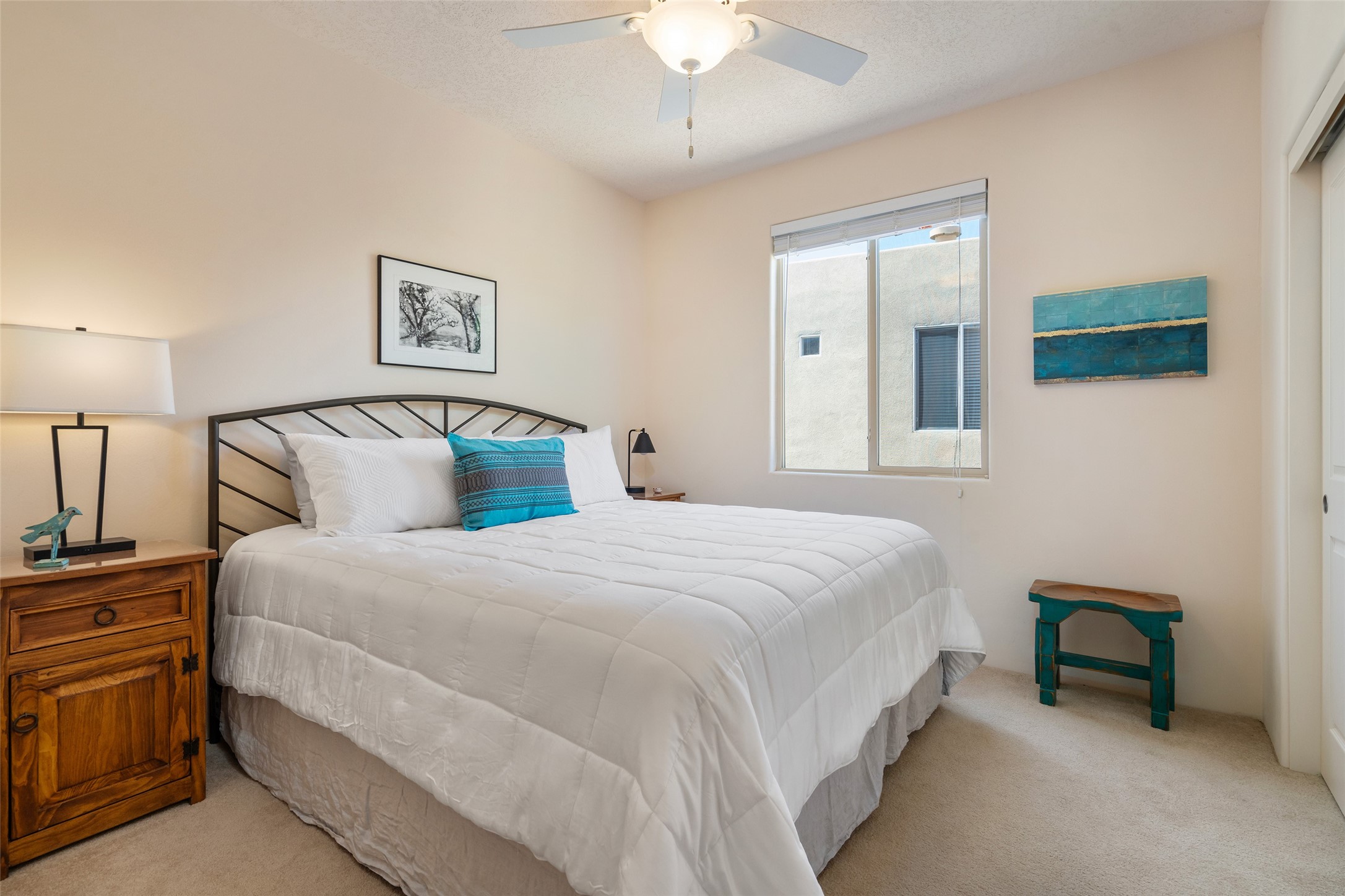 The seller will pay 1 YEAR HOA DUES with an acceptable offer for this Outstanding Windmill Ridge Townhome! So lightly lived in, you'll be amazed at its pristine condition! Located in the desirable Windmill Ridge area of Rancho Viejo, this turn-key property is ideal for full-time living or as a low-maintenance lock-and-leave. The main living area features beautiful tile floors and a soaring 20-foot ceiling, creating an open and expansive feel. A charming gas kiva fireplace, vigas, and wood ceilings add authentic Santa Fe warmth. The kitchen offers generous storage within maple cabinetry, complemented by soft neutral-toned tile countertops. A convenient laundry room and powder bath are located on the main level. Upstairs, a versatile loft provides the perfect space for a home office, media area, or reading nook, complete with a small balcony overlooking southern views and the neighborhood park. The primary suite boasts its own spacious balcony with sweeping views of designated open space and both the Jemez and Sangre de Cristo mountains. This immaculate home is part of a welcoming community featuring over 12 miles of paved walking trails, multiple parks, and an active HOA. Exterior maintenance is included in the townhome dues, making for stress-free living. Priced to sell and ready for its next owner!