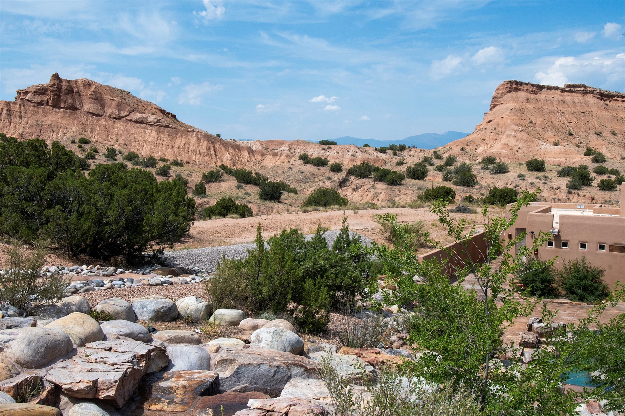 DESERT RIPARIAN DELIGHT - 2 CASITAS | 2 BATHS | 1,900 SQFT | 5.7 ACRES. Fabulously Fun Chimayo River Compound & Leisure Retreat. Welcome the natural bounty of the Chimayo river valley at this open concept modern pueblo casita compound with leisure pools and river access. Beat the heat with the soaking pool complete with waterfall grotto and lounging pad or cozy up in the winter with the hot tub or fire pit. Comprising 2 Casitas; The Pueblo Pool House Casita features a leisure pool, hot tub, waterfall grotto, outdoor shower area and beautiful stone work. The River Casitia is a finished 24' Yurt with added kitchen and bathroom on a permanent foundation next to the river featuring a fire pit area and river access trails. Each building is complete with an outdoor shower for apre l'eau - pool or river. Offering tile porcelain floors, art lighting, under cabinet lighting, 2 outdoor showers, built-in banquette with storage, dishwasher, on site laundry, electric range, insulated windows, hardwood cabinetry, and bronze hardware, Dos Casitas Compound on the River is a delightful wilderness retreat. Located on 5.7 dynamic and beautiful acres In the Chimayo Valley, 40 minutes from Historic Santa Fe and 60 from the Pueblos of Taos. Resting alongside the Santa Cruz River makes this a true oasis in the New Mexico desert. The property is plentiful with river life. Majestic cottonwoods grow alongside the river and vast views of the desert hills and mesas of northern New Mexico offer the senses peaceful imaginings. Adjacent to acres of BLM land, makes this a wonderfully secluded location at the end of a private road. Conveniently located just five mins from village stores, shopping, and not much further to nearby restaurants, historic and local attractions. Imagine this as the amazing Art Studio or Yoga Yurt of your dreams. Perfect for Investor Wilderness Spa Retreat or further Compound development. Visit today and own a piece of Northern New Mexico paradise tomorrow.