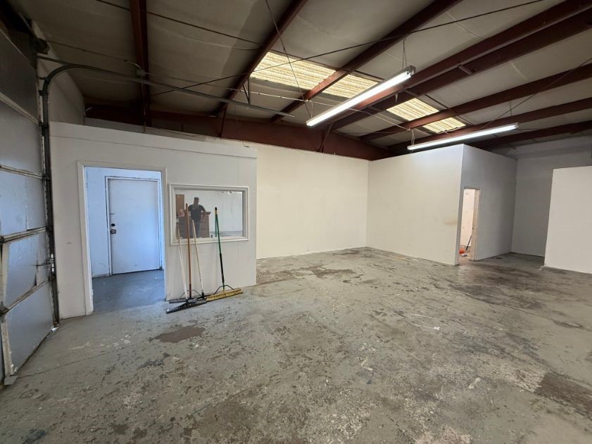 Current Use Commercial/ light industrial multi - tenant ( 2 units)Building Type Light industrial/commercial warehouseBuilding Area 3, 200 square feet (currently delineated into two 40'x40' units; originally four 20'x20' units )Number of Stories One Basic Structure SteelFoundation concreteExterior Wall Cover MetalRoof/Metal /Roof DrainageGutters and downspoutsInterior Wall Cover Painted drywallFlooring Exposed concreteCeiling Painted drywall (office), Steel I - beams/insulation (warehouse/workshop)HVAC Gas fired suspended heaters, wall/window a/c, evaporative coolerDoors/Exterior: Metal; Interior: wood/ WindowsWindows: Double glazed metal casementRestrooms Four (one for each potential unit)Lighting Fluorescent , incandescent, skylightsUtilities All/publicAge The Santa Fe County assessor lists the construction of the property as 1981 .Parking Unmarked paved parking lot Additional Features Two rollup garage doors per unit (Unit 2 C/D - 2 nd rollup door enclosed with windows); chain - link fencing; loading dock on the north side of buildingIn an area currently experiencing gentrification.