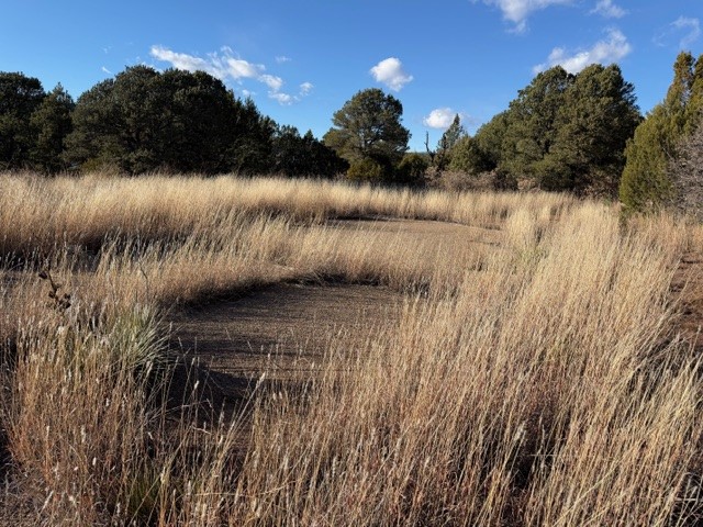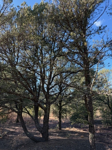 Fascinating geodesic dome home on five fenced acres which can be subdivided into 2 acre lots. The home features two primary suites with adjoining living areas. Downstairs suite has a Jacuzzi tub and a new Andersen window with eastern exposure. Awaken with the morning sun! Sunsets illuminate the upstairs suite with an unobstructed view of Hermit's Peak and beyond. New Andersen windows catch the breeze through the trees for cross ventilation. New roof and siding.The manicured front yard is great for bocce ball or chipping from the rough. Enclosed carport and workshop are joined by a concrete pad. The new pump for the 464' deep well pumps 15 GPM and is sufficient to water the trees, raised beds, a garden, and wash the cars, as well as provide for all domestic needs.The lower acreage is heavily forested and has a separate entrance. Water and power are available on the road. There is a 40' x 60' paved tennis court that has been protected by a retaining wall.