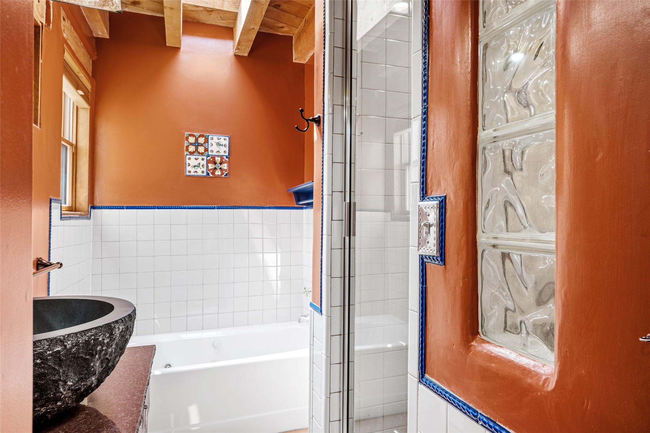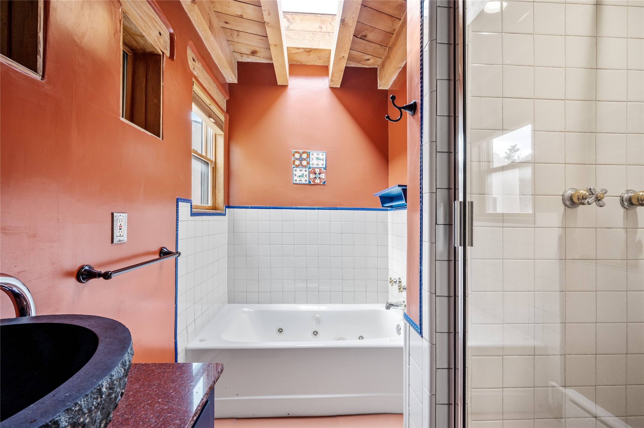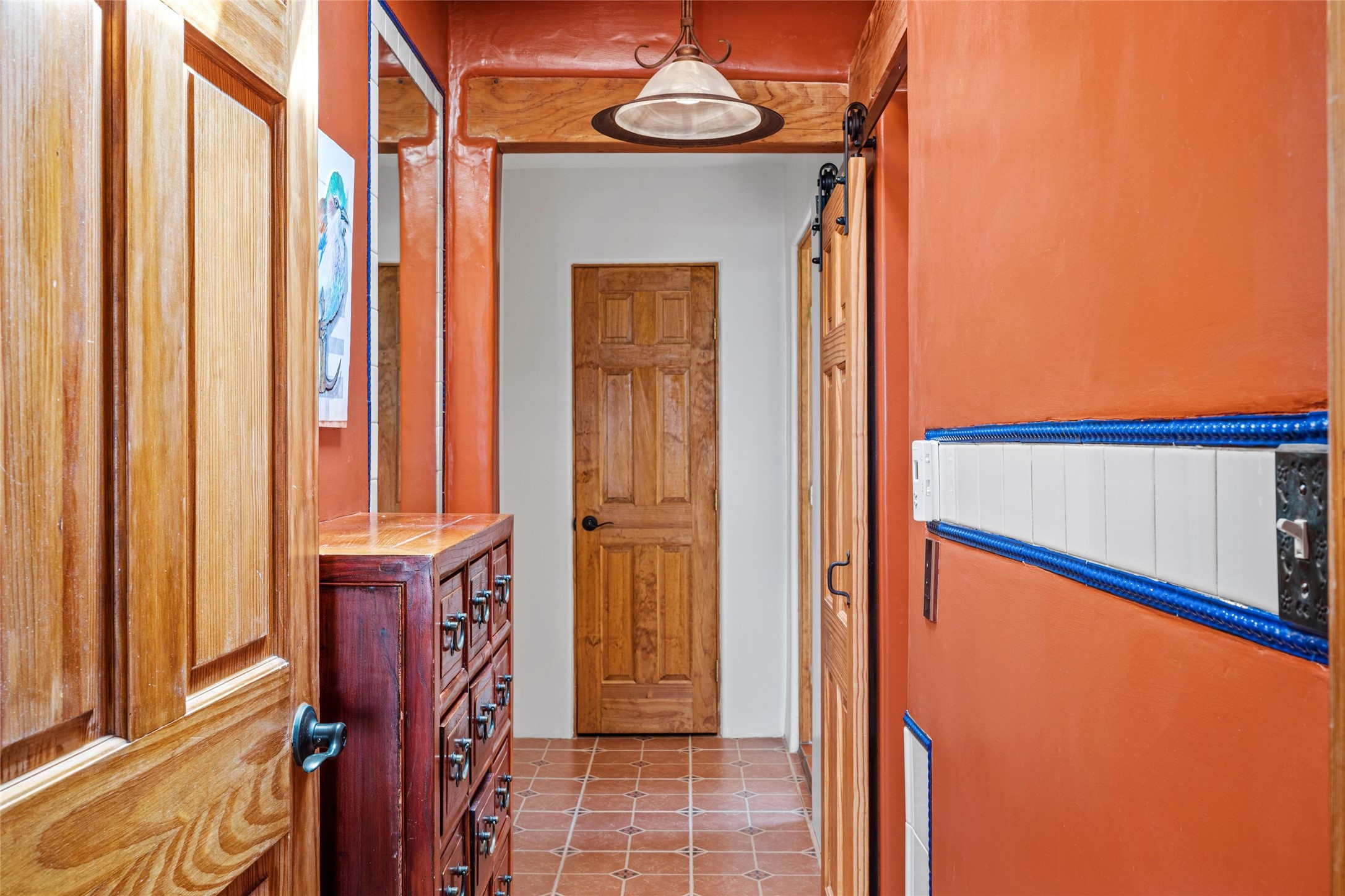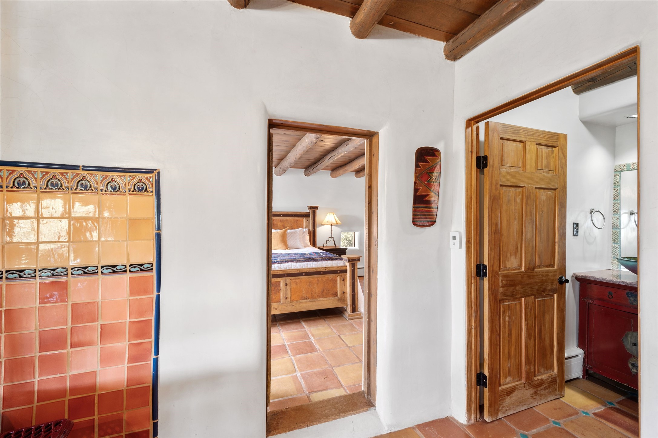 Turnkey house and guesthouse in Tesuque with furniture package (a few exclusions apply), so you can start living the Santa Fe dream now! Full of Santa Fe character, the main residence highlights vigas, beams, and a wood-burning fireplace that sets a warm and inviting tone. Built in 1997, the 1,312 sq. ft. single-level home offers 2 bedrooms and 2 baths. A 288 sq. ft. guest house adds an additional 1 bedroom and 1 bath, bringing total living space to 1,600 sq. ft. Recent improvements include a brand-new driveway, a private well with a new pump and control panel, a new boiler, and fresh stucco finish. The property also features baseboard electric heating, evaporative central cooling, and a gated driveway for added privacy and security. Surrounded by natural beauty, this 5-acre retreat offers peace, quiet, abundant wildlife, and stunning sunset views over the Jemez Mountains. Just 20 minutes to the historic Plaza and close to the Four Seasons, it's the perfect blend of seclusion and convenience--an exceptional chance to enjoy the best of Tesuque living.