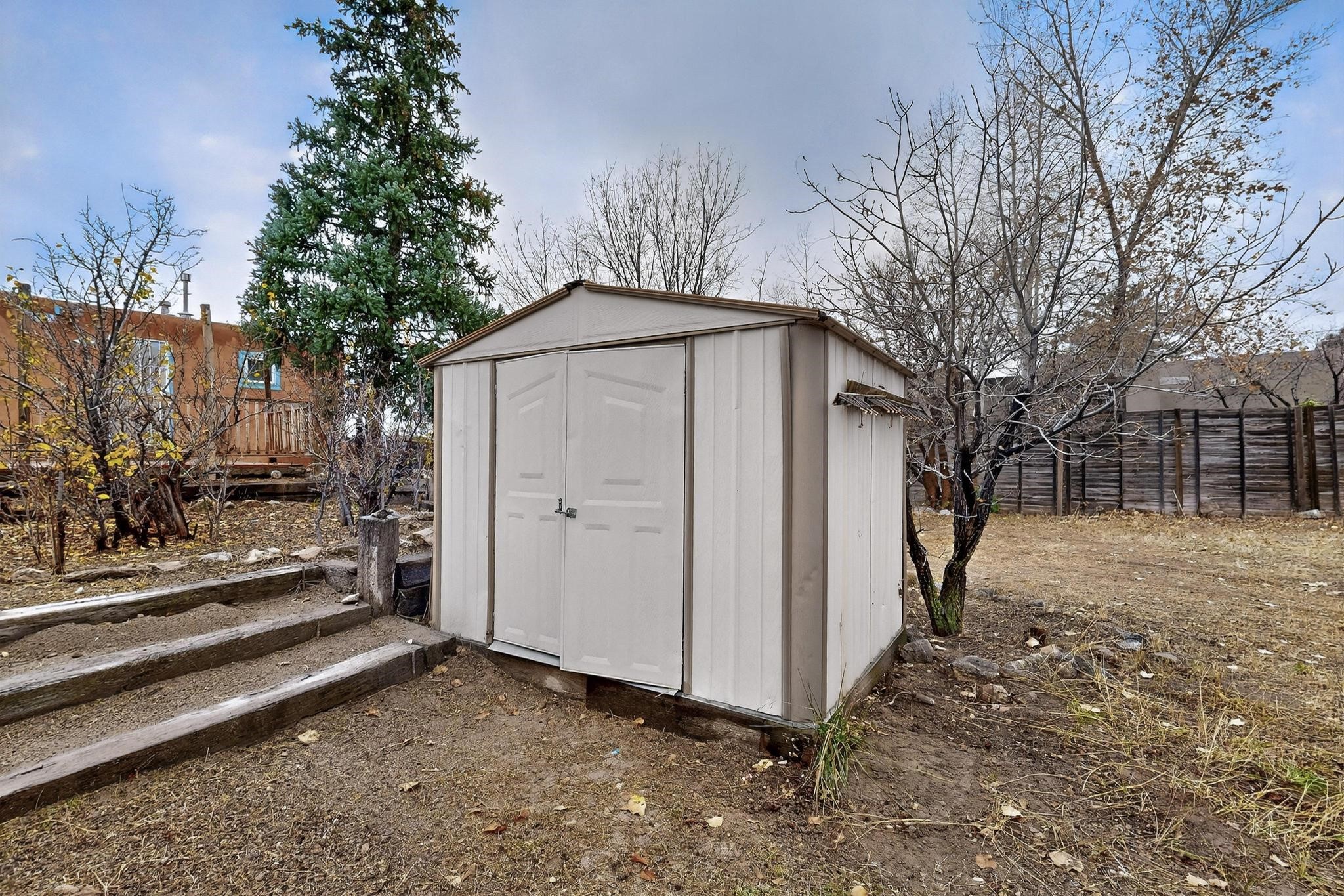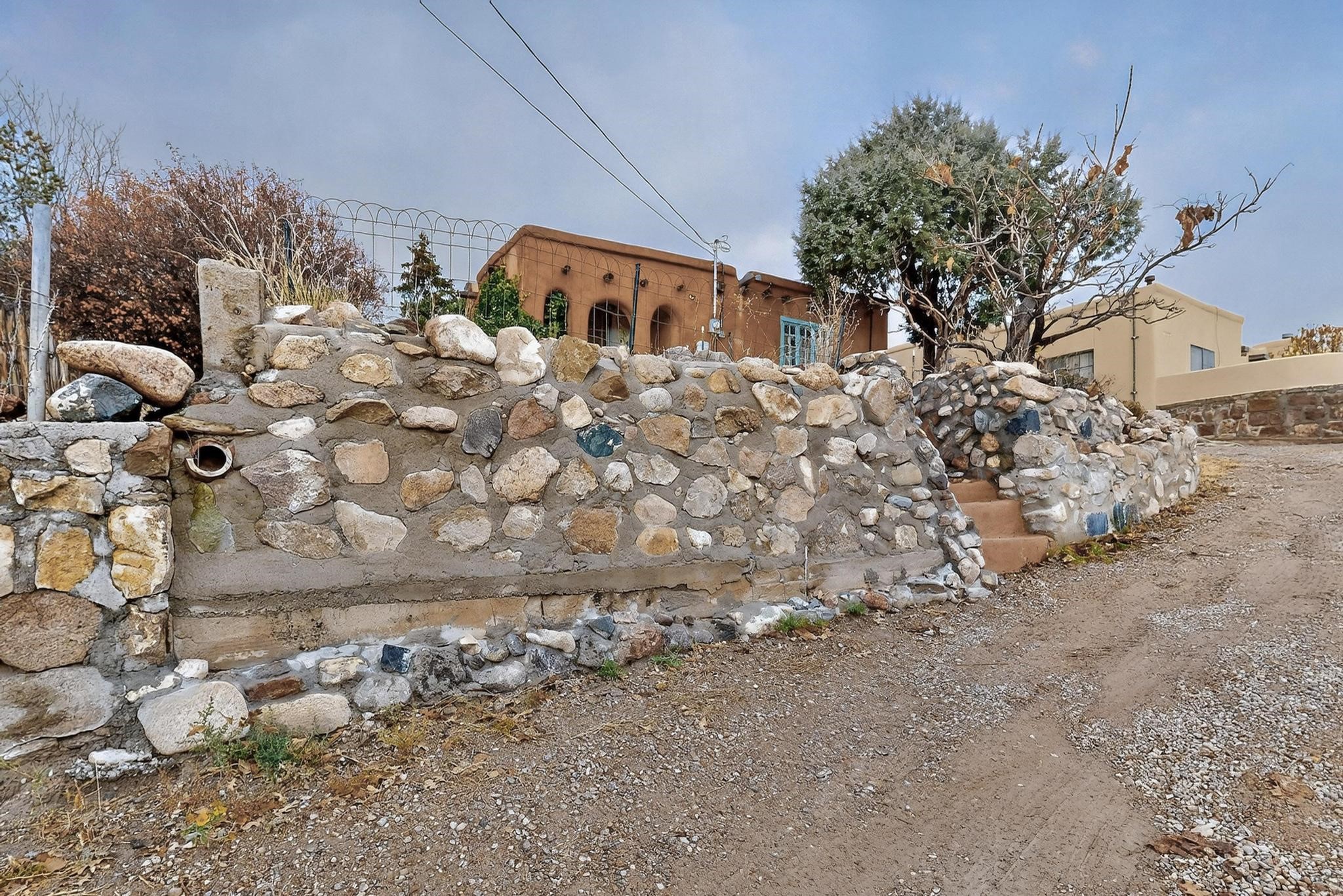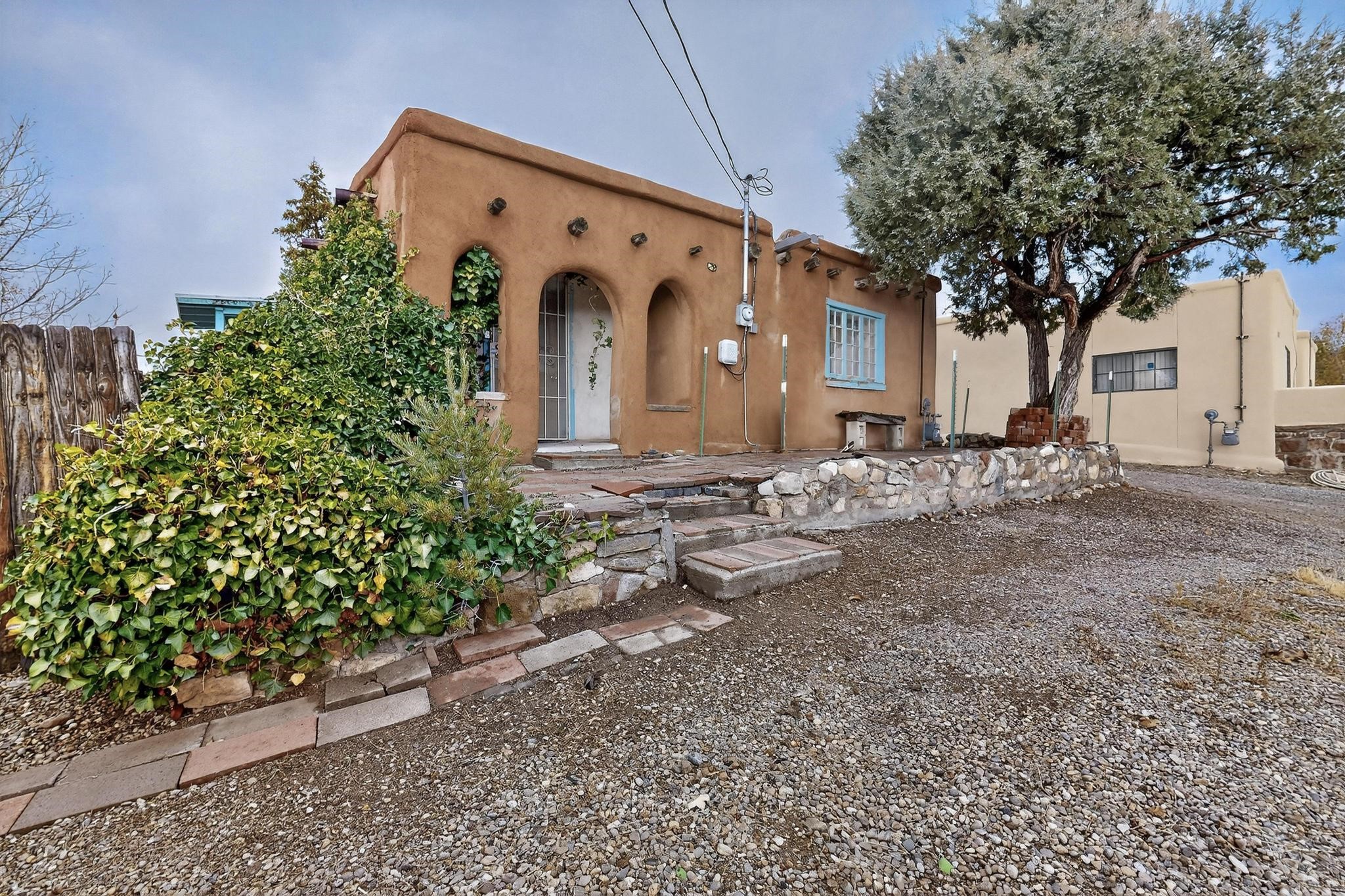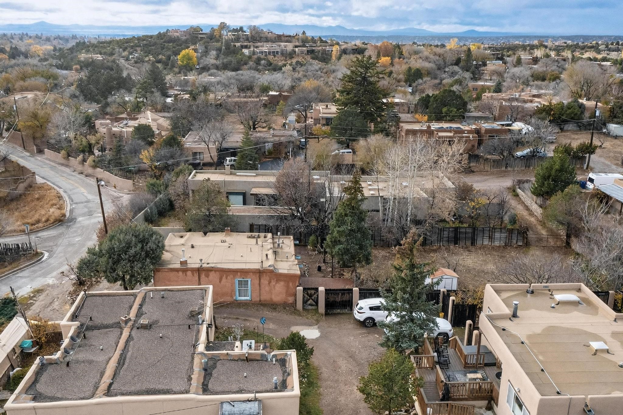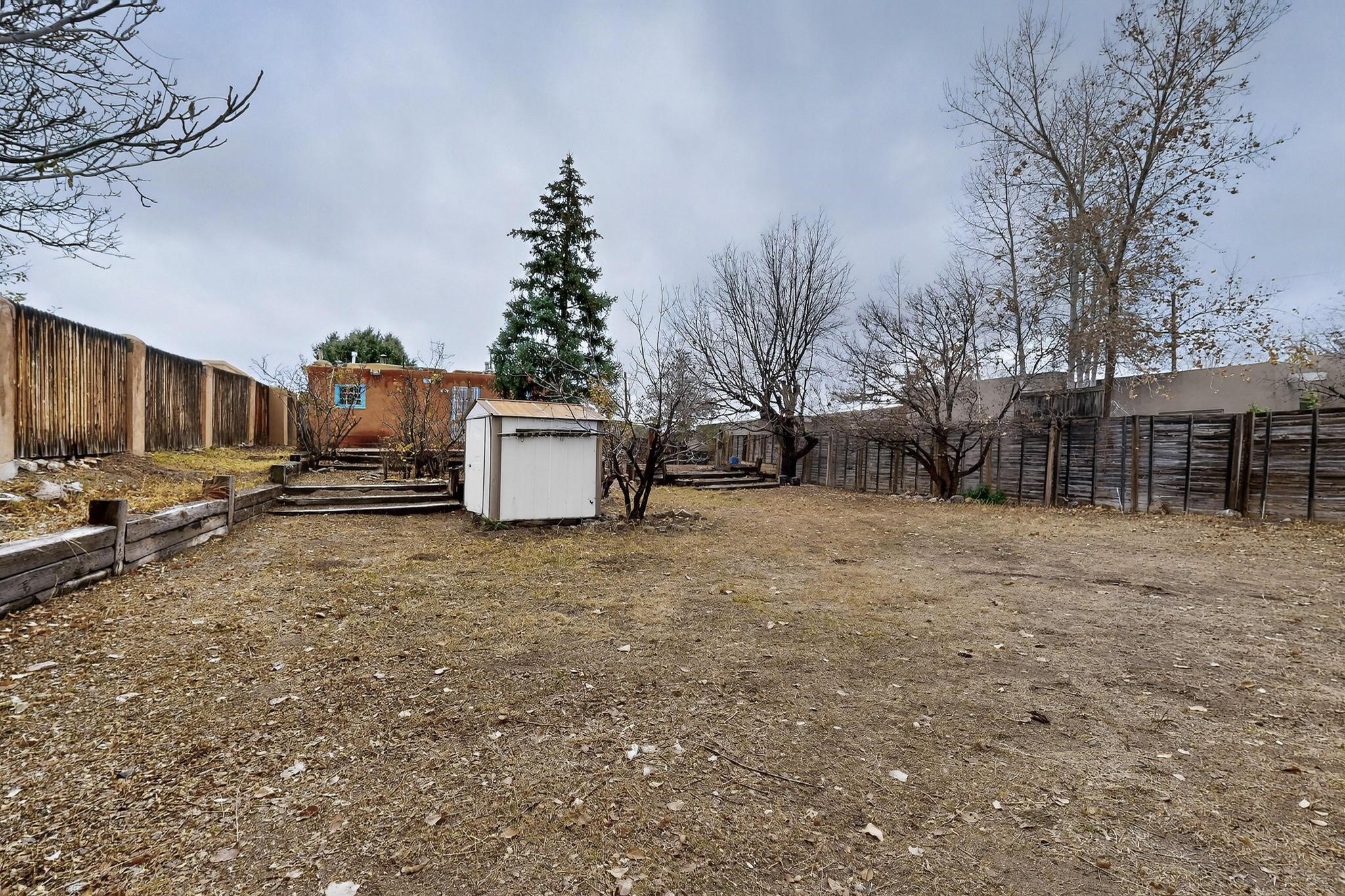 This Historic Adobe estate has prime land and development opportunity near downtown Santa Fe. This exclusive offering is a 1931 Adobe structure featuring a one bedroom one bathroom configuration. The elevated positioning affords expansive unparalleled views of the surrounding landscape. Preliminary assessment indicates the acreage is sufficient to accommodate the development of a second residential parcel, offering an exceptional investment for expansion opportunity, subject to zoning confirmation. Notably, there is a separate rear entrance to the backside of the property on N. Armijo Lane. The estate is defined by its maturity and natural beauty, featuring abundant native trees, notably including two striking black walnut trees along with some other fruit baring trees. The property maintains a remarkable balance of secluded natural tranquility while remaining approximately 5 minutes from the cultural and culinary center of downtown Santa Fe. This is a rare market entry for a developer, investor, or homeowner seeking a distinct blend of historic architecture, and close proximity to the city and acreage for future expansion. Don't miss this opportunity!