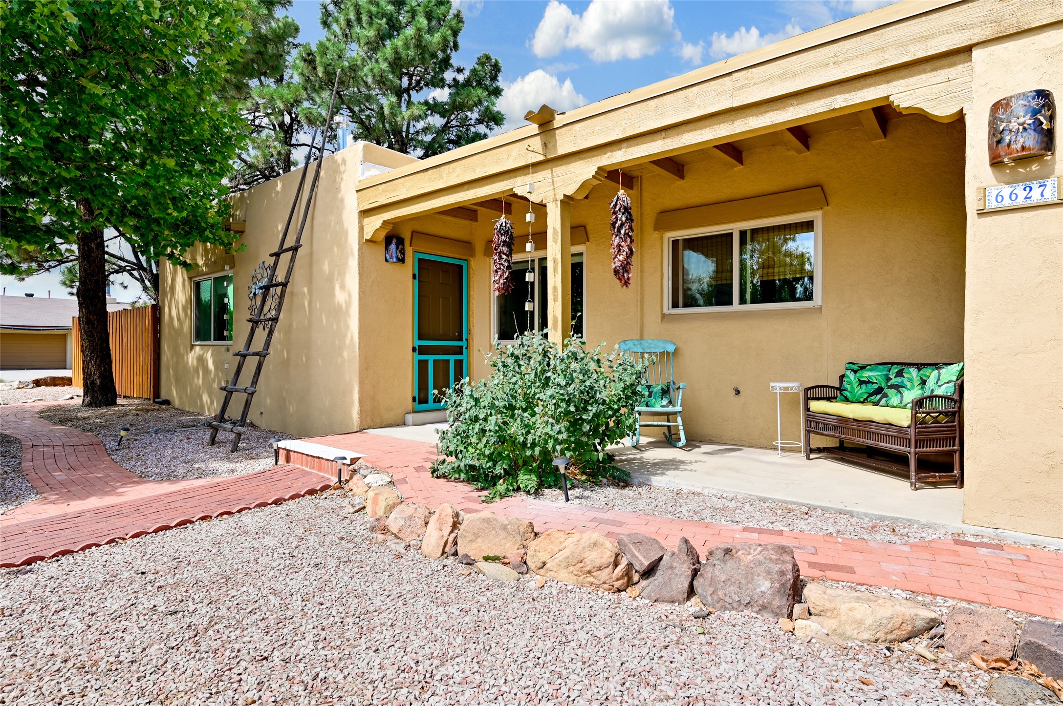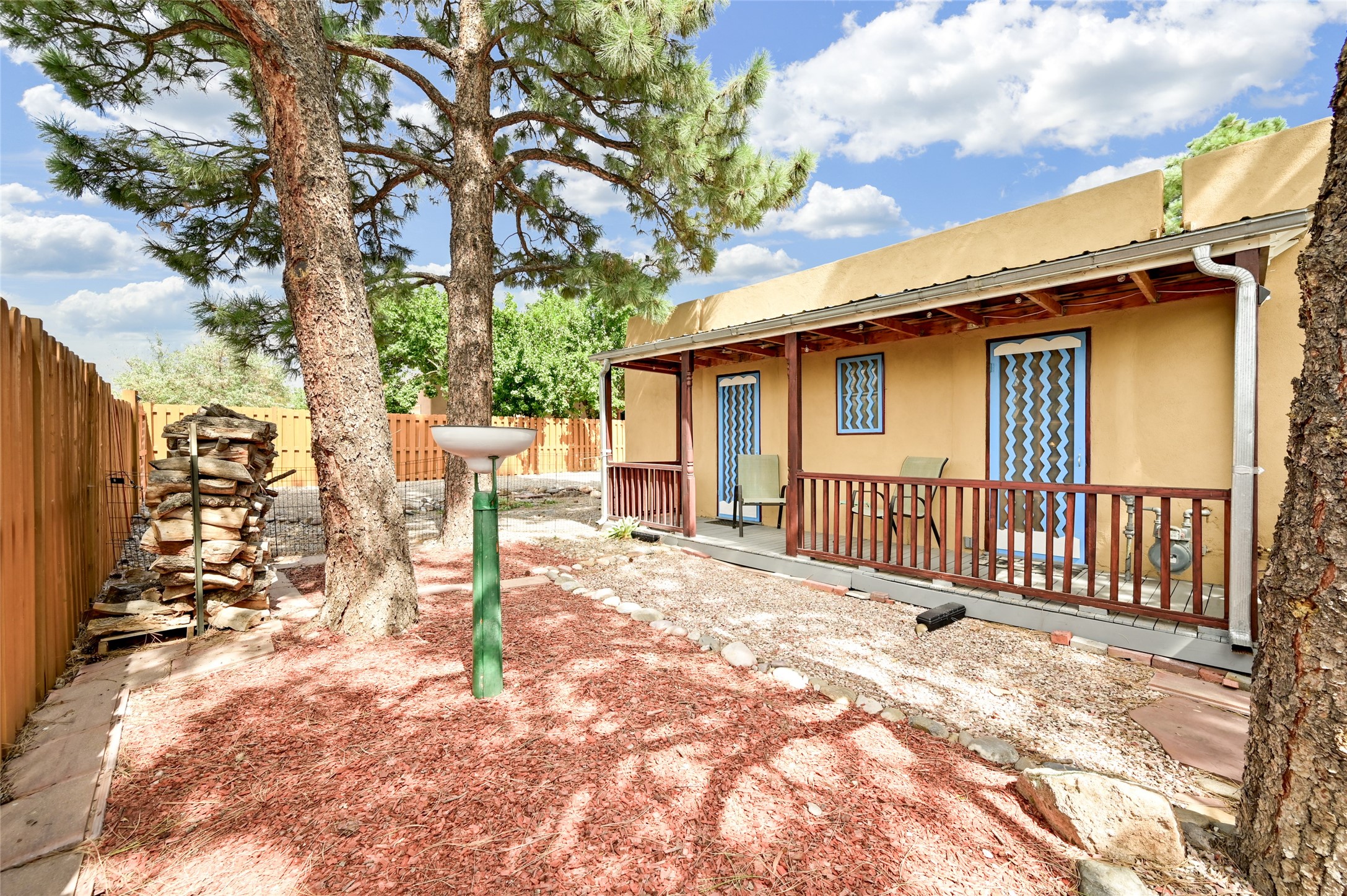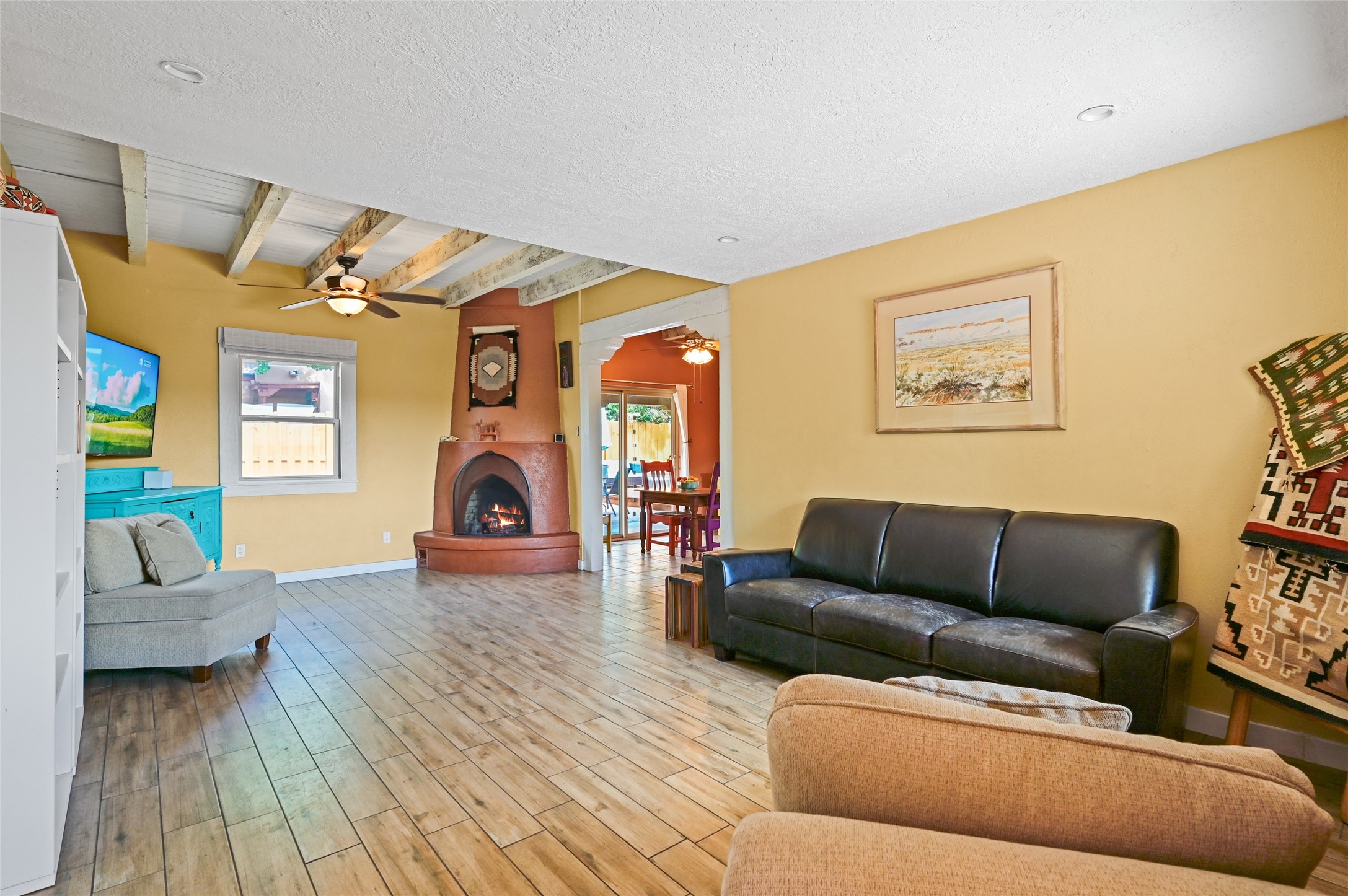 This charming and updated home on a corner lot offers 2 bedrooms, 2 bathrooms, & detached, heated/cooled studio--ideal for a home office, workshop, or additional living space. Plenty of recent upgrades throughout the property including a new roof, stucco, windows, doors, floors, baseboards, paint, A/C, insulated garage & garage door, new chimney sleeve, electrical updates including a new panel, and many more!Inside, the cozy living room features a kiva fireplace and beautiful ceiling beams. The kitchen is well-equipped with ample cabinetry and a bright breakfast nook. Step outside to your private backyard retreat, complete with a new wooden deck, a relaxing sitting area, and brick patio, ideal for entertaining or enjoying outdoor meals.Both bedrooms offer access to a covered 3rd portal, shaded by beautiful Ponderosa Pines, adding an extra touch of serenity and outdoor living space. Additional highlights include convenient outdoor storage and off-street RV parking. Located in the desirable Cochiti Lake area, this home offers the perfect blend of comfort, modern updates, and a peaceful retreat--only 30 minutes to Santa Fe and 40 minutes to Abq.Land Lease is $330/quarterly, Town Tax $332/annually, Lease Improvement Fund $140/year