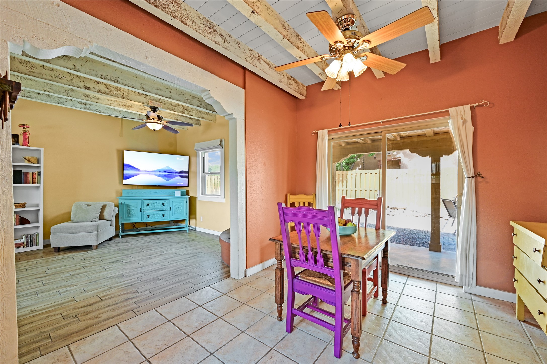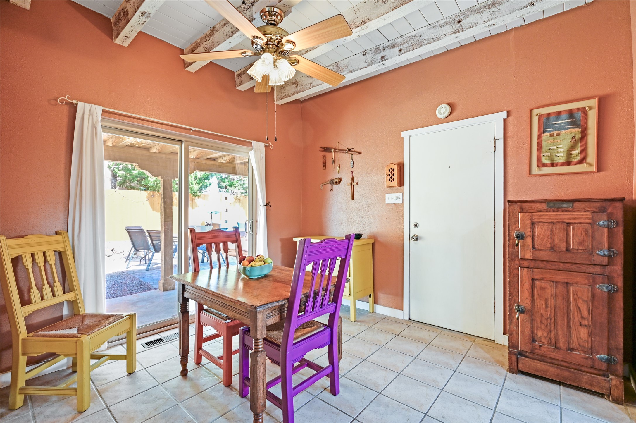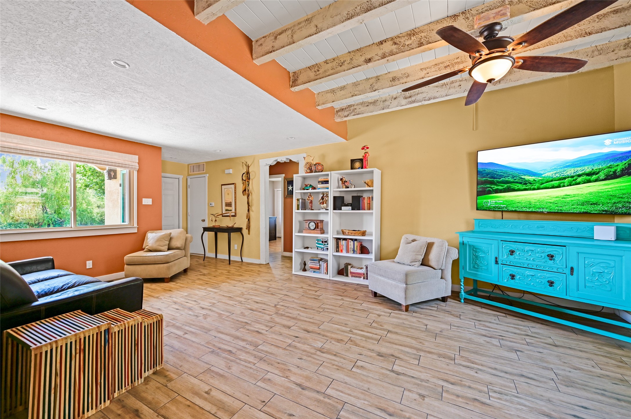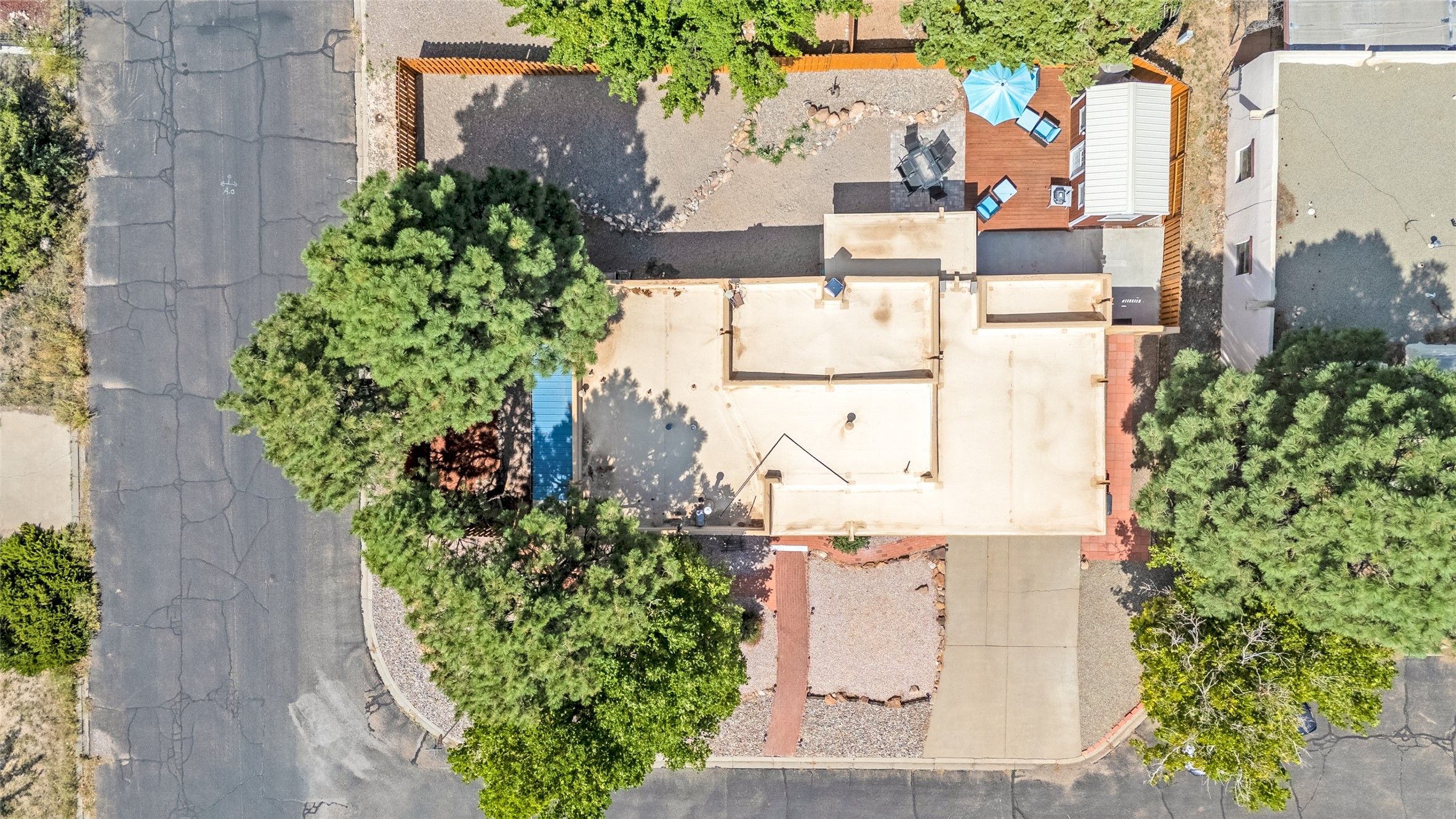 This charming and updated home on a corner lot offers 2 bedrooms, 2 bathrooms, & detached, heated/cooled studio--ideal for a home office, workshop, or additional living space. Plenty of recent upgrades throughout the property including a new roof, stucco, windows, doors, floors, baseboards, paint, A/C, insulated garage & garage door, new chimney sleeve, electrical updates including a new panel, and many more!Inside, the cozy living room features a kiva fireplace and beautiful ceiling beams. The kitchen is well-equipped with ample cabinetry and a bright breakfast nook. Step outside to your private backyard retreat, complete with a new wooden deck, a relaxing sitting area, and brick patio, ideal for entertaining or enjoying outdoor meals.Both bedrooms offer access to a covered 3rd portal, shaded by beautiful Ponderosa Pines, adding an extra touch of serenity and outdoor living space. Additional highlights include convenient outdoor storage and off-street RV parking. Located in the desirable Cochiti Lake area, this home offers the perfect blend of comfort, modern updates, and a peaceful retreat--only 30 minutes to Santa Fe and 40 minutes to Abq.Land Lease is $330/quarterly, Town Tax $332/annually, Lease Improvement Fund $140/year