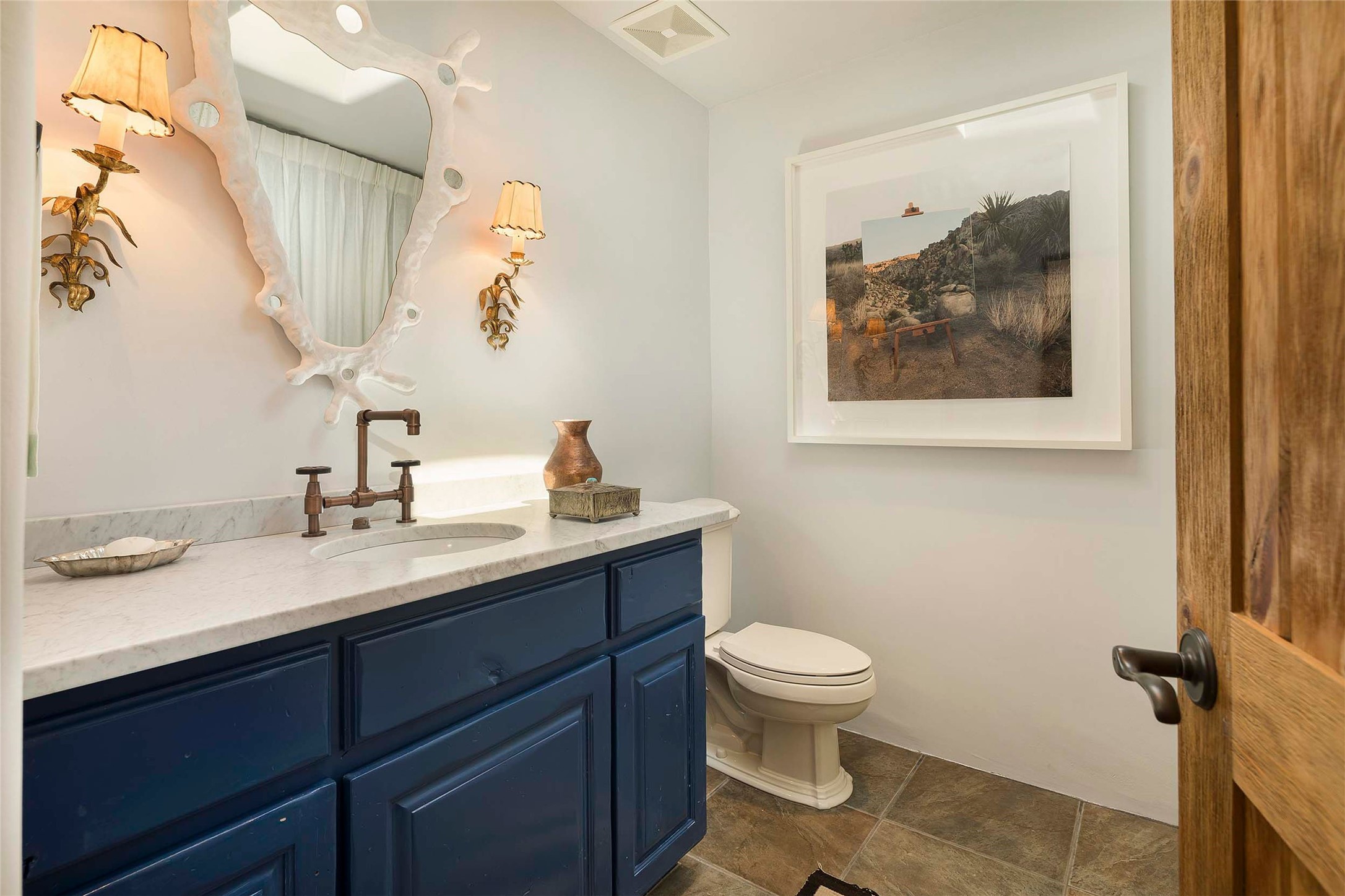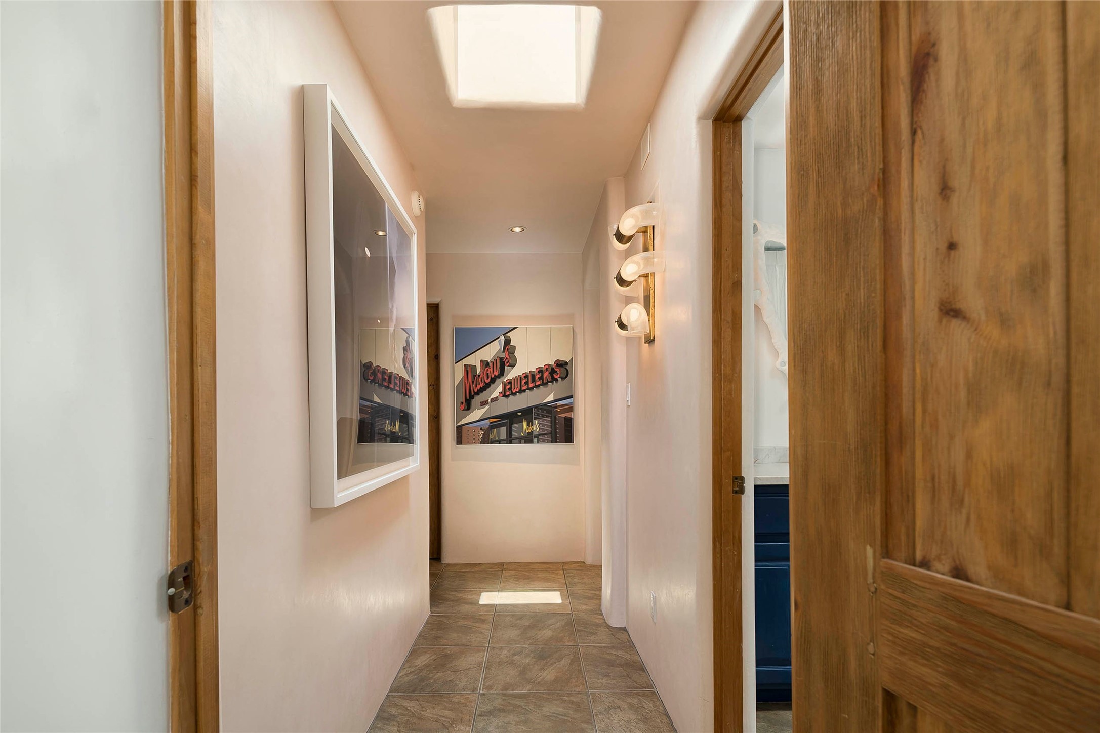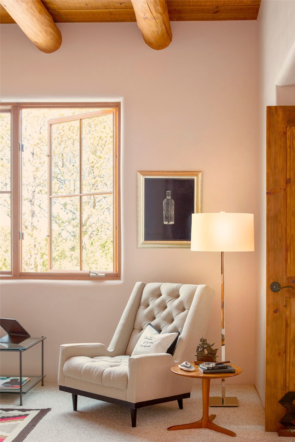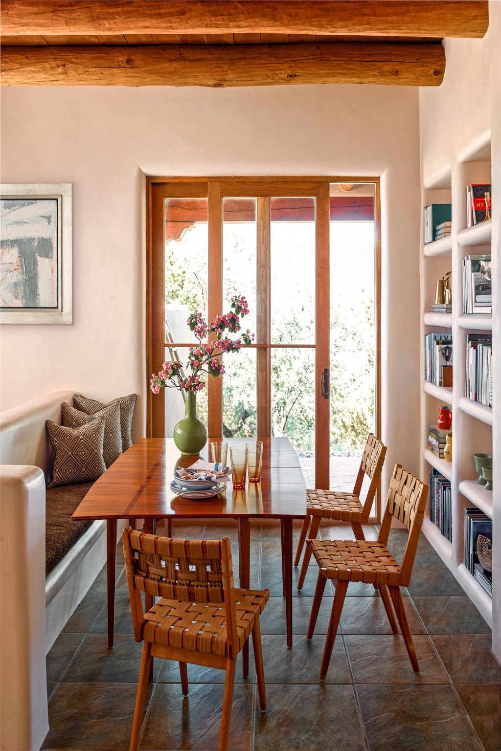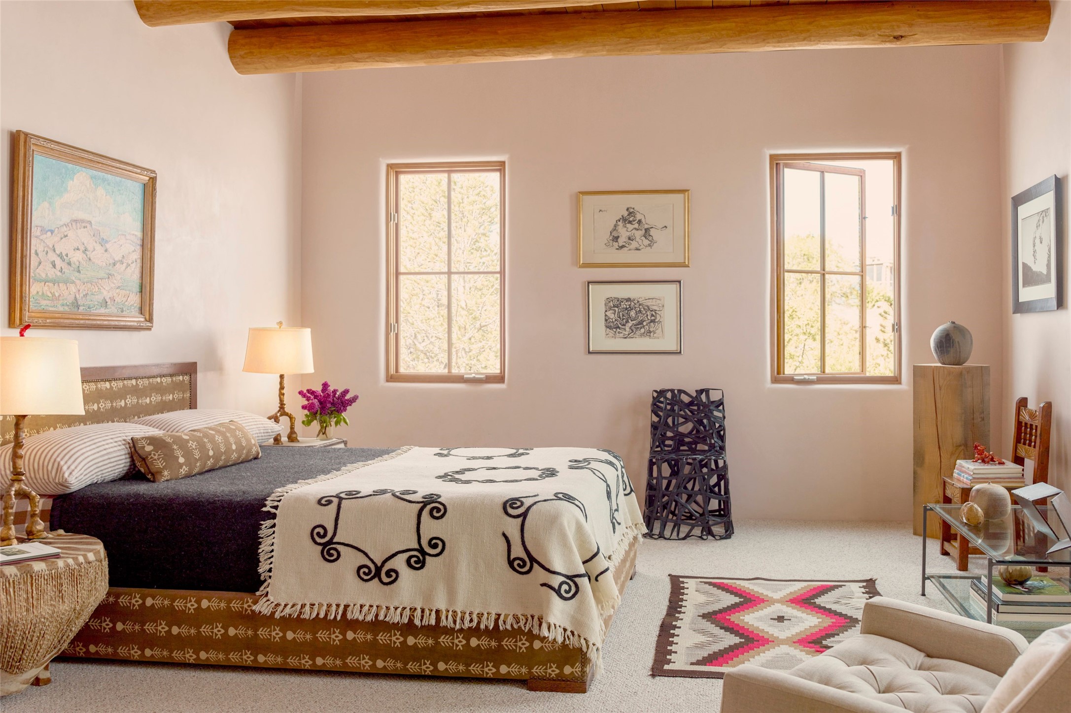 Rare Eastside Private and Gated La Cantera - Timeless Southwestern Elegance - Minutes from Canyon Road and the historic Plaza, this distinguished La Cantera home offers 3BR, 3BA and apx 2,715 sqft of refined living on nearly an acre - one of the enclave's largest and most coveted, private parcels. A graceful drive unveils an luxurious residence with high viga ceilings, hand-troweled plaster walls, and the golden glow of kiva fireplaces. Expansive living and dining rooms flow with effortless sophistication, grounded by wide tile floors. Soft carpeted bedrooms balance comfort and ease, with radiant heat throughout. The gourmet kitchen pairs polished granite, rich alder cabinetry, and sleek stainless appliances, while a luminous banco breakfast nook bathes in morning sun. Two master suites provide generous proportions and a serene ambiance, joined by a versatile third bedroom or office. The residence is completely single-level once entered. Outdoors, inviting portals designed for dining and entertaining create natural circulation into the gardens. A variety of fruit trees including peach, plum, cherry, apple and apricot, and a meandering wooded meditation walking path with fountain complete this secluded haven. Secured within La Cantera's gates with a 2-car attached garage, this rare property offers privacy, beauty, and architectural distinction - a world away but an easy stroll to Canyon Road's world renowned galleries and fine dining including Geronimo, The Tea House, and El Farol.