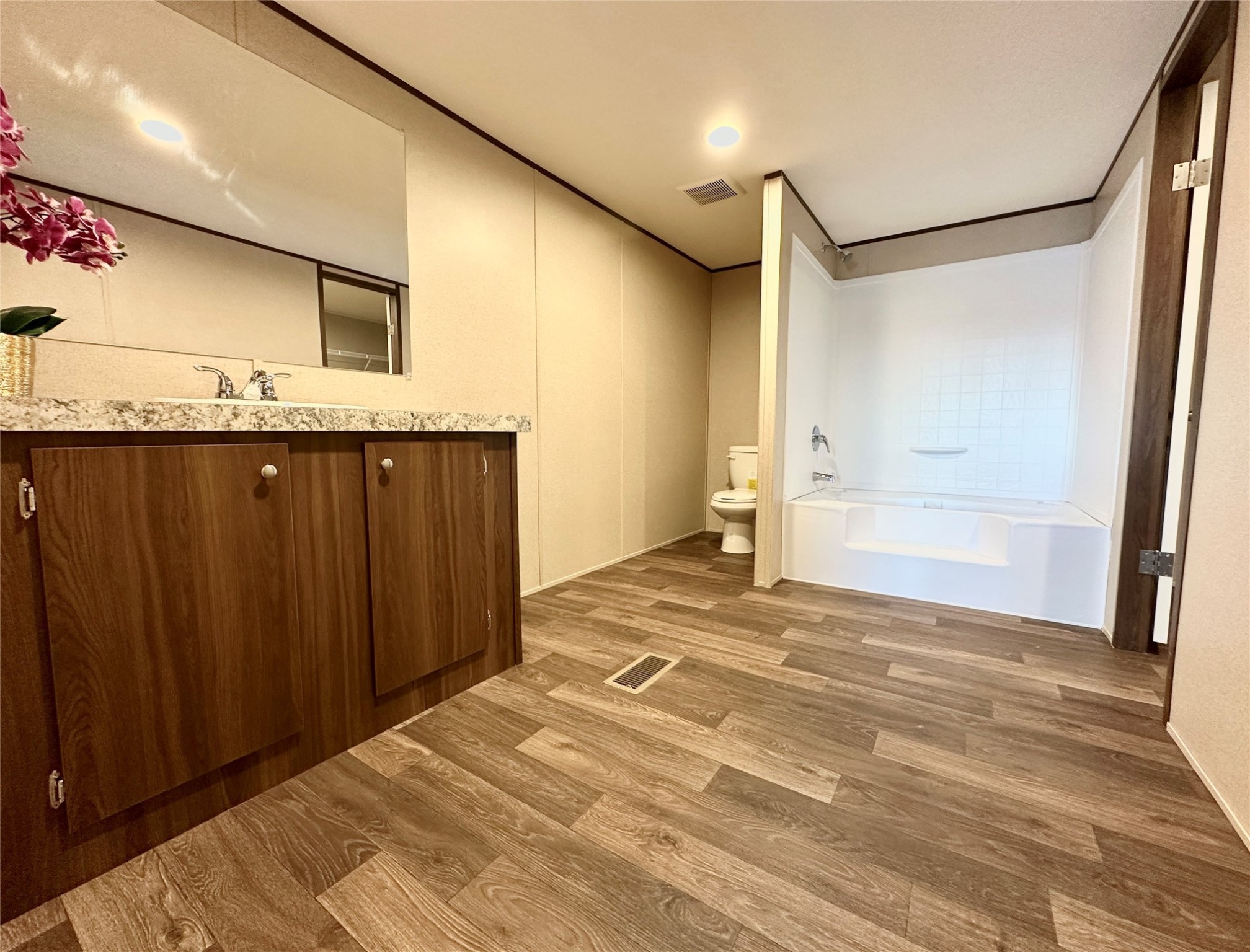Welcome to this brand-new 2025 28x68 manufactured home on a permanent foundation, fully qualifying for FHA financing. This spacious 4-bedroom, 2-bath residence offers 1,904 sq. ft. of comfortable living space on a .28-acre city lot with full city utilities. The thoughtfully designed open floor plan features a formal dining room and a large living room, perfect for gatherings and entertaining. Inside, you'll also find a new energy-efficient smart comfort heating and cooling system, stylish finishes, and new black appliances in the kitchen. The exterior includes front and back concrete slabs, minor landscaping, and a completely fenced yard, providing privacy and a safe space for pets or children. This beautiful home is truly move-in ready and located just minutes from shopping and amenities, with easy access to both Santa Fe and Los Alamos -- an ideal choice for commuters or anyone seeking modern living in a convenient location. Don't miss this opportunity to own a spacious, move-in-ready home in the heart of Espaola!