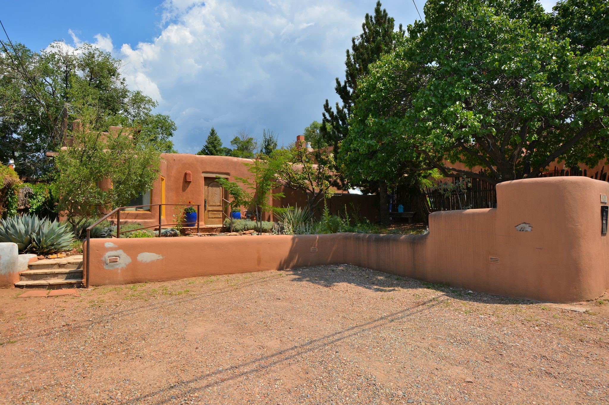 If your looking for an Ideal Santa Fe Home with historic Charm Stop and See! LOCATION LOCATION LOCATIONRecent price reduction and a new TPO roof overlay/ Brand New Skylights installed in November 2025..what's not to love! This home is located in the coveted Historic Eastside. This home is Quintessential Santa Fe Charm! Partial Adobe construction, Wood Frame, wood ceilings, vigas, 2 wood burning Kiva Fireplaces, Brick floors with radiant heat. CASITA round back with Separate entrance. Home is a 10 minute walk to Canyon Road featuring Art galleries and many of SF best Dining establishments. The home offers mature gardens front/back and a secret terrace. The main house features a kitchen with amazing sunlit tall ceilings and windows. You will appreciate the original wood cabinetry and wood countertops. Breakfast area or office space off of the kitchen. laundry area is conveniently adjoined with the 1/2 bath. Behind the main house you'll find a private courtyard and an attached Casita complete with a loft space that currently serves as a sleeping area. There is a kitchenette, and a full bathroom(Shower needs to be remodeled but is functional). Occupy the casita as an extension of your home or use as an office or artist studio. The home has undergone a pre-inspection and is priced accordingly.