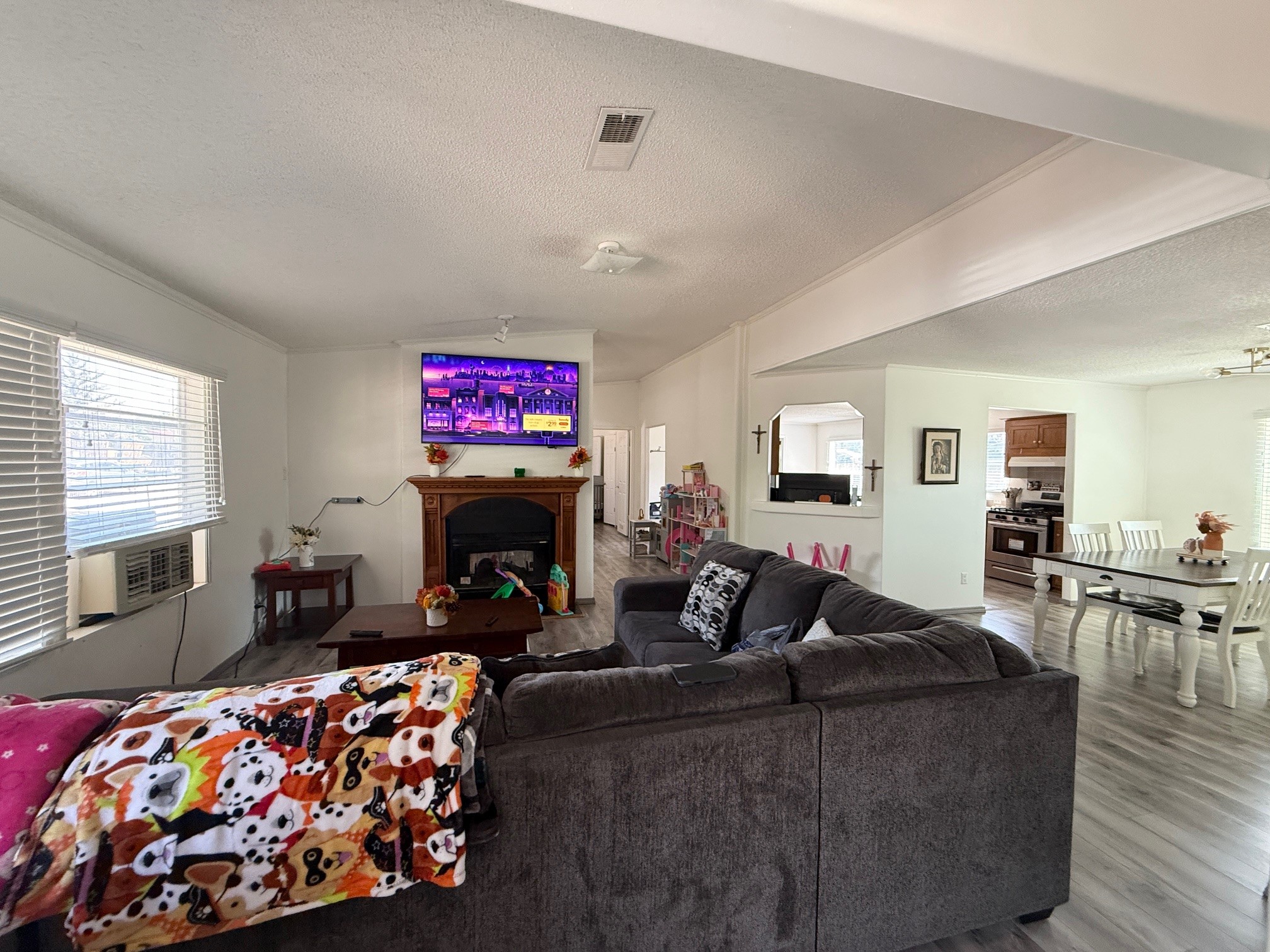 Move in ready, ground set manufactured home on a permanent foundation located on a secluded street just off of the beautiful tree lined McCurdy Rd. Surrounded by residential properties with friendly neighbors. The home features a split floor plan with tape/textured drywall throughout, a new kitchen sink, fresh paint, newer high end wood laminate flooring, new stainless steel appliances, new tile in the guest bath with new tile wainscot, a new water heater, a new evap cooler, 2" Faux wood window coverings throughout, two skylights,a covered porch and a storage shed. Plenty of room for your vehicle, toys, RV or boat and have space to create your own outdoor oasis or garden. All utilities are public. No septic systems or wells to deal with here. Close to McCurdy Charter School, Espanola High School, 20 miles to LANL (Los Alamos) and 25 miles to Santa Fe.
