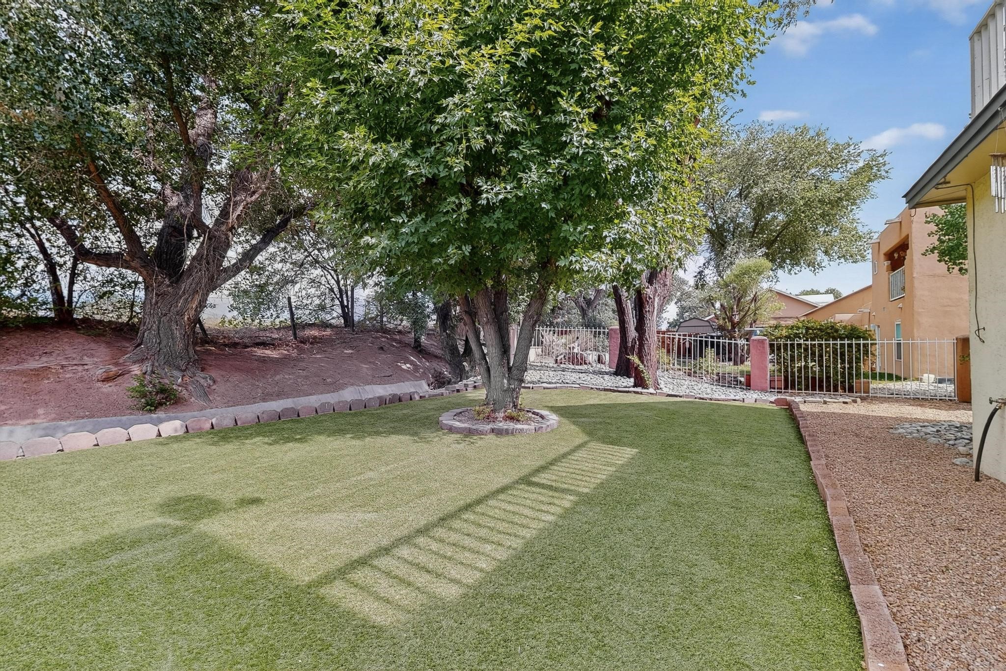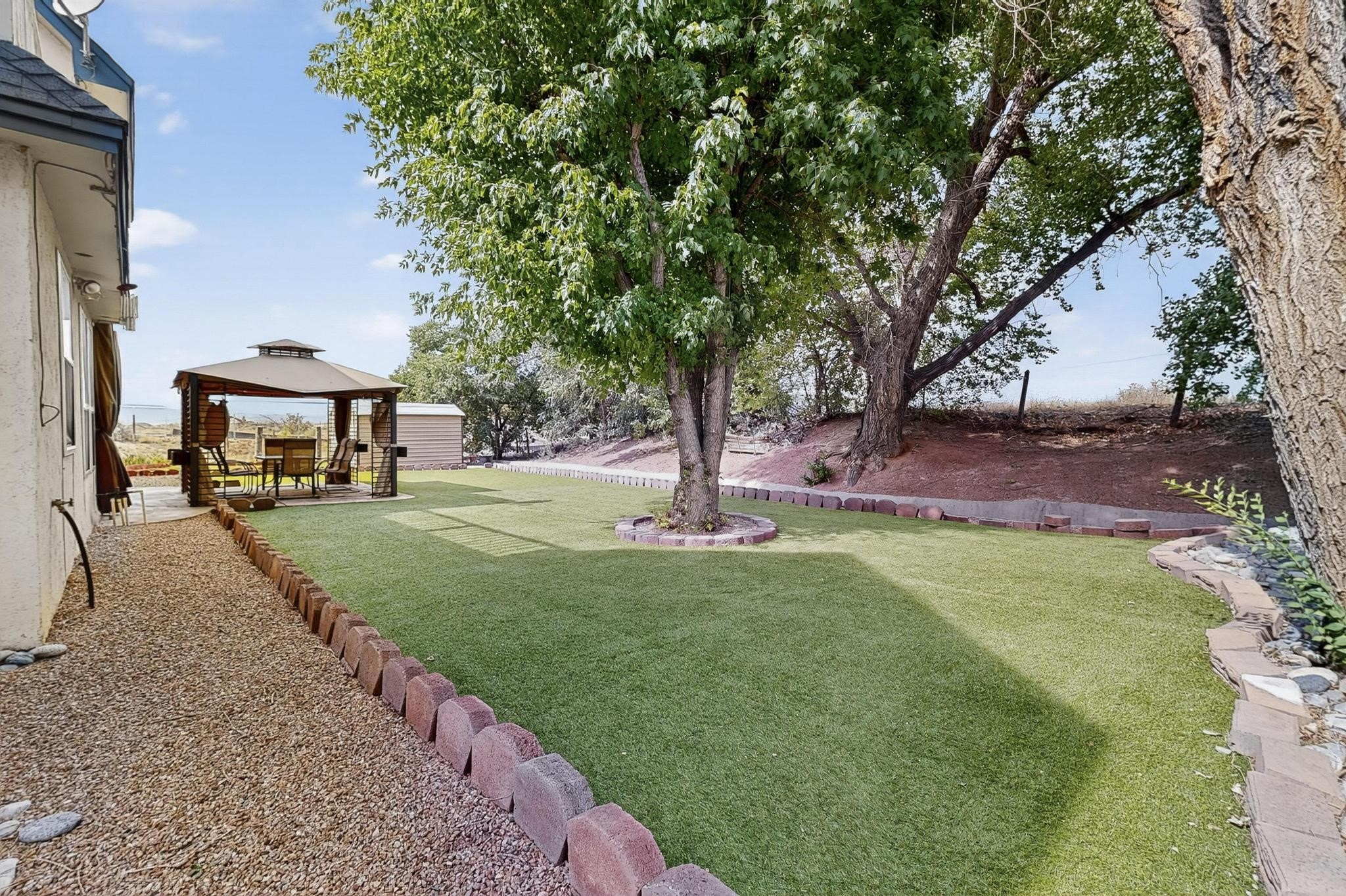 Welcome to your dream home! This stunning two-story residence combines comfort and style with extremely high ceilings and plenty of natural light from tall, narrow windows. This home offers a delightful breakfast nook and a spacious kitchen. Along with two cozy living areas, one even features a sweet fireplace.Upstairs, you'll find unique red carpeting that adds character, along with a versatile bonus room ideal as a fifth bedroom, home office, or creative space. The master suite offers a luxurious jacuzzi bathtub for ultimate relaxation, and a private balcony perfect for enjoying fresh air and views. Outside, enjoy a low-maintenance backyard with artificial grass, mature trees (including plum and apricot), and a peaceful water stream with water rights. Two storage sheds provide extra space for your needs. The front yard features attractive gravel and paved landscaping for great curb appeal. Schedule a showing today!