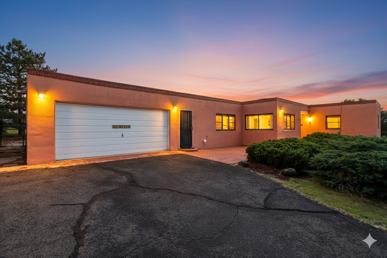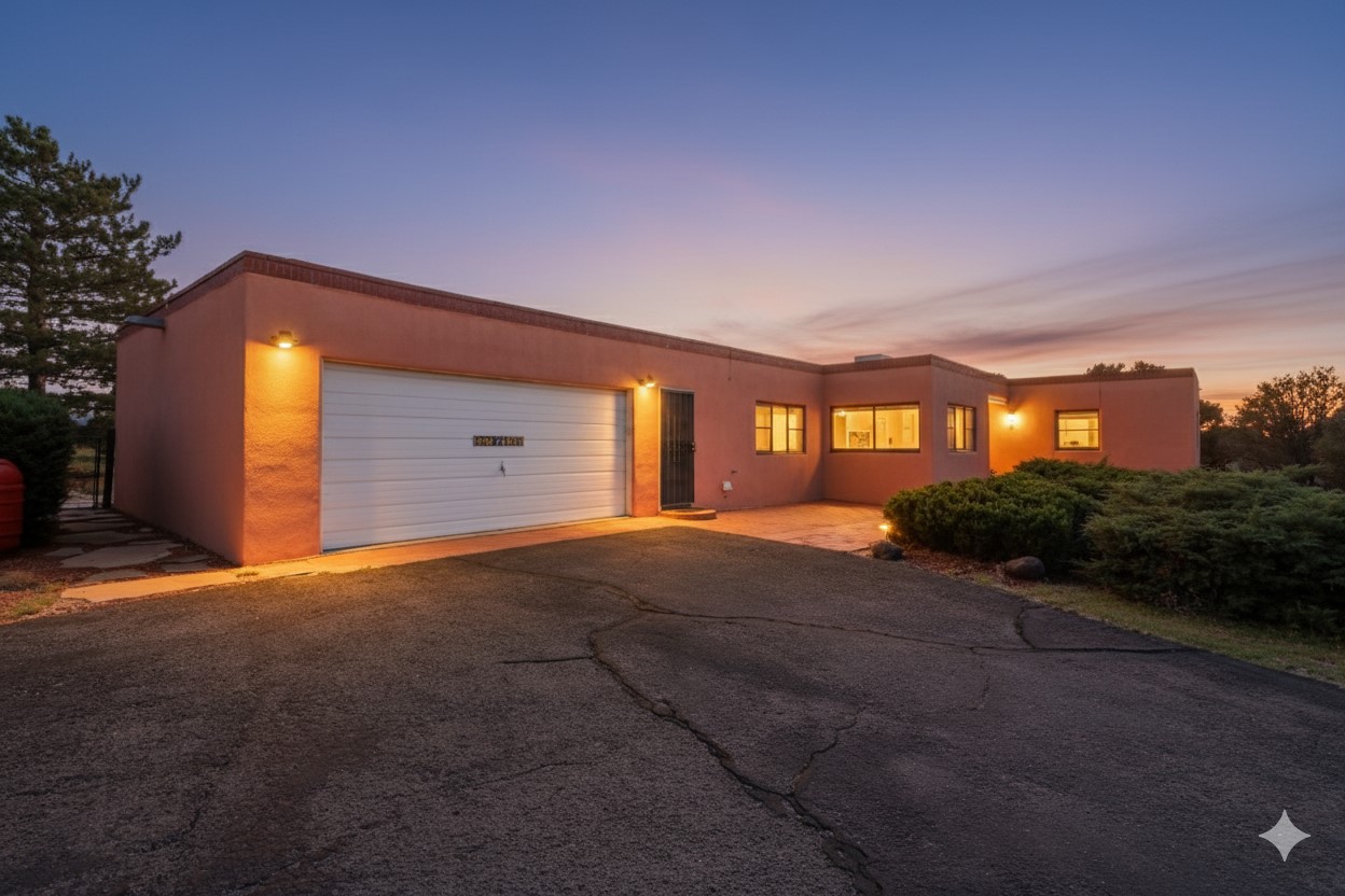 Spacious Territorial-Style Home on One Acre in Chamiso Heights. This beautifully maintained 3-bedroom, 2-bath Territorial-style residence offers classic Santa Fe charm on a serene one-acre lot accented by pion and juniper trees. Located within city limits, the home provides both privacy and convenience, just minutes from CHRISTUS St. Vincent Regional Medical Center and the historic Santa Fe Plaza. Interior highlights include newer carpet and a comfortable layout designed for easy living. The property also features a two-car garage and a wonderful backyard patio and garden, perfect for outdoor relaxation or entertaining. Nestled in the desirable Chamiso Heights neighborhood, this home combines Southwestern character, modern comfort and an excellent location.