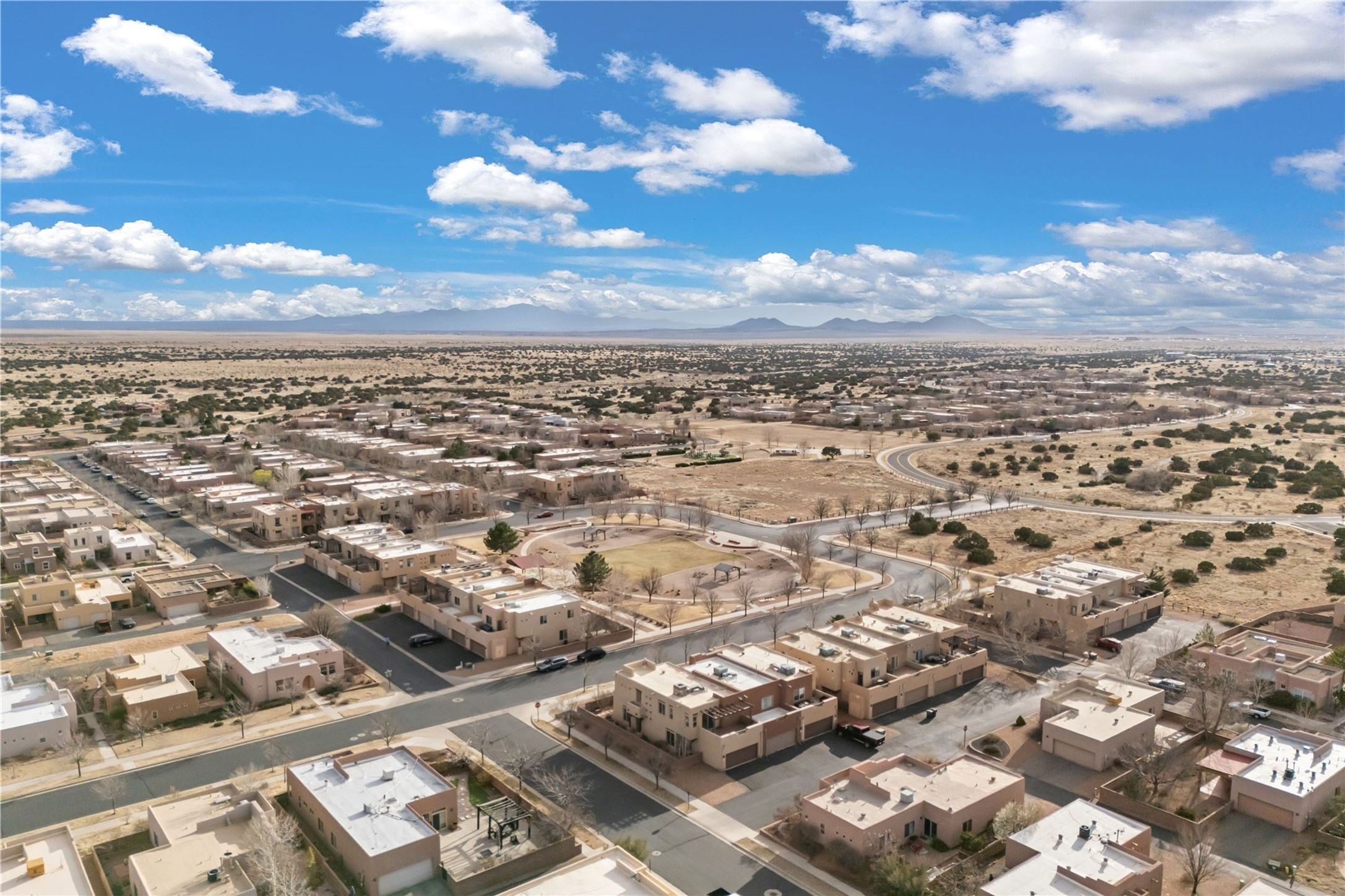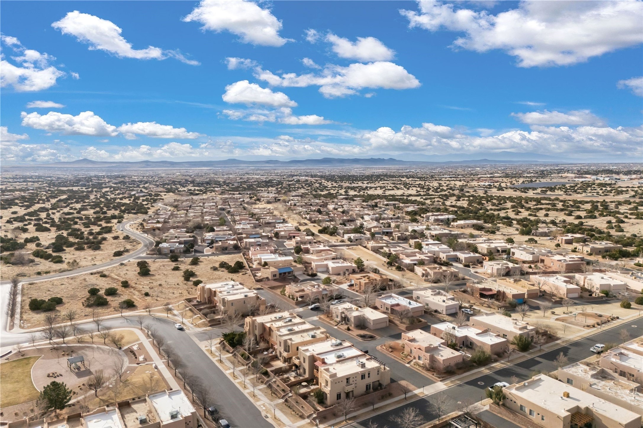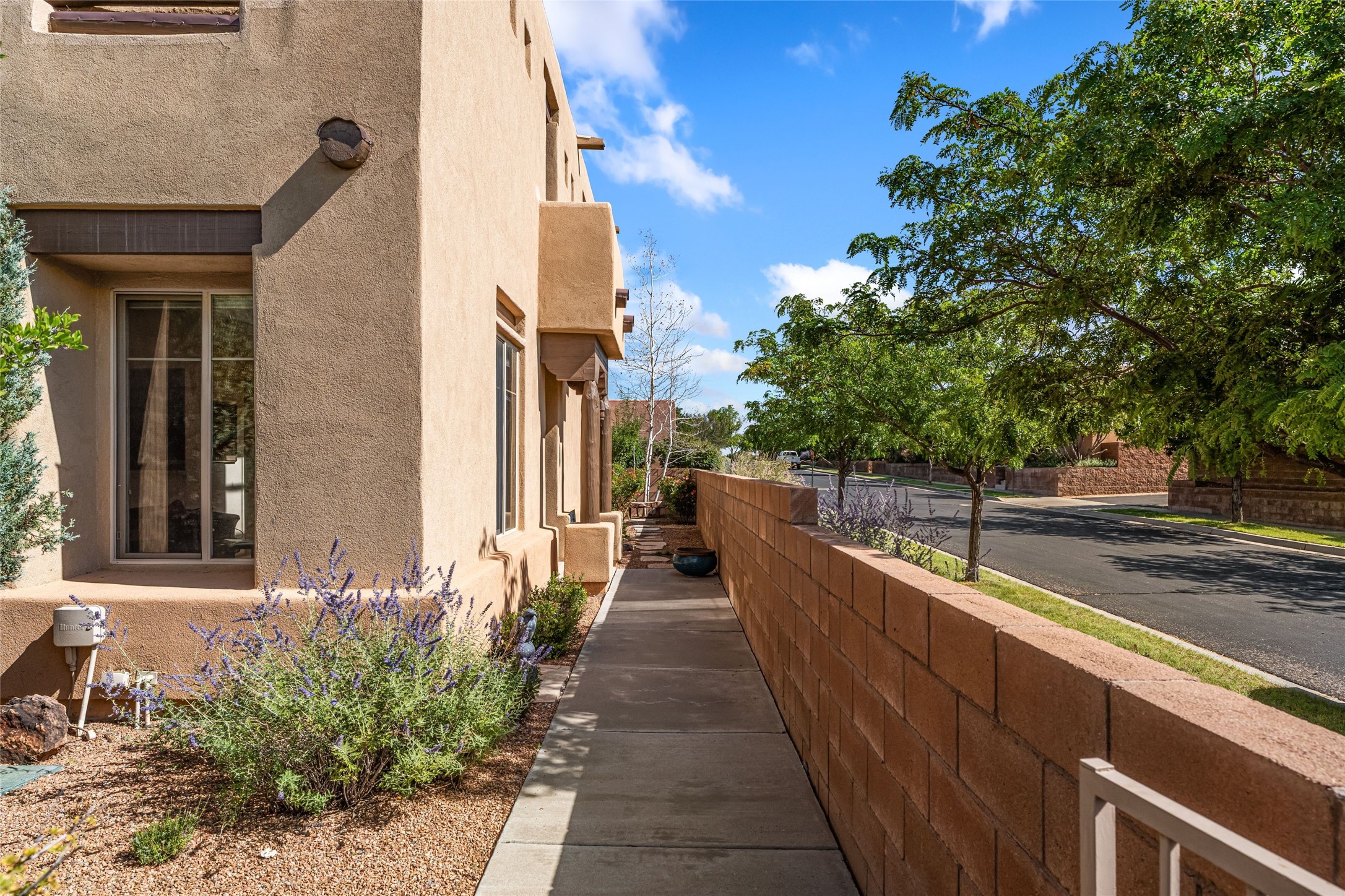 This updated end-unit townhome in Rancho Viejo offers low-maintenance living, modern upgrades, and convenient access to parks, trails, and Santa Fe amenities. With 2 bedrooms, 3 bathrooms, and 1,642 square feet of living space, the home features an open, light-filled layout ideal for comfortable living and entertaining. The living room with gas fireplace flows into a dining area and kitchen with new stainless steel appliances installed in July 2025. Upstairs, the spacious primary suite includes a balcony with northeast orientation capturing both sunrise and sunset light, along with a walk-in closet and ensuite bath. A second bedroom and full bath complete the upper level. Major systems and components have been updated, including a new HVAC system and hot water heater (2023), new balcony decking and roof (2024), and all exterior maintenance covered by the HOA. High-speed internet is available, and the attached two-car garage provides direct interior access. Enjoy outdoor space with a private deck and courtyard, plus proximity to trails, a park directly across the street, and Santa Fe Community College just 1.6 miles (about 5 minutes) away. Shopping and restaurants are 4.7 miles (about 12 minutes) away, and downtown Santa Fe is within easy reach. HOA dues also cover exterior maintenance, adding to the property's lock-and-leave appeal. Combining a prime location with significant recent improvements, this townhome offers a turnkey lifestyle in a peaceful community setting.