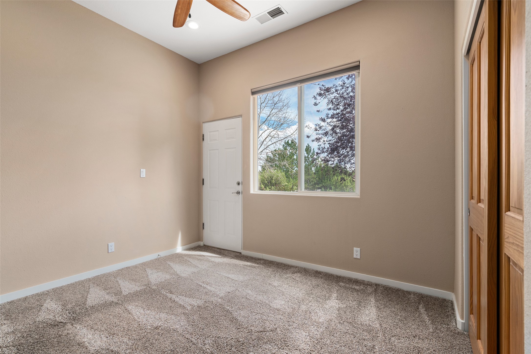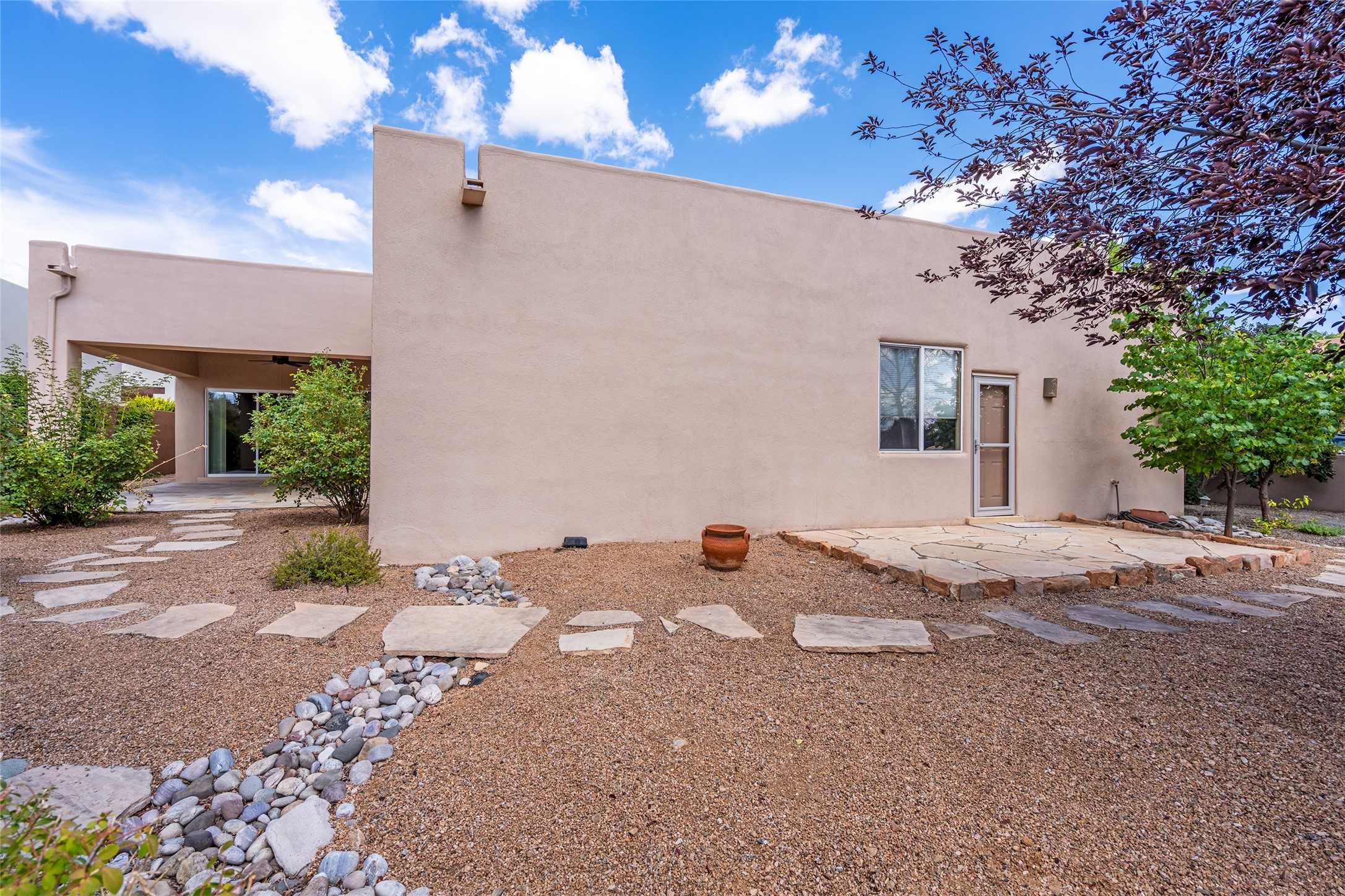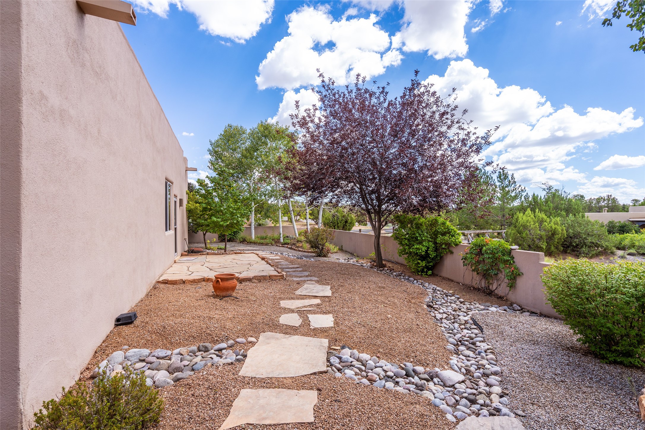Look here: a stylish and updated home on a desirable corner lot! This immaculate single-level home has been extensively updated and shows beautifully. With over $170,000 in thoughtful renovations completed just a few years ago, the home feels modern, fresh, and move-in ready. The kitchen is a true centerpiece, featuring granite countertops, a custom tile backsplash, double ovens, a five-burner gas cooktop, under-cabinet lighting, a remodeled island, and a charming window seat. Wood-look tile flooring, bedroom carpet, and a paint refresh complement the home's warm modern-rustic style, while recessed LED lighting adds everyday brightness. The spacious primary suite is a serene retreat with a spa-like bath. You will love the separation from the other bedrooms. With four additional bedrooms--including a private ensuite with its own exterior access--the floor plan offers flexibility for guests, a studio, an in-home office, exercise room, media room and more! Outdoors, enjoy a covered portal with views of the Ortiz Mountains and thoughtfully designed landscaping that bursts with seasonal color from Virginia creepers, rose bushes, and ornamental fruit trees. All this in an unbeatable location: just 12 miles from the historic Santa Fe Plaza and only minutes to shopping and dining. The Rancho Viejo HOA enhances the neighborhood with multiple parks, vast open spaces, scenic paved trails, and well-kept surroundings protected by reasonable covenants. A home that blends style, comfort, and convenience -- and one you'll be proud to call your own.