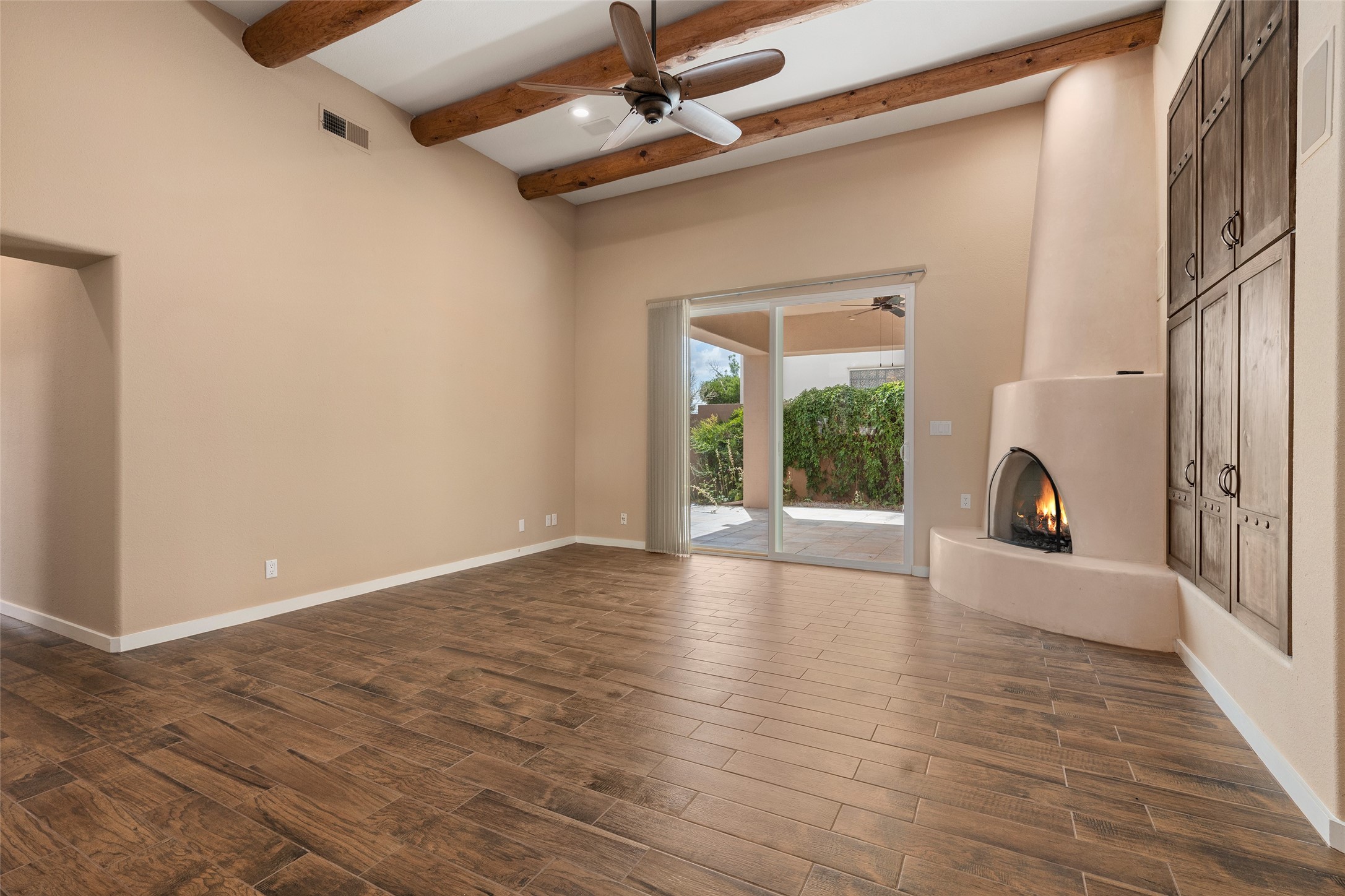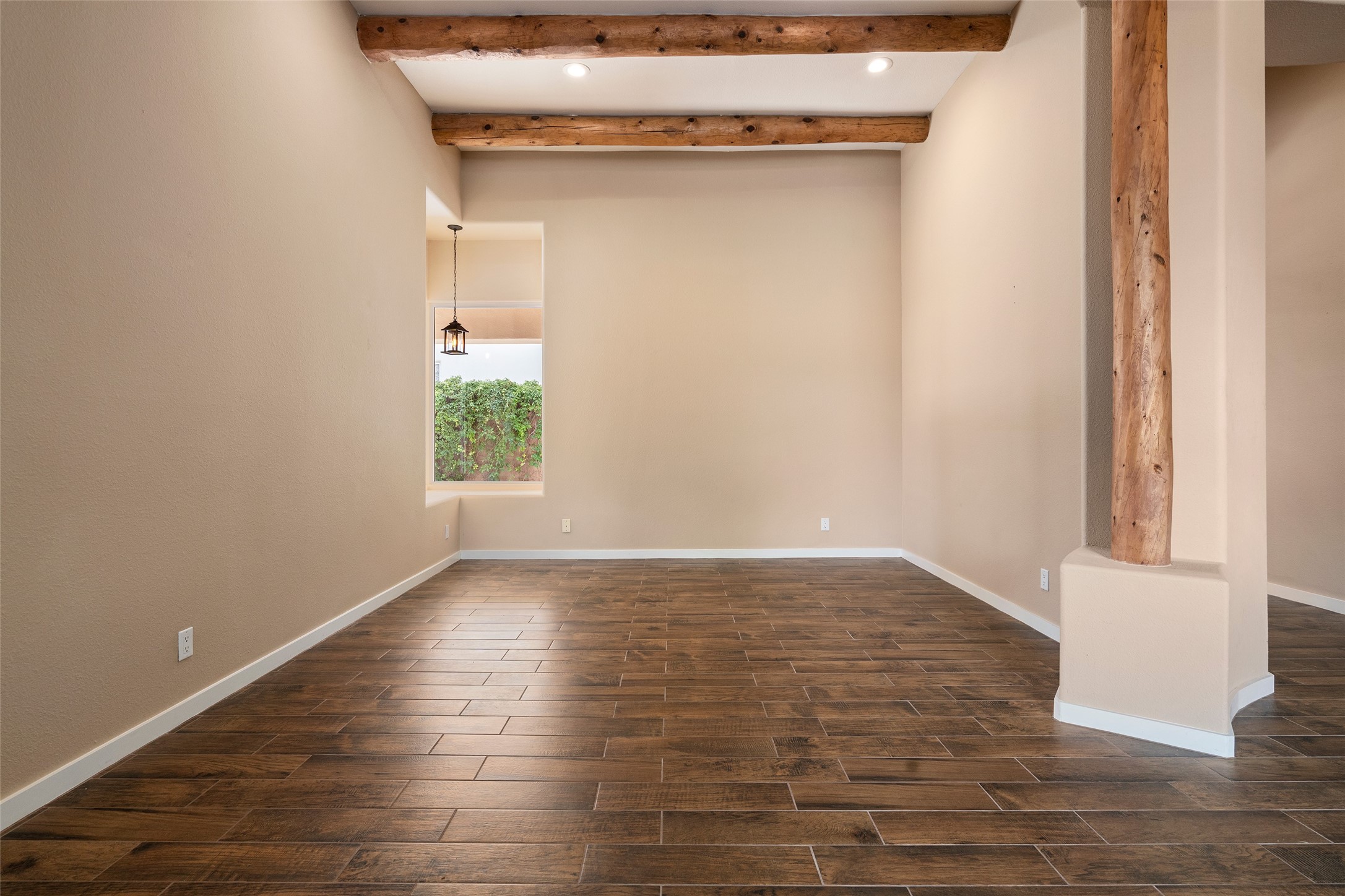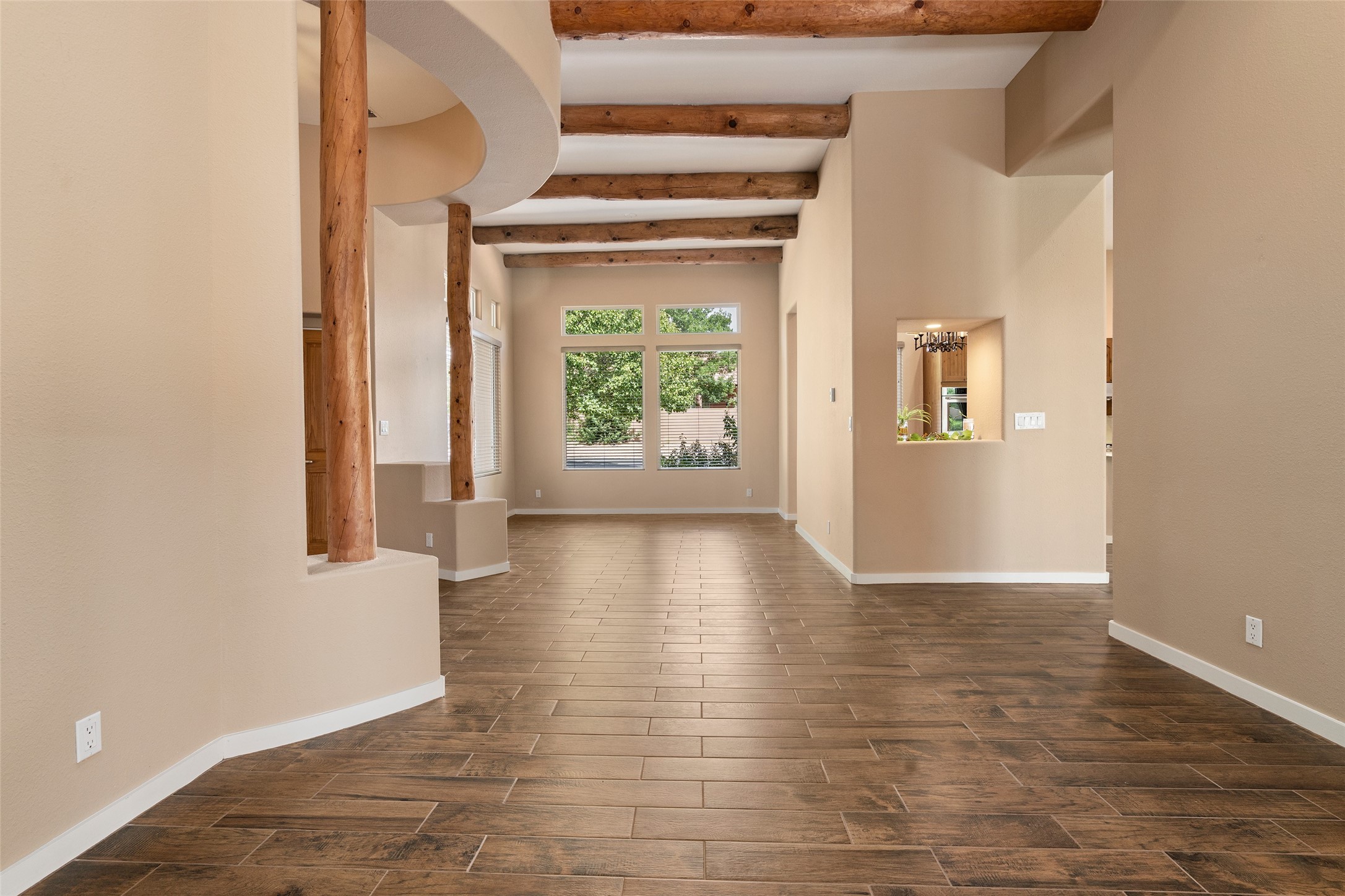 Look here: a stylish and updated home on a desirable corner lot! This immaculate single-level home has been extensively updated and shows beautifully. With over $170,000 in thoughtful renovations completed just a few years ago, the home feels modern, fresh, and move-in ready. The kitchen is a true centerpiece, featuring granite countertops, a custom tile backsplash, double ovens, a five-burner gas cooktop, under-cabinet lighting, a remodeled island, and a charming window seat. Wood-look tile flooring, bedroom carpet, and a paint refresh complement the home's warm modern-rustic style, while recessed LED lighting adds everyday brightness. The spacious primary suite is a serene retreat with a spa-like bath. You will love the separation from the other bedrooms. With four additional bedrooms--including a private ensuite with its own exterior access--the floor plan offers flexibility for guests, a studio, an in-home office, exercise room, media room and more! Outdoors, enjoy a covered portal with views of the Ortiz Mountains and thoughtfully designed landscaping that bursts with seasonal color from Virginia creepers, rose bushes, and ornamental fruit trees. All this in an unbeatable location: just 12 miles from the historic Santa Fe Plaza and only minutes to shopping and dining. The Rancho Viejo HOA enhances the neighborhood with multiple parks, vast open spaces, scenic paved trails, and well-kept surroundings protected by reasonable covenants. A home that blends style, comfort, and convenience -- and one you'll be proud to call your own.
