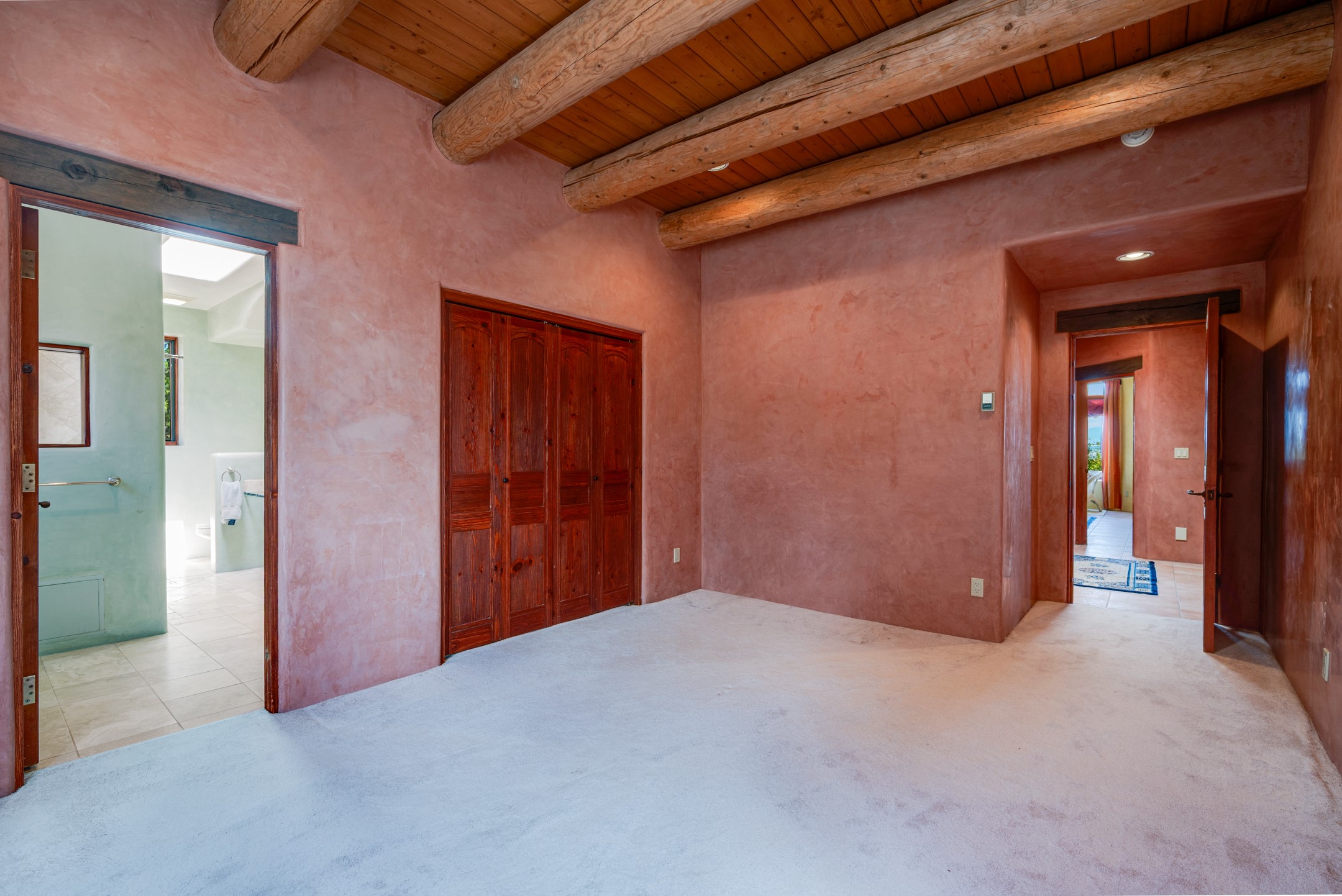 Oro Viejo Ranch is a timeless sanctuary on 106 acres. A harmonious blend of natural splendor, meticulous craftsmanship, and modern convenience. There are breathtaking panoramic views of the Sangre de Cristo, Ortiz Mountains, Cerrillos Hills, and the iconic Lone Butte. The main residence showcases authentic Southwest style, adobe and rastra construction. It features intricate plasterwork, recycled wood vigas, and a heated indoor pool, the rooftop deck offers truly unobstructed views. The solid oak cabin adds rustic charm, originally owned by the Hoover family, and rebuilt on-site. Horse enthusiasts will appreciate the six-stall, barn, tack room, workshop, covered hay storage, electric, and hot water, and protected outdoor runs. An insulated chicken coop provides the perfect setup for fresh eggs, while a private well with a large storage tank ensures a reliable water source.A convenient RV hookup is also available on the property.