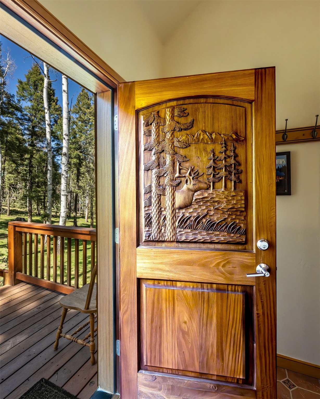This beautifully maintained property sits on over 2 acres of fire-wise thinned forest, offering both privacy and peace of mind. Thoughtfully upgraded with high-quality appliances, luxury furnishings, and quality finishes throughout, this home combines comfort with sophistication. A gourmet kitchen designed for culinary excellence is perfect for both everyday living and entertaining in style. The towering rock-wall fireplace exudes rustic elegance and warmth. Stunning floor-to-ceiling windows create a seamless connection between indoor living and the large, reinforced covered decks built to withstand the elements and support outdoor living year-round. With ample space for dining, lounging, and gathering, this is truly an extension of the home--where nature and luxury meet. Unwind after a long day in the private hot tub, perfectly positioned to take in the serene mountain landscape. Key features include a home theatre room, an elegant wine cellar, an electric firewood hoist plus two spacious storage sheds for added convenience. Additionally there is a 30 AMP RV hookup for visiting guests and a redone gravel driveway for improved access and curb appeal. Access to nearby hiking trails, stocked fishing lake, PGA rated golf course, ski resort and country club all just minutes away. A true mountain oasis, blending modern upgrades with natural beauty. Move-in ready with furniture and meticulously cared for--this is the mountain lifestyle at its finest.