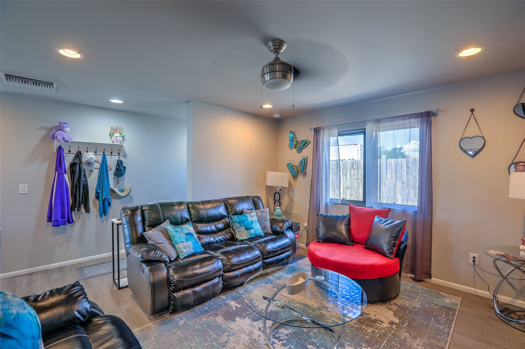 Priced to sell! Don't miss our on this opportunity!!! Absolute Stunner in Santa Fe! Perfect for a Large Family or Investor. Walk into the 2,764 SF 3 Bedroom, 3.5 Bath Primary Home and be greeted with Luxury! A Huge Sunken Family Room creates a Cozy and Intimate Atmosphere for Family Gatherings centered around a Fireplace accented with a Stonewall covering the entire South Wall. Magnificent Vigas and Diamond Finish Walls provide the Perfect Touch! The Kitchen is a True Chefs Delight! The Main Home includes an En Suite, Office, Radiant Floor Heating, Central Vac System, Water Softener System, and a High Efficiency Tankless Water Heater. The Comfy Primary Suite is equipped with its own Fireplace offering the Ultimate Relaxation. Attached to the Main Home is a Fabulous 1,008 SF Efficiency Suite with its own Private Entrance and includes 1 Bedroom, 1 Bath, Office, Full Kitchen, Laundry Room and Living Area. Behind the Full Size Enclosed Basketball Court you will find an additional 1,560 SF Guest Home that was built in 2022. This Modern New Home offers 4 Bedrooms; a Primary Suite, an En Suite, and 2 Guest Rooms and 3 Baths. Features include all Tile Flooring, Tankless Water Heater, TPO Roof, Fenced Yard and its own Private Road. The Two Large (480 SF Each) Utility Sheds/Carports also convey. Don't Miss Out on this One of a Kind Opportunity!!