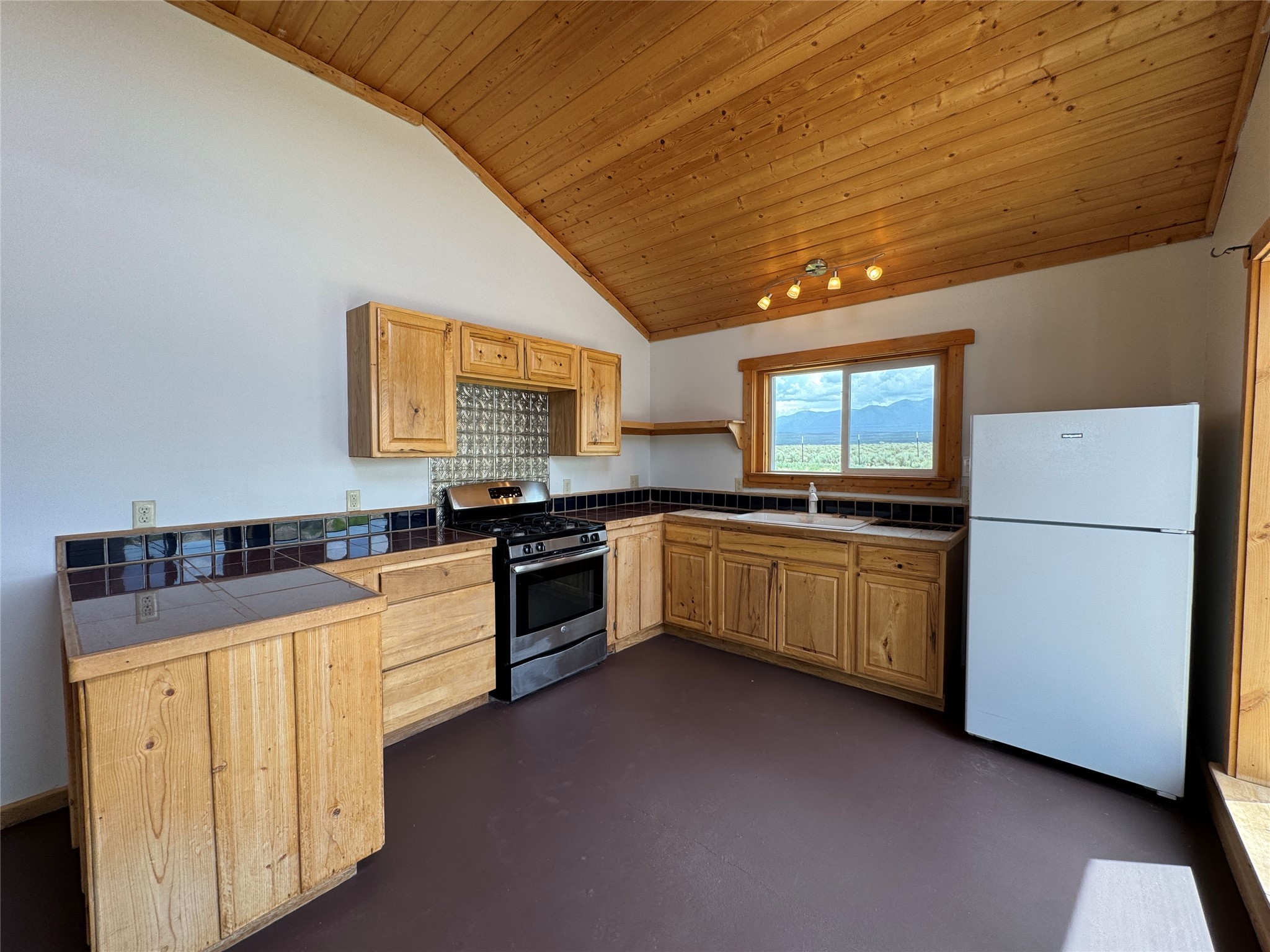 Here's a flexible property featuring two 700 square feet casitas on 2.53 unrestricted acres! Main house constructed in 2017 has entrymud room and open living/dining/kitchen areas with lots of windows framing wrap around views of sunset, Taos Mountain and Sangre deCristo Mountains. Painted concrete floors with in floor radiant heat. Pitched tongue and groove ceiling, ceiling fan and woodstovemaintain comfortable temperatures year round. Easily accessible, finished loft with cabinets provides ample storage. Cook's kitchen hasgranite tile countertops, is wired for under counter lighting, and has a propane gas range and fridge. Comfortable bedroom with T&G andbeams ceiling features a spacious ensuite bathroom with cast iron tub, personal shower and ample linen storage. Mechanical/utility roomincludes a washer which conveys with sale and storage shelving. On the north side is a sweet exposed adobe wall courtyard containinga paver stone patio and latilla ramada, perfect for dining al fresco and star gazing. Pitched Propanel roof delivers water catchment for a1700 gallon buried cistern in lieu of conventional well. Seller typically orders supplemental water 1-2 times a year for a cost ofapproximately $230 each delivery of 1700 gallons. Exterior siding is a combination of stucco and Cape Cod wood siding. Guest houseis 714 square feet of flexible space built in 2023 featuring kitchenette with fridge, full bath, wood stove, exposed adobes, and vaultedT&G ceiling with beams and columns. Comfortable full bathroom with linen storage, tub and shower. This structure is heated and cooledwith a heat pump mini split system. This space could serve as a studio/workshop, studio apartment rental, or additional property livingspace. Painted cement floors and wrap around windows with mountain views. Entertain outside with a latilla ramada over paver stonepatio. Propanel metal shed roof is plumbed for cistern catchment. Landscape berms cradle both structures, adding privacy and providinga canvass for gardeners. Taosnet broadband Internet in both houses (Kit Carson fiber optic in Tune Drive); cell service on site. Locatedon a rise with stellar 360 degree views and easy walk to the Rio Grande Gorge and John Dunn bridge, Mamby/Stagecoach and BlackRock springs. GPS: 36.52508202679919, -05.70209218650817. Approximately one acre around the structures is fully fence with a farmgate at the entrance. Wood board fencing provides additional privacy. Circle drive and ample guest parking. Property could besubdivided into three separate parcels. Electric transformer has been installed in lower part of property for future development. Allconstruction county permitted with C/Os in Associated Documents. Seller has left firewood, Colorado red flagstone, adobe bricks andnew generator in the original box for the buyer. Approximately twenty minutes from Taos Plaza and half an hour from Taos Ski Valley.Only half a mile off the paved road. This quiet, peaceful property could be developed into three residential properties, a family compound, investment rentals, or horse property. So many options for this creative, energy efficient property built with love!