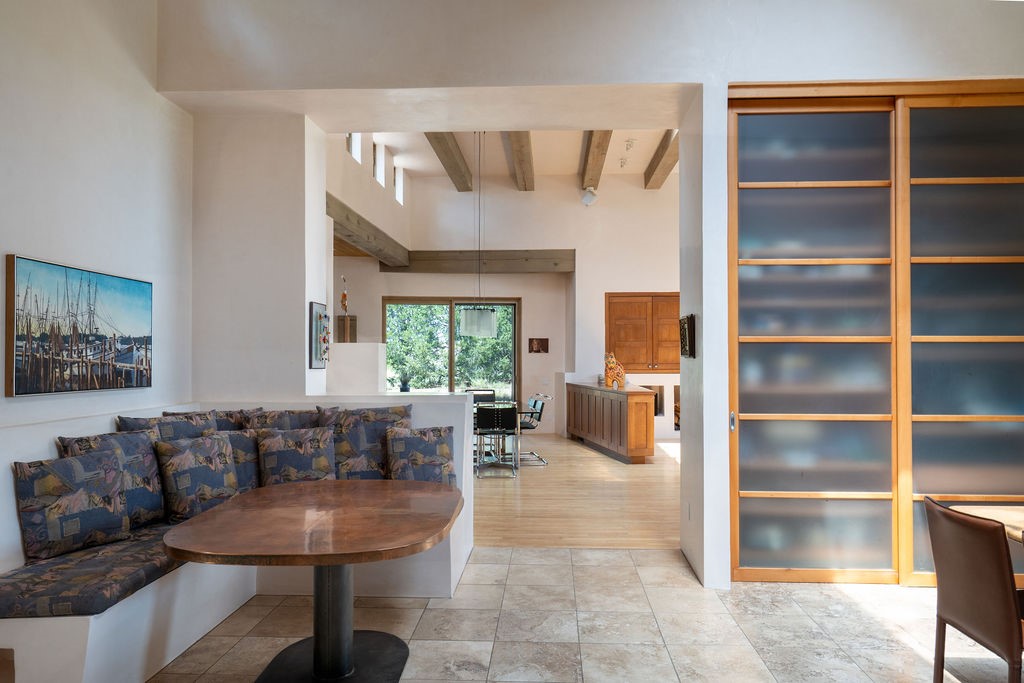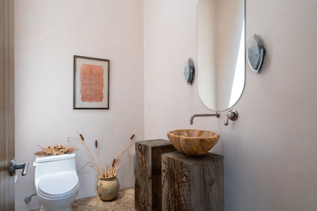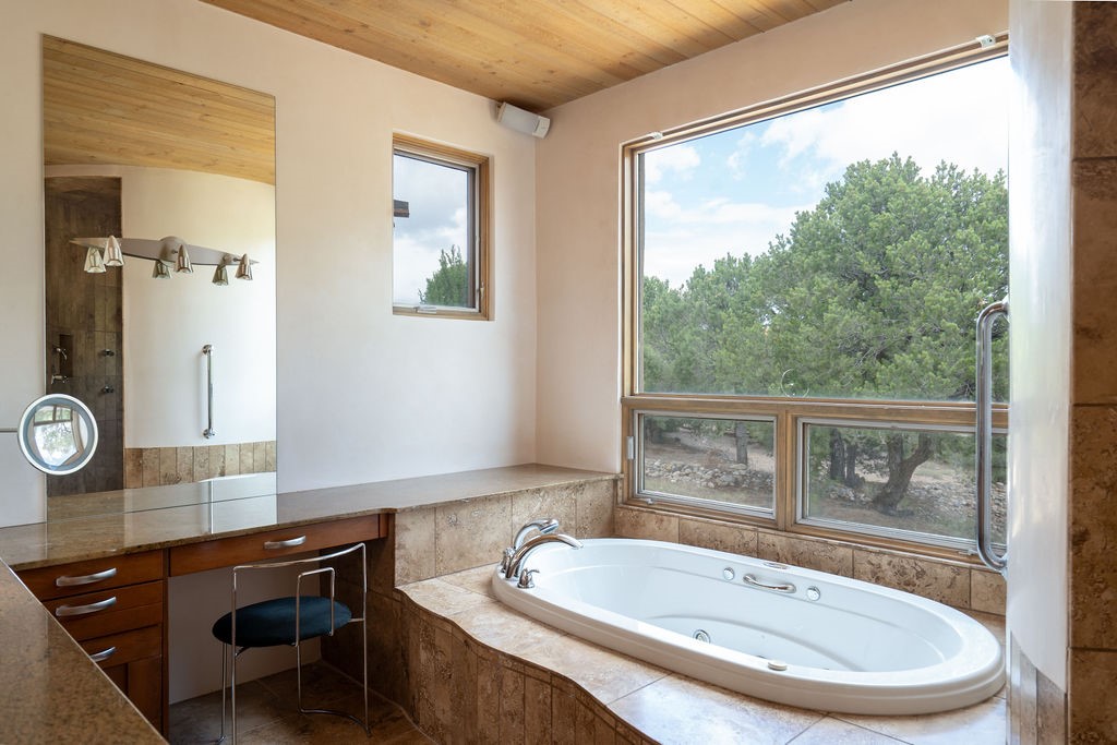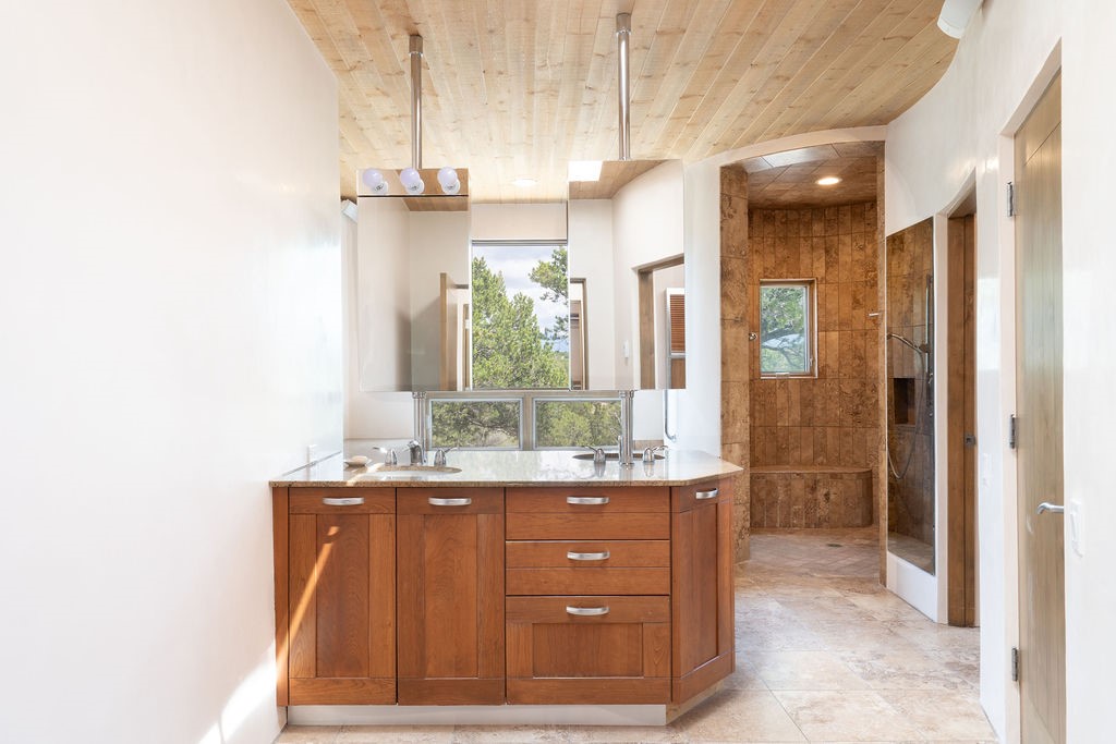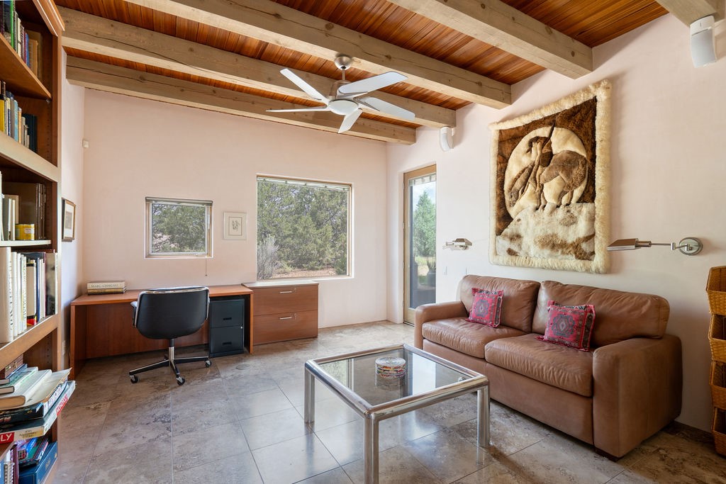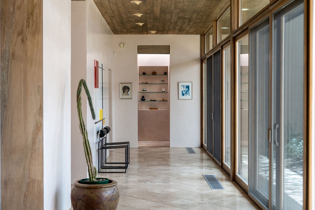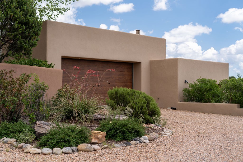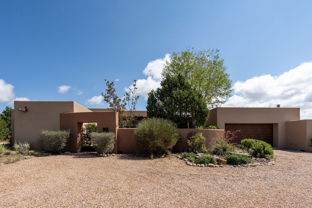 Step into this extraordinary Las Campanas residence where modern design and tranquility adjoin. Nestled on 2.3 acres, this 3-bedroom 3 bath home exemplifies sophistication and style. Upon entering, you are greeted by a dramatic gallery hall with luxurious stone water feature. The main room floods with natural light, highlighting an inviting open-concept floor plan. An expansive gourmet kitchen offers a well-designed central island and cozy sitting area, a footprint that is both spacious and comfortable. High-end appliances and design features throughout the home are accented by tall ceilings and clean lines. The primary bedroom features a fireplace, two expansive walk-in closets, and a luxury bathroom with dual vanities, soaking tub, and walk-in shower. The guest wing contains two spacious guest rooms, each with ensuite bath, providing exceptional comfort and privacy for visitors. Entertaining is effortless with a patio designed for outdoor dining and leisure, framed by courtyard walls with space to dine al fresco while taking in the tranquil surroundings. A spacious 3-car garage adds to the exceptional features of the home. Landscaping is in need of a refresh with an interior courtyard that offers tremendous potential. Seller's golf membership to the Club at Las Campanas is available to the purchaser of the property at an additional cost.