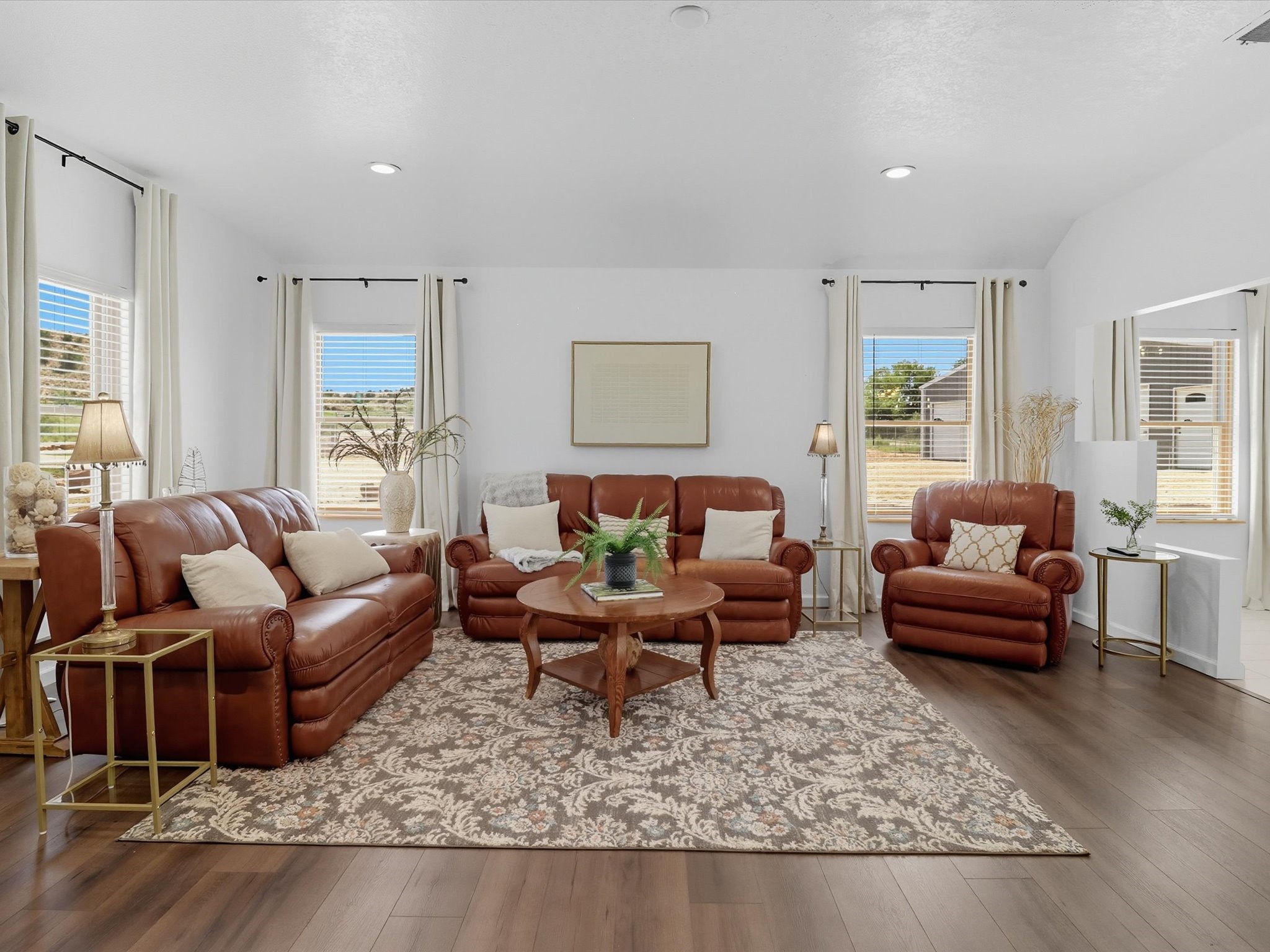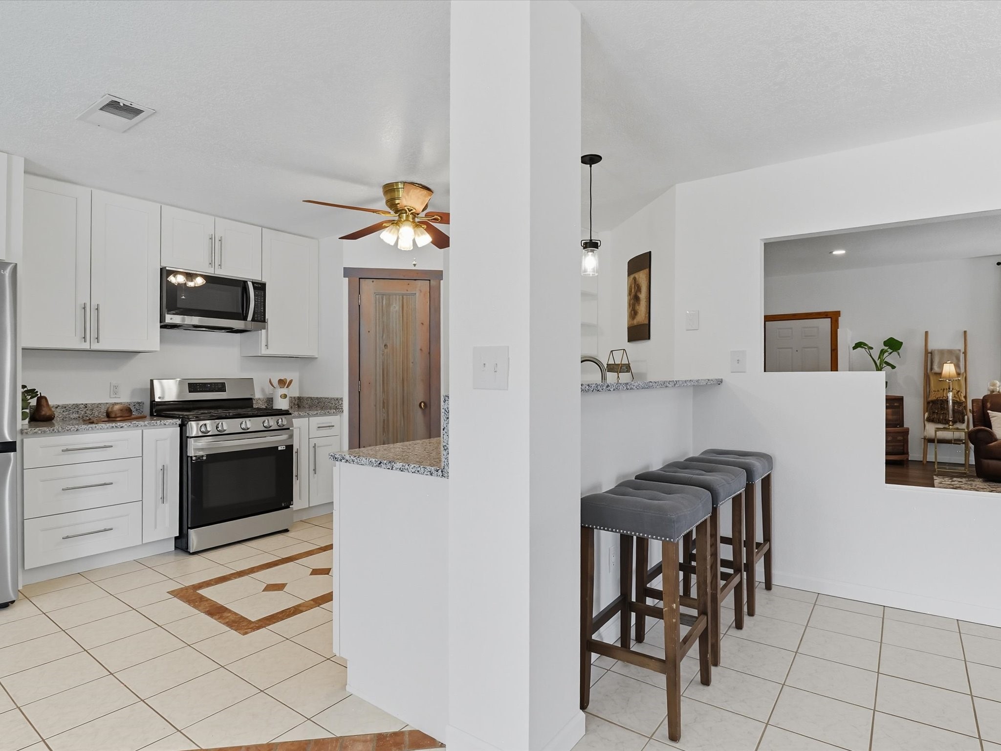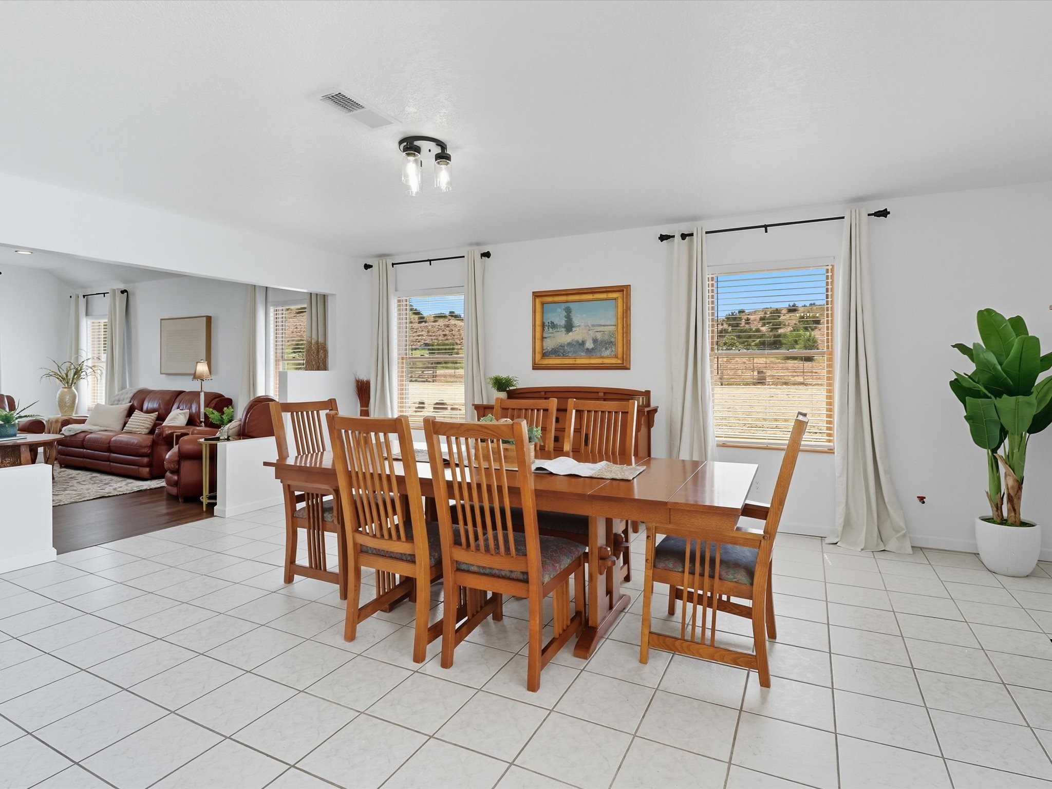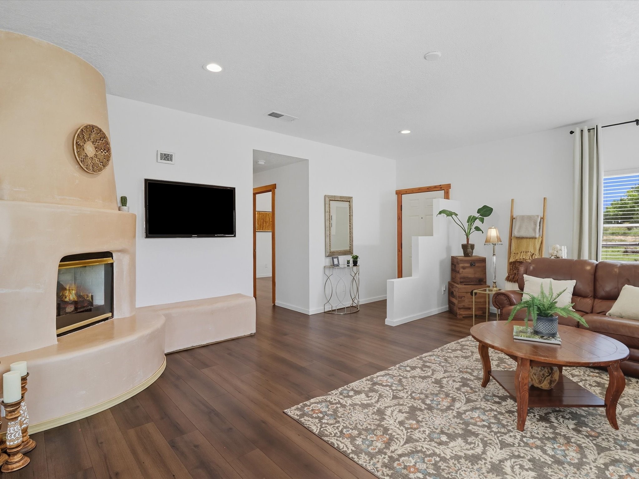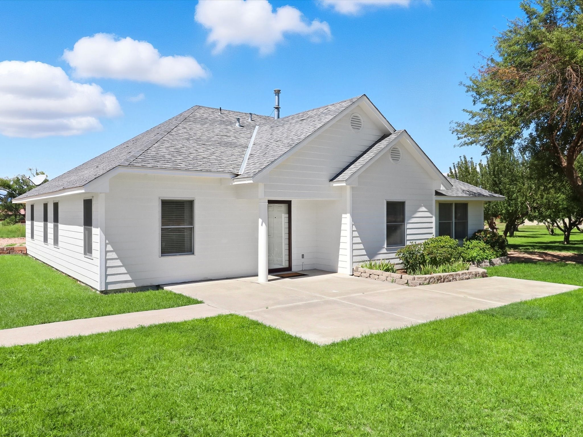 INCREDIBLE FIND - 0.75 acre property w/quality dream home and separate 1,206 sq ft workshop building w/3 garage doors (up to 6 car tandem). Found just 20 minutes from either Santa Fe plaza or Los Alamos National Labs in the coveted & fertile Pojoaque valley complete w/irrigation water rights. Special features of the home incl: new roof (installation 9/2025), newly painted interior & exterior, energy-saving Pella thermal windows, in-floor radiant heat for cozy winter days, 2 low-maintenance gas diamond plaster kiva fireplaces, tile or new high-quality engineered wood flooring throughout (no carpet!), updated baths with a Dream Style Shower, and a total kitchen remodel w/new cabinetry | stainless steel appliances | granite slab countertops. *Also available on 1.5 acres (including adjacent .75 acre lot) for September 2025 appraised value of $845,000.*