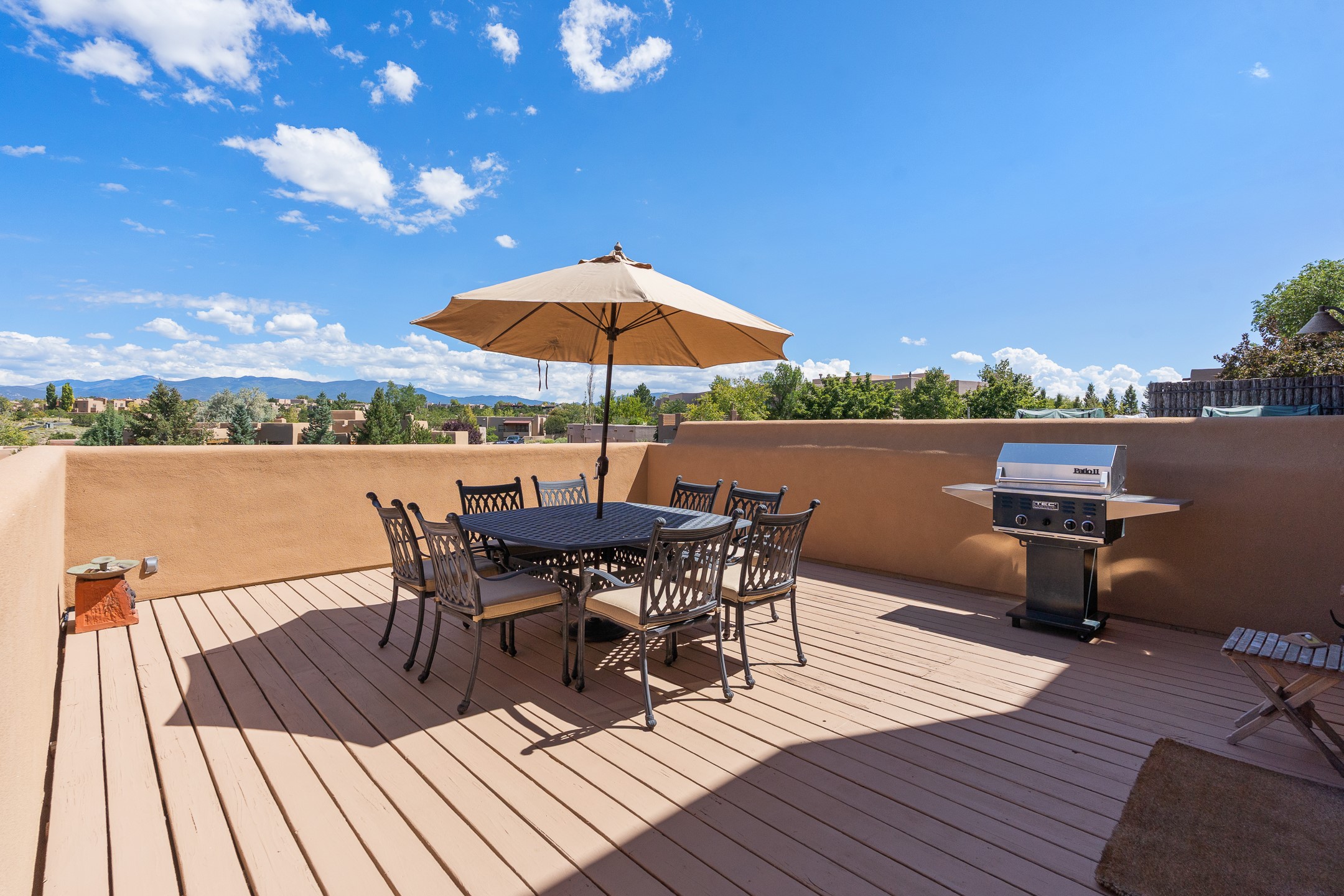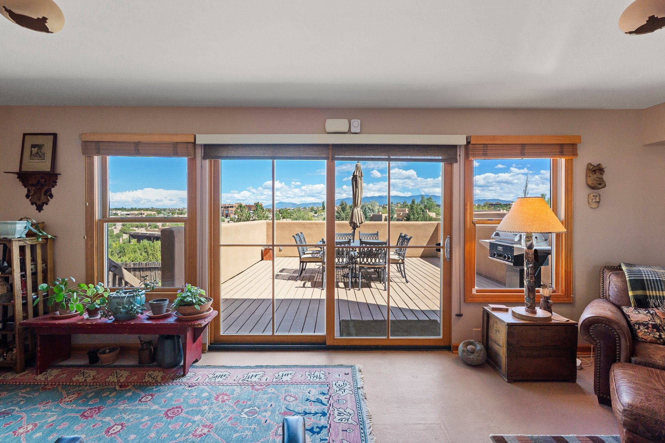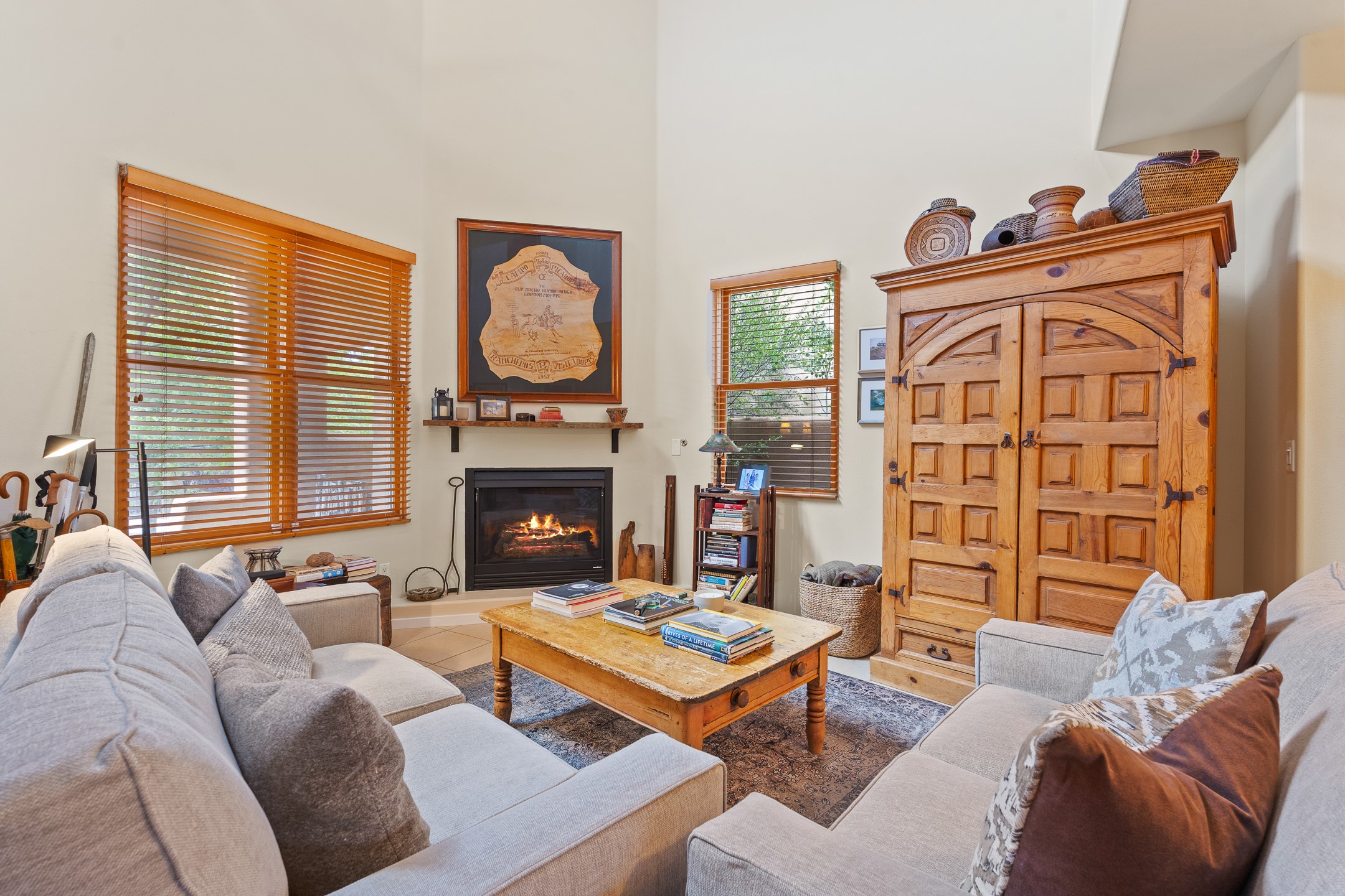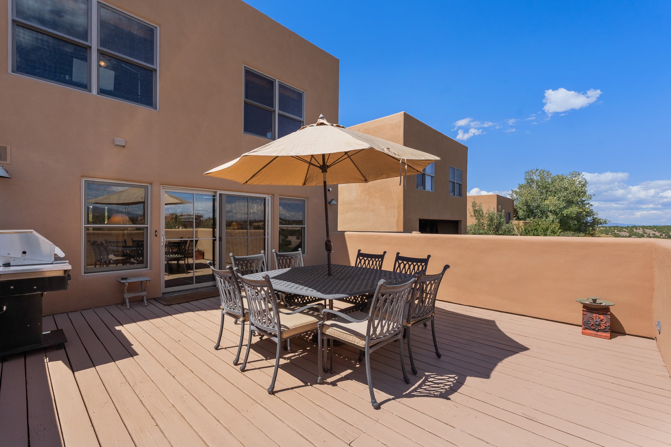 Charming Aldea Retreat with Jaw-Dropping Mountain Views!Welcome to this light-filled 4-bedroom, 3-bath townhome in the sought-after Aldea community. With over 2,000 sq. ft. of living space, this home shines with soaring ceilings, rustic vigas, a cozy gas fireplace, and gorgeous tile floors.The expanded sunroom/family room flows seamlessly onto a spacious deck, where you'll be captivated by breathtaking Sangre de Cristo views--perfect for morning coffee or sunset evenings. The kitchen offers stainless appliances and tile countertops, while a main-level bedroom and bath make an ideal guest suite or in-law quarters.Enjoy indoor/outdoor living, a welcoming covered front porch, and a detached two-car garage. Just 8 minutes from downtown, Aldea offers tranquil living with community charm, trails, and beautifully maintained surroundings.?? Highlights:Spacious 4 bed / 3 bath with open floor planExpanded sunroom leading to mountain-view deckHigh ceilings with vigas + gas fireplaceMain-level guest suiteQuiet, well-kept community minutes from townThis is Santa Fe living at its best--serene, stylish, and perfectly situated.Recent notable upgrades include:New Roof- 2020New Water heater late 2024 or ealy 2025New Refrigerator 9 2025Recent washer/dryer last couple years