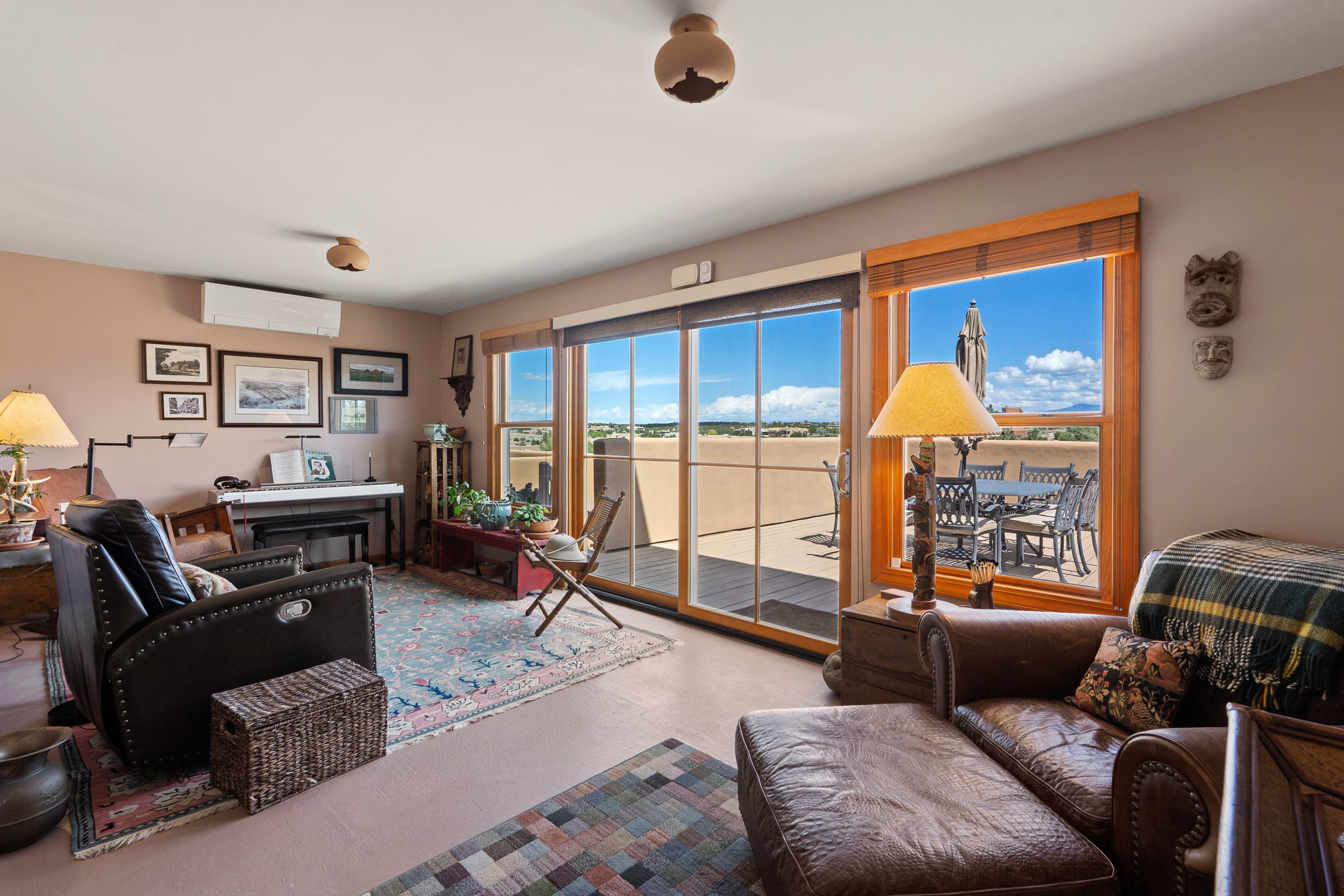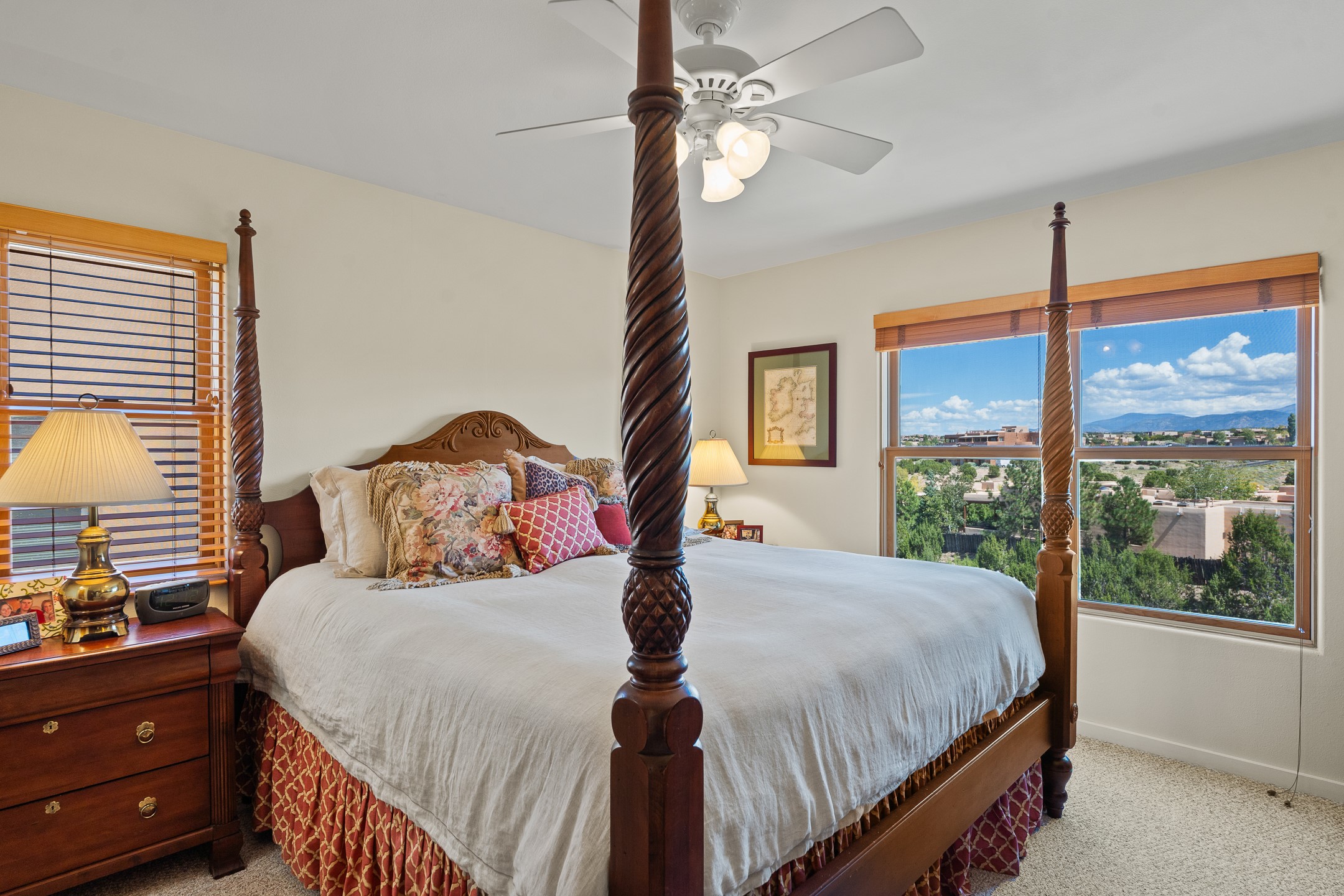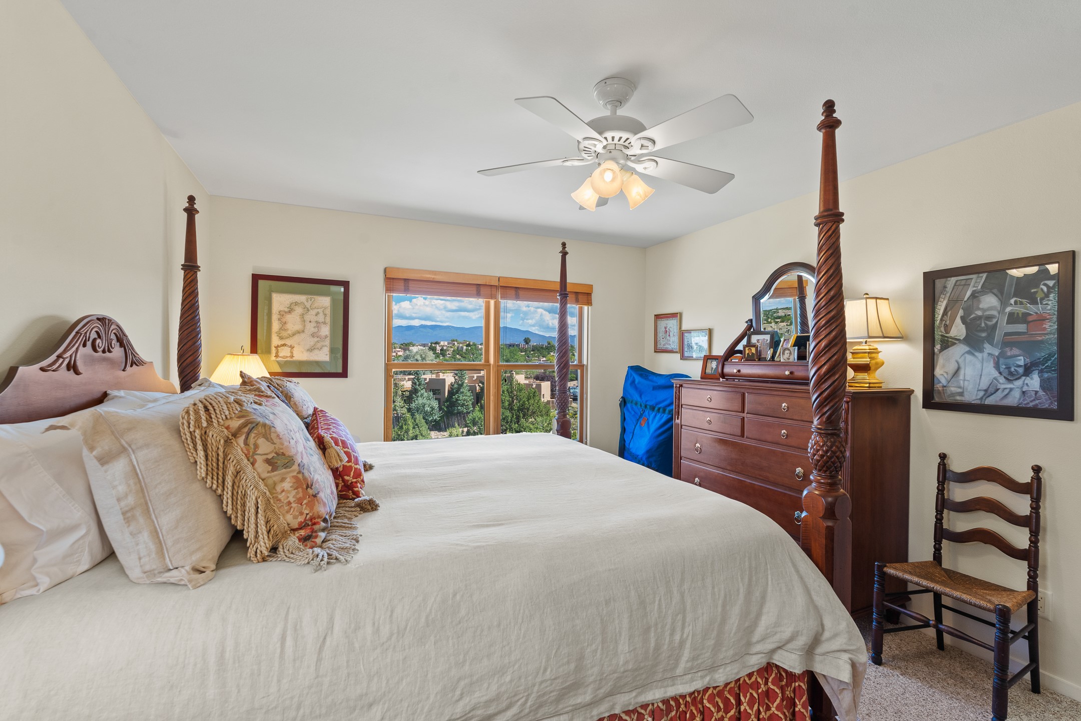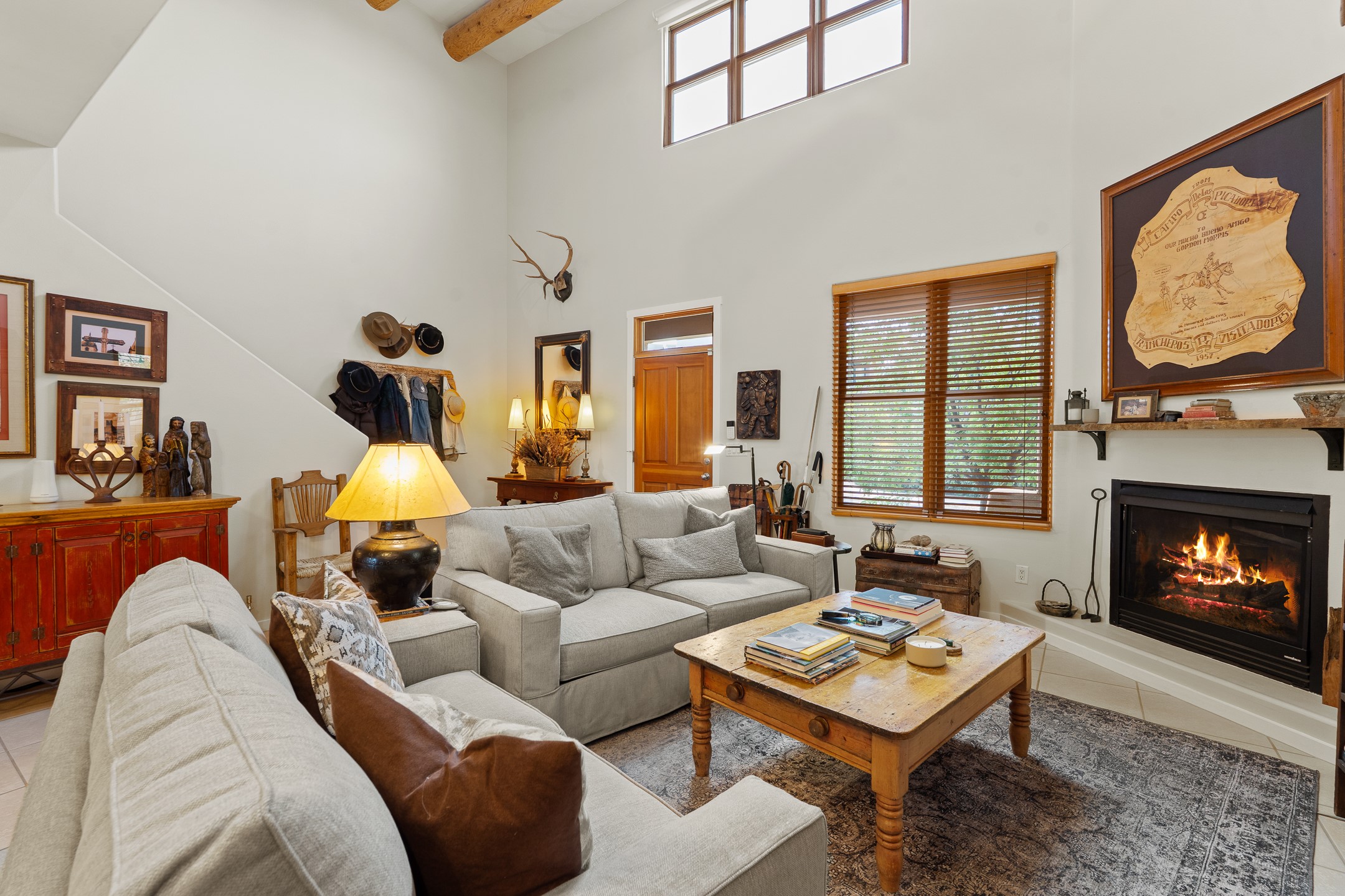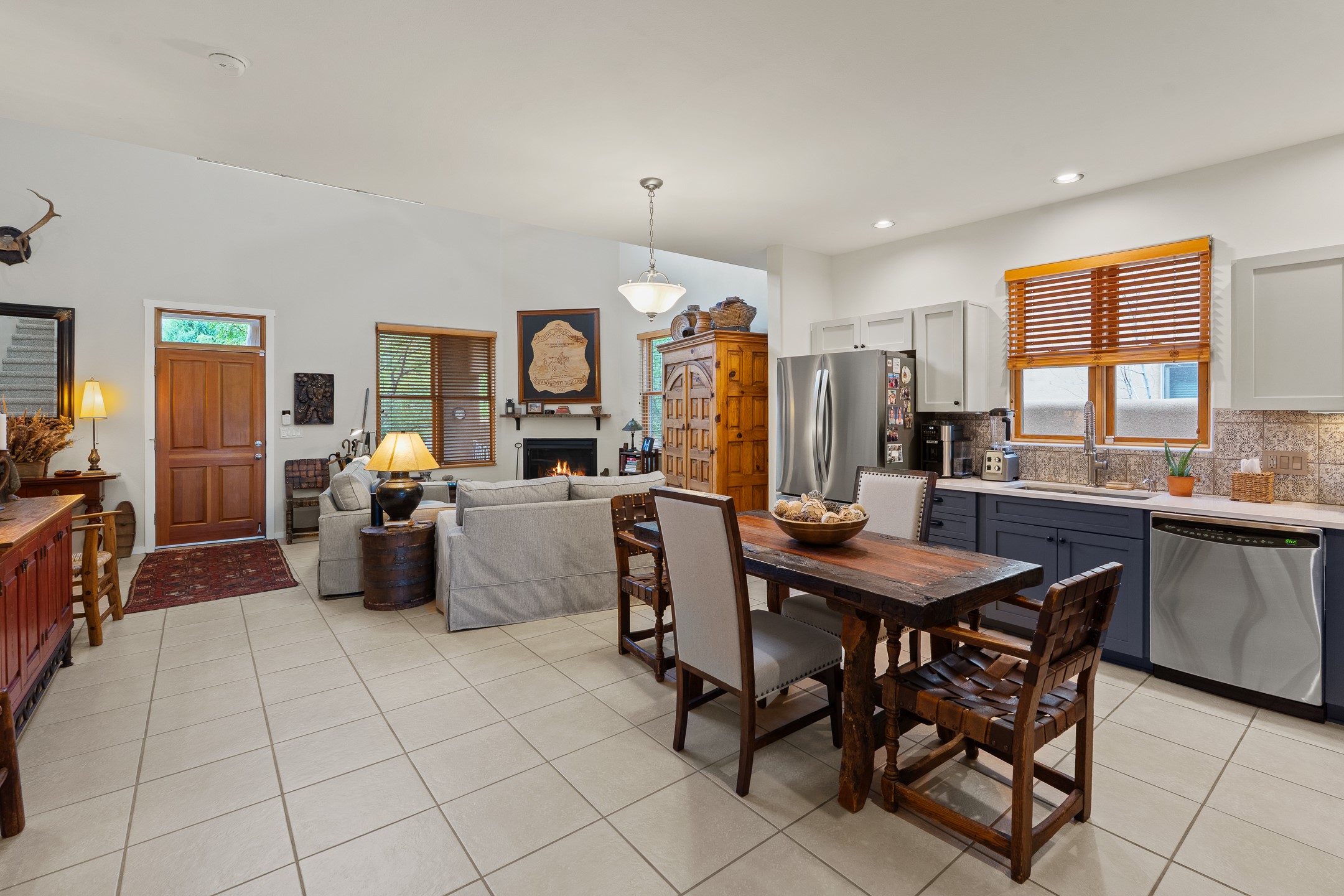 Charming Aldea Retreat with Jaw-Dropping Mountain Views!Welcome to this light-filled 4-bedroom, 3-bath townhome in the sought-after Aldea community. With over 2,000 sq. ft. of living space, this home shines with soaring ceilings, rustic vigas, a cozy gas fireplace, and gorgeous tile floors.The expanded sunroom/family room flows seamlessly onto a spacious deck, where you'll be captivated by breathtaking Sangre de Cristo views--perfect for morning coffee or sunset evenings. The kitchen offers stainless appliances and tile countertops, while a main-level bedroom and bath make an ideal guest suite or in-law quarters.Enjoy indoor/outdoor living, a welcoming covered front porch, and a detached two-car garage. Just 8 minutes from downtown, Aldea offers tranquil living with community charm, trails, and beautifully maintained surroundings.?? Highlights:Spacious 4 bed / 3 bath with open floor planExpanded sunroom leading to mountain-view deckHigh ceilings with vigas + gas fireplaceMain-level guest suiteQuiet, well-kept community minutes from townThis is Santa Fe living at its best--serene, stylish, and perfectly situated.Recent notable upgrades include:New Roof- 2020New Water heater late 2024 or ealy 2025New Refrigerator 9 2025Recent washer/dryer last couple years
