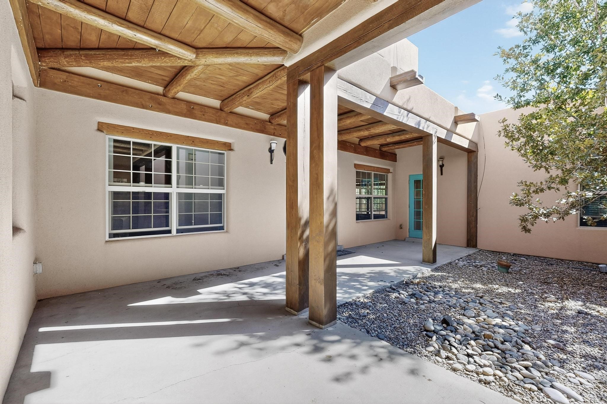 Centrally located in the vibrant Oshara Village, this move-in ready townhome features 2 spacious suites on the main level, along with 2 additional bedrooms and a full bath upstairs, offering comfort and flexibility. The open floor plan connects the kitchen, dining and living areas to a delightful central courtyard, perfect for entertaining or private relaxation. Additional perks include a detached two-car garage, fully-paid solar panels, transferable roof warranty, and a private fenced backyard with low-maintenance xeriscaping. This location offers easy access to medical facilities and diverse dining and shopping options. Whether you're seeking a cozy retreat or a dynamic live/work/play environment, this home has it all!
