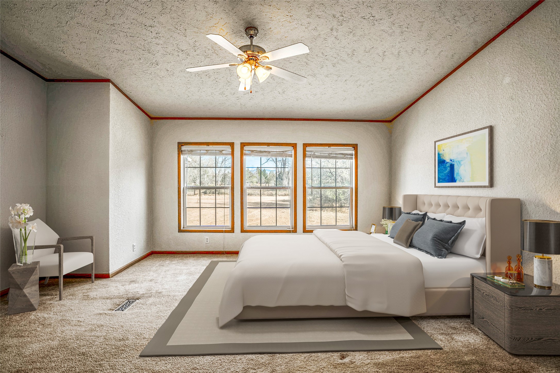Beautiful modular home among lush cottonwoods offers a serene escape with ample privacy. Plenty of space for your dream projects in both the back and front yards, and ample parking for vehicles and recreational. 10 x10 storage shed. Ideally situated near the river and Jacona Land Grant. Well and irrigation rights, plus a reverse osmosis water system, you have all the essentials for country living- open-concept living space filled with natural light. Enjoy the tranquility of country life without sacrificing convenience with easy access to Los Alamos, Santa Fe, and Espanola. Incredible opportunity to embrace a peaceful lifestyle in a natural setting!